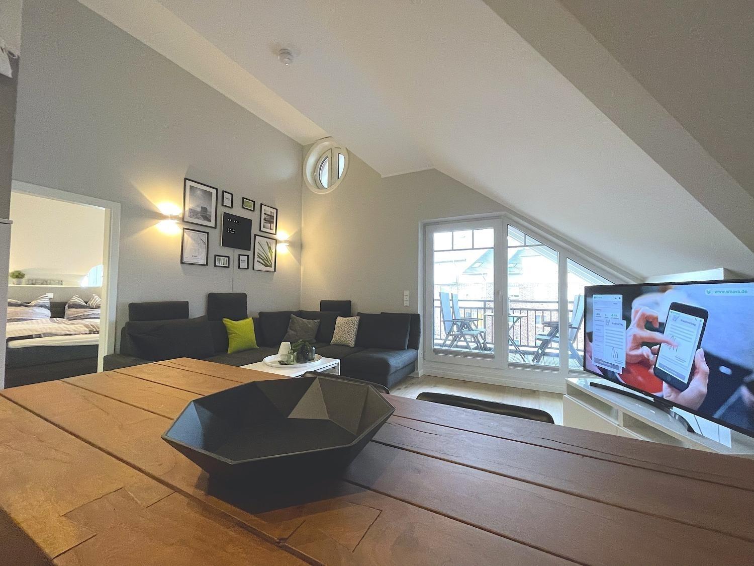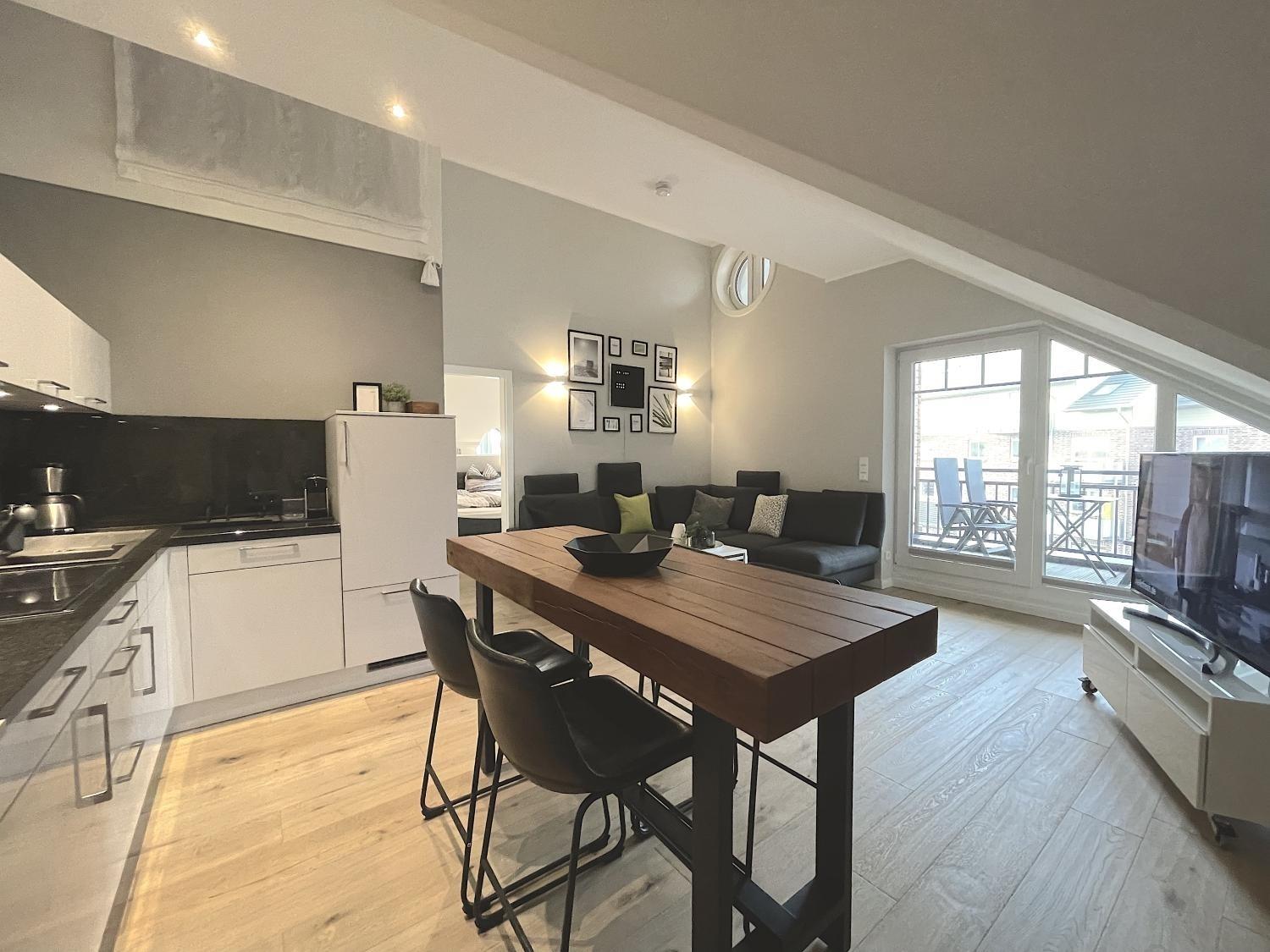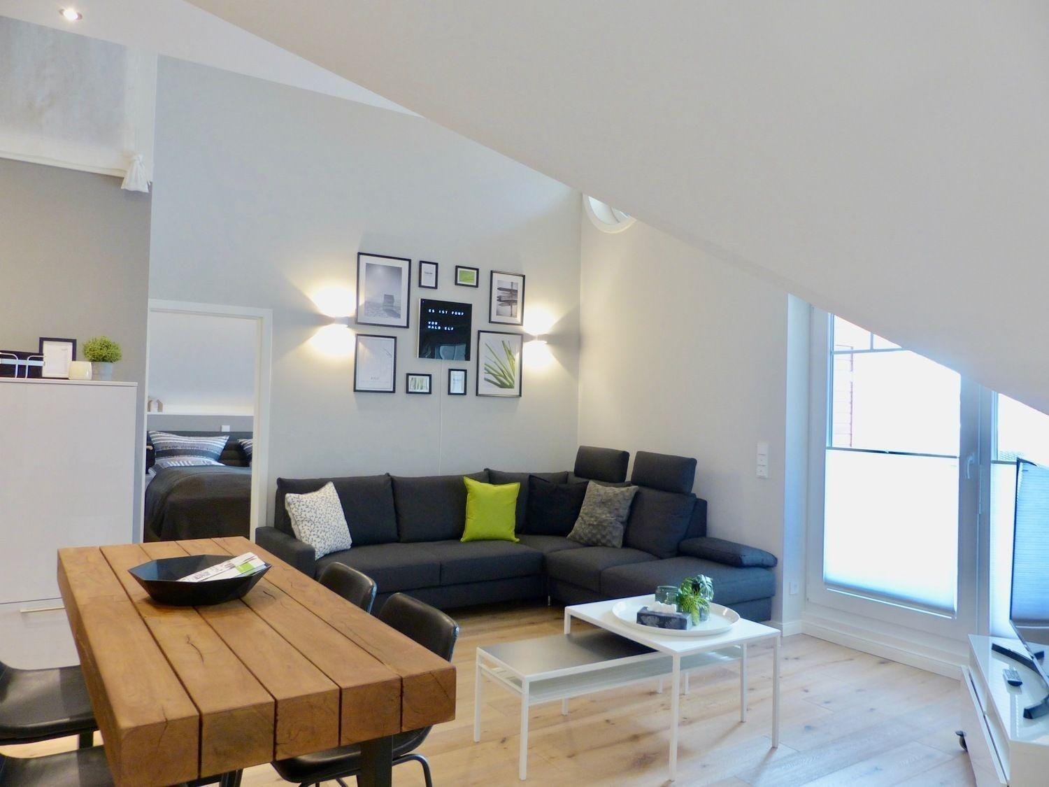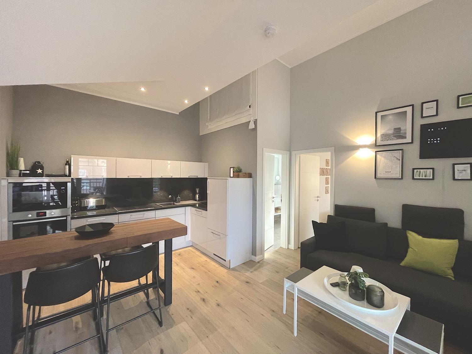 Großzügig und offen, das zeichnet diese Ferienwohnung im Dachgeschoss aus. Sie erreichen die Wohnung bequem mit dem Fahrstuhl. Deckenhöhen von über 3 Metern geben ein exklusives Raumgefühl.