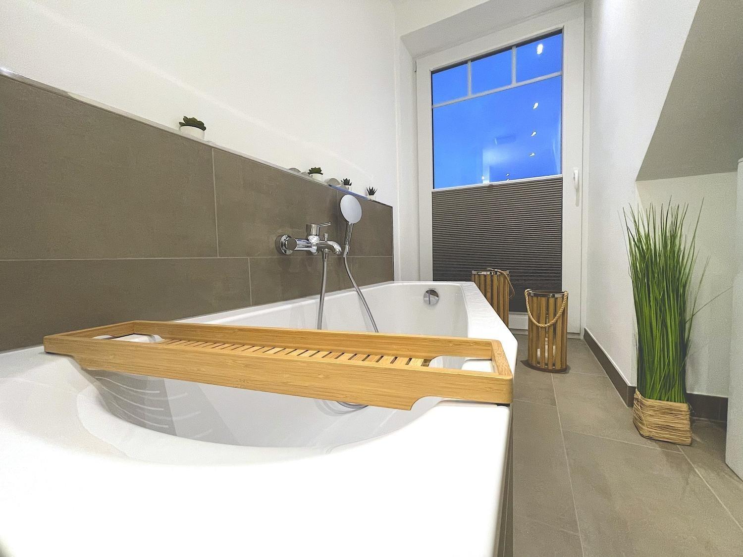 in den beiden Zimmern finden Sie alles, was Sie für eine Auszeit brauchen, hochwertige Küche und Möbel, moderne TV-Geräte und WLAN. Das Bad mit Tageslicht verfügt über eine Badewanne und eine bodenebene Dusche.