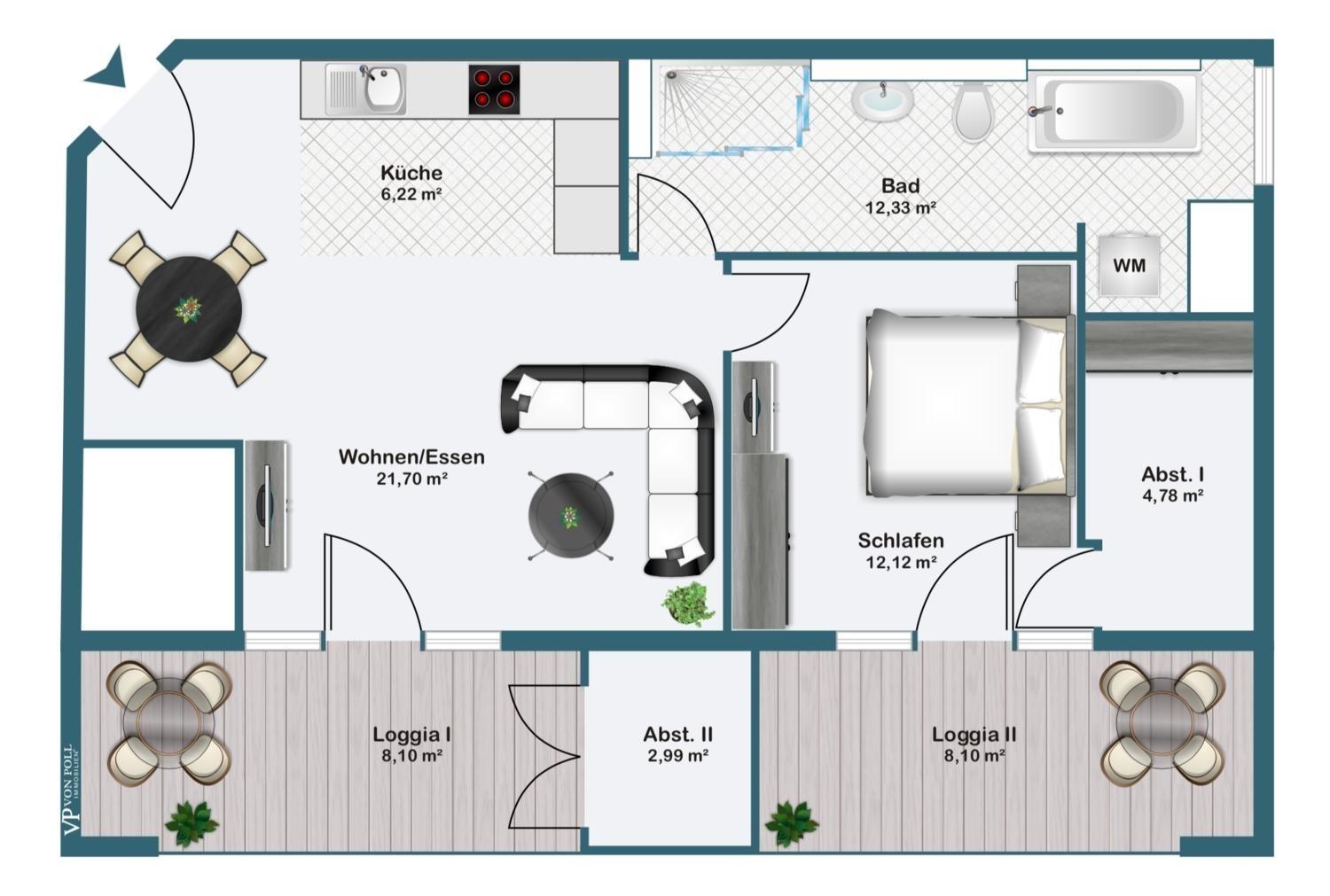 Moderne Ferienwohnung mit über 3 Meter hohen Decken und zwei Loggien nahe Strand in Westerland.