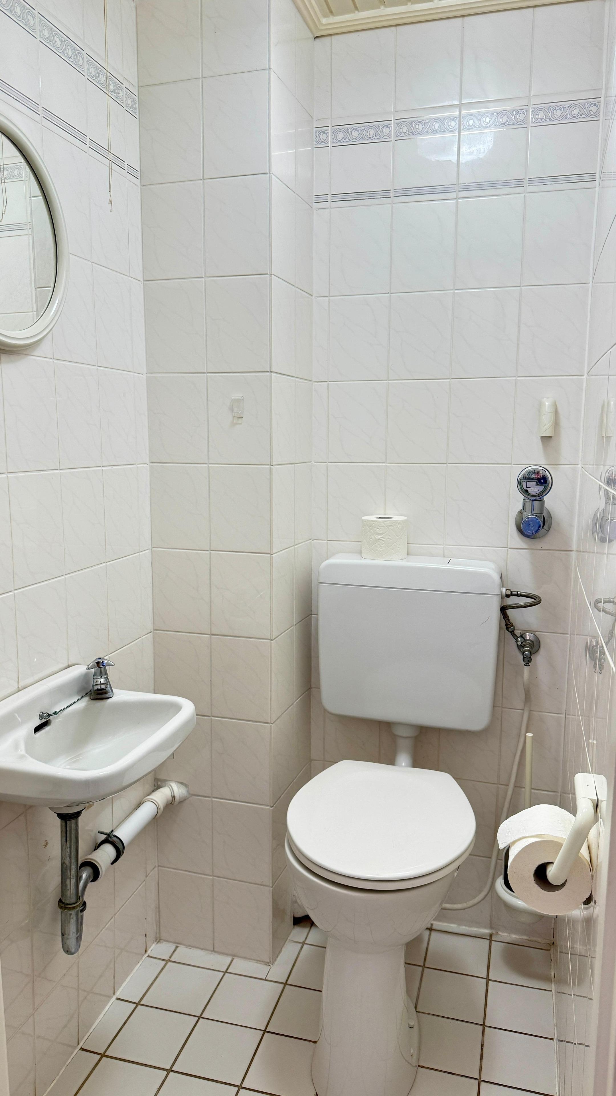 Das Duschbad und das WC sind in getrennten Räumen. In der Dusche ist ein Duschsitz für Behinderte eingebaut. Hier ist auch ein Föhn vorhanden. Das WC verfügt über einen erhöhten WC-Sitz.