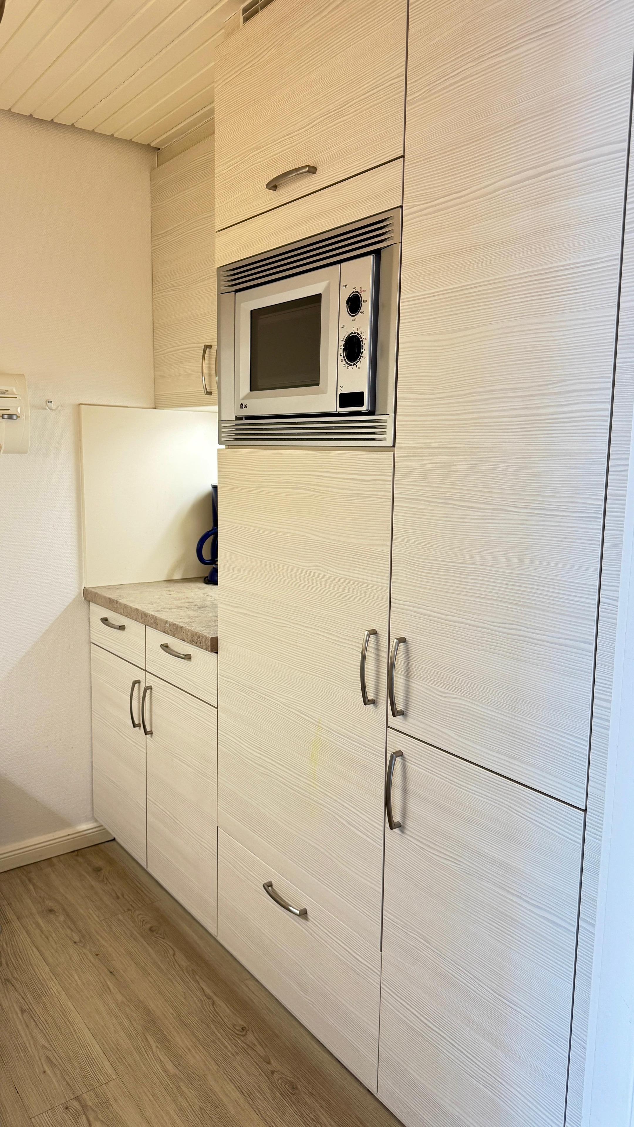 In der separaten, modernen Küche befindet sich ein Geschirrspüler, ein Herd mit Backofen, eine Mikrowelle sowie ein Kühlschrank mit Eisfach. Natürlich ist dort auch eine Kaffeemaschine, ein Toaster, ein Eierkocher und ein Wasserkocher vorhanden.