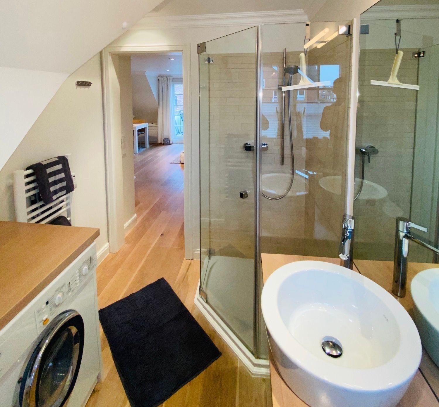 Abgehend vom Wohnraum erreichen Sie das moderne Duschbad sowie das Kinderschlafzimmer mit Etagenbett. Über die innenliegende Treppe gelangen Sie in das Hauptschlafzimmer. Direkt unter dem Dach gelegen sorgt der Schlafraum für besondere Gemütlichkeit und herrlich ruhige Nächte.