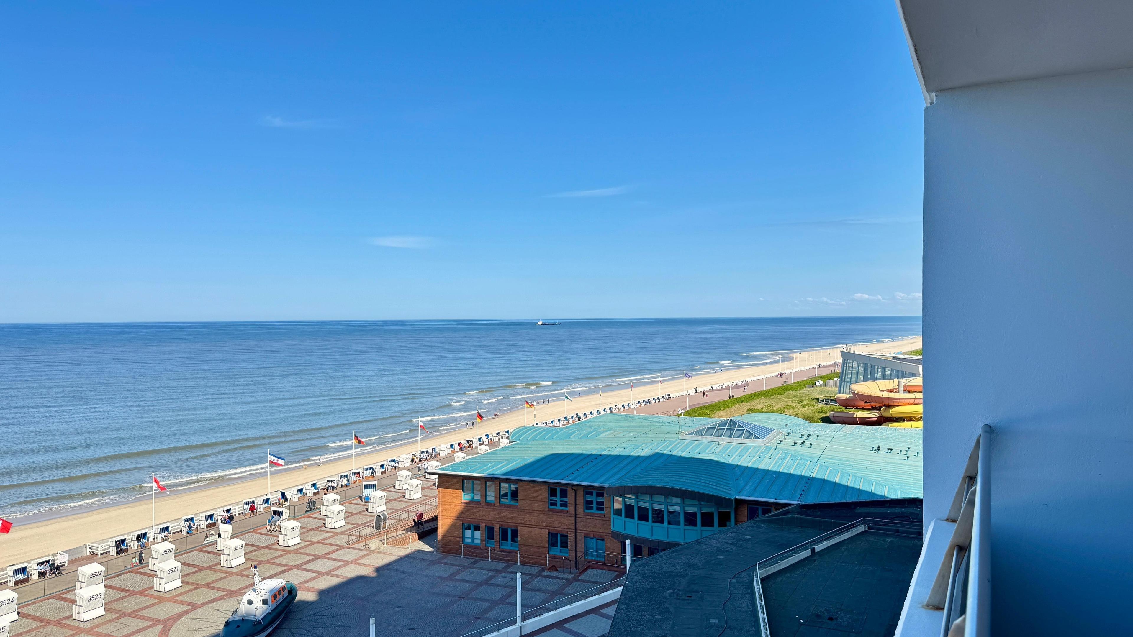 Modernes Appartement mit Balkon und traumhaftem Meerblick in Westerland, ideal für einen erholsamen Strandurlaub.