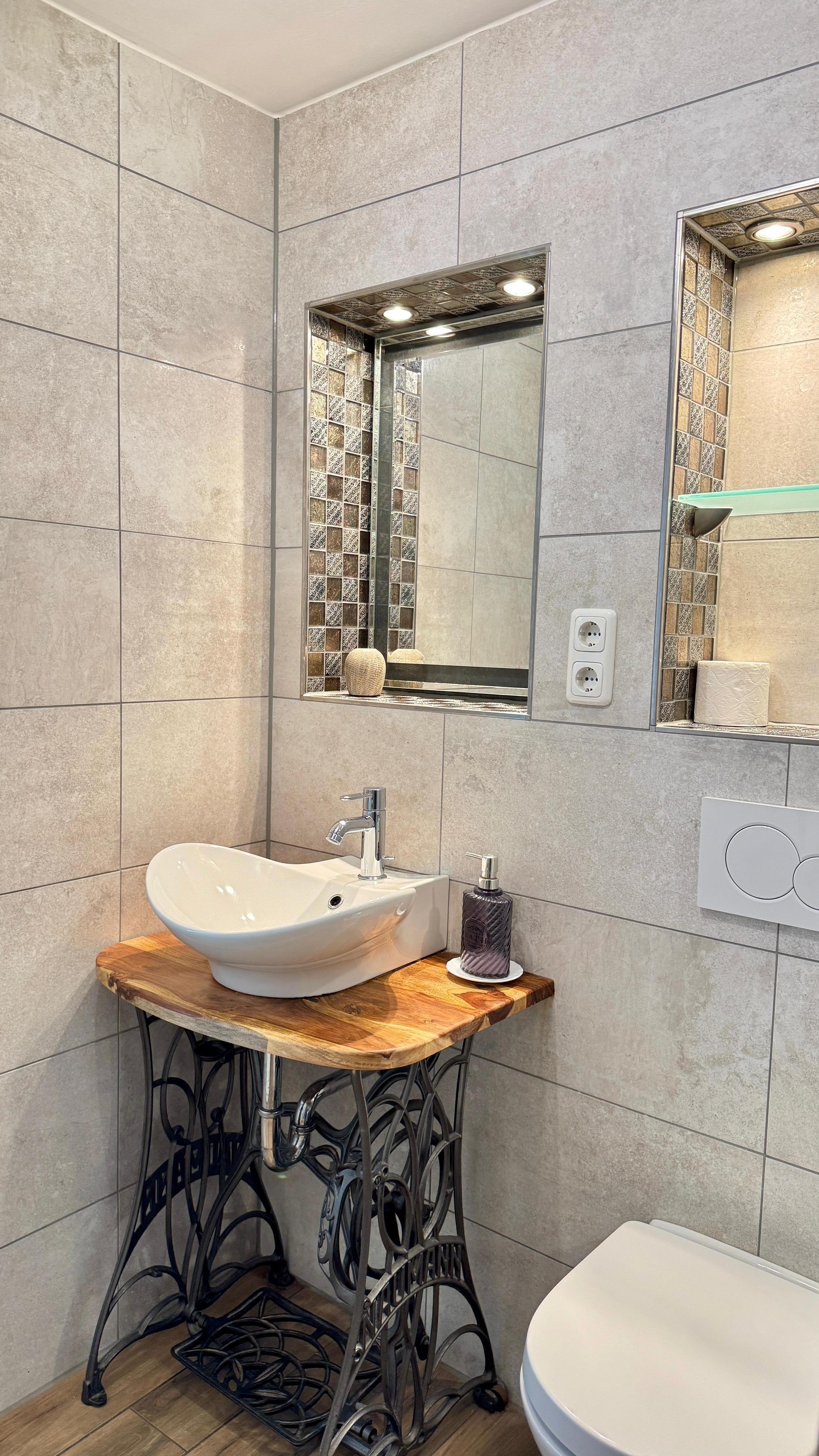 - ausgestattet mit italienischen Fliesen und angefertigtem Design Waschtisch