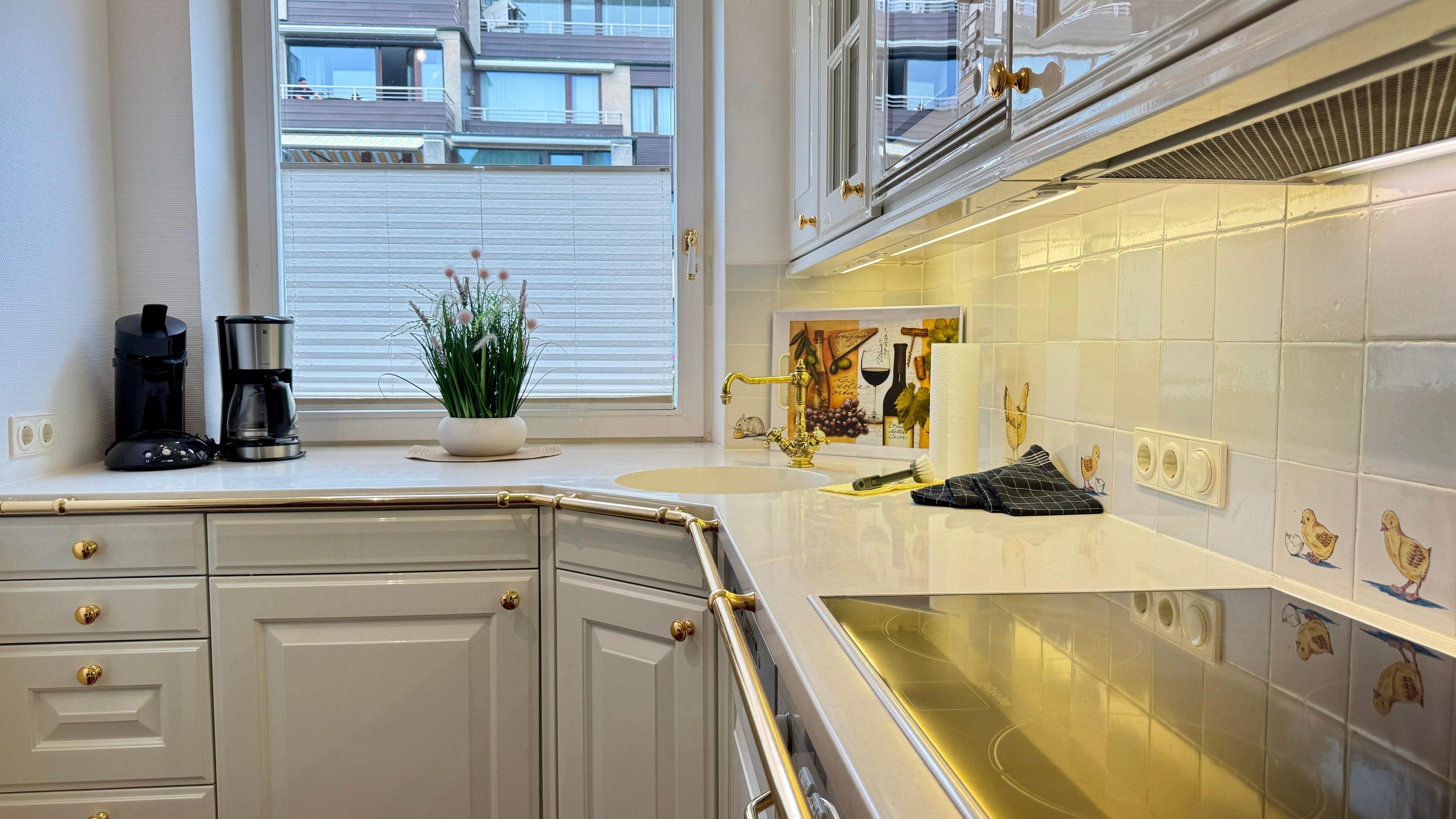 Paare oder Familien mit einem Kind. Freuen Sie sich auf eine hochwertig ausgestattete, separate Küche mit Geschirrspüler, Kühlschrank mit Gefrierfach, Kaffeemaschine, Toaster, Eierkocher, Wasserkocher, Mikrowelle und mehr.