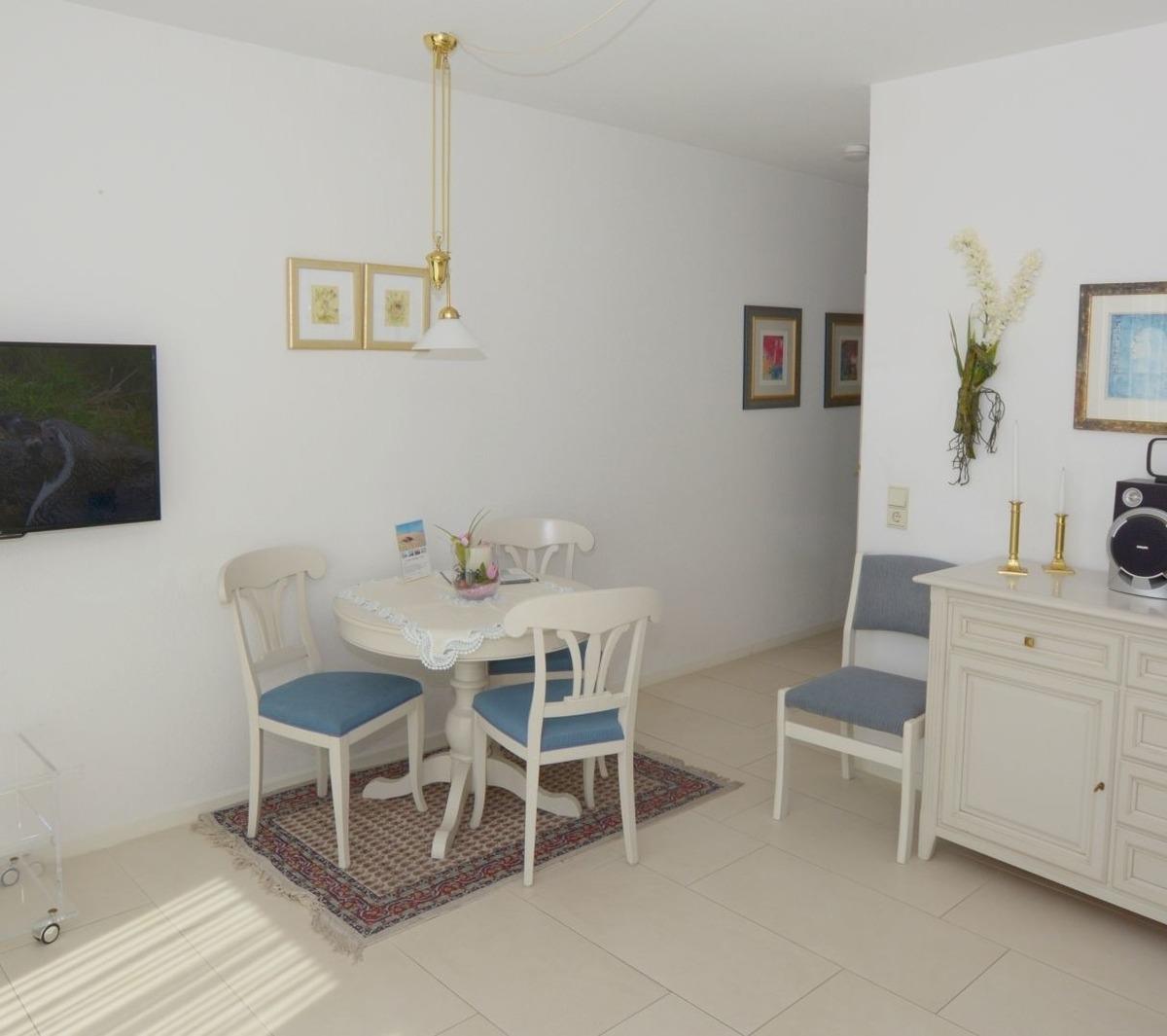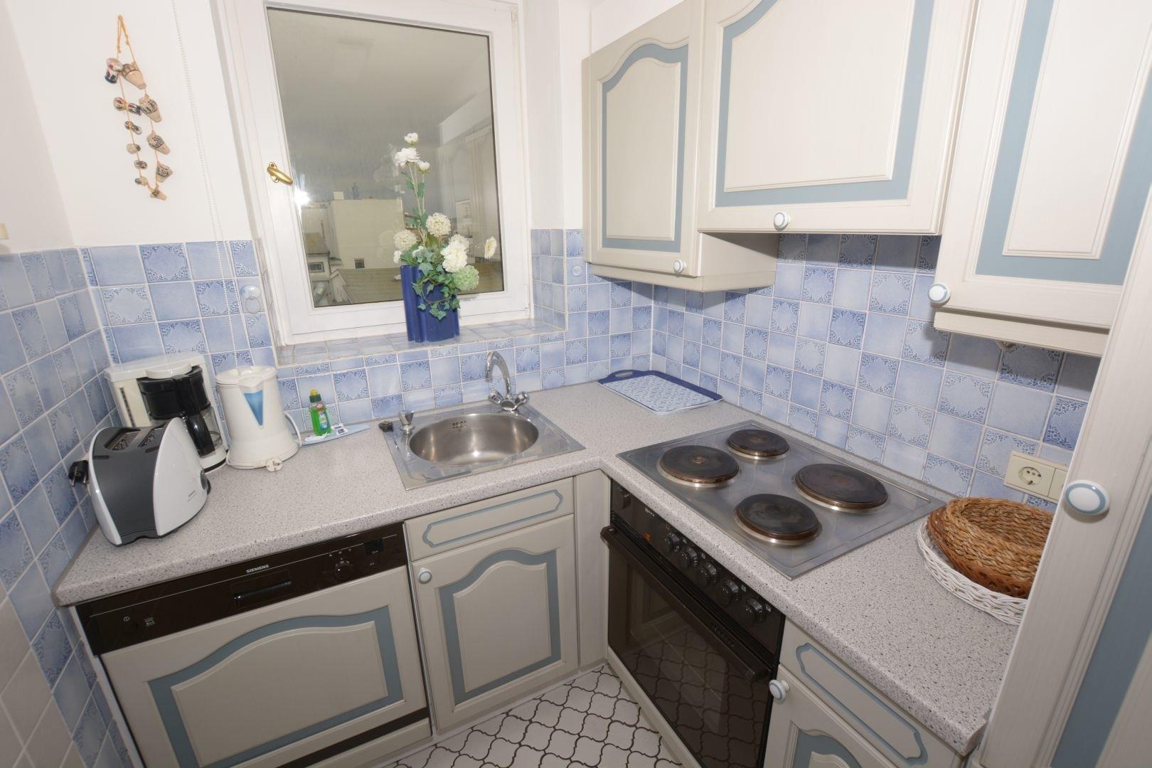 Das Appartement liegt in der 2. Etage und ist ca. 58 qm groß und ist komplett hell gefliest. Es besitzt eine voll ausgestattete Küche in friesisch blau/weiß mit Geschirrspüler und 4 Plattenherd. Das geräumige Duschbad ist hell gefliest. Die Duschkabine wurde 2018 erneuert. Im gemütlich eingerichteten Wohnraum befinden sich ein sehr bequemes Schlafsofa mit Matratze (wurde im Juni 2019 ersetzt) , 40 Zoll Flachbild-TV, Stereoanlage und eine kleine Essecke. Ein Internetanschlß via WLAN (ohne Gewähr) steht Ihnen auch zur Verfügung. Im Schlafzimmer befindet sich ein weißes Holzbett mit einzelnen Matratzen 90x200 cm mit zwei Nachttischen, dieses wurde im November 2020 erneuert. Im Schlafzimmer befindet sich auch noch ein großer, 3 türiger Kleiderschrank. Das Appartement ist für 4 Personen eingerichtet. Ein Balkon zur sonnigen Südseite steht Ihnen zur Verfügung.