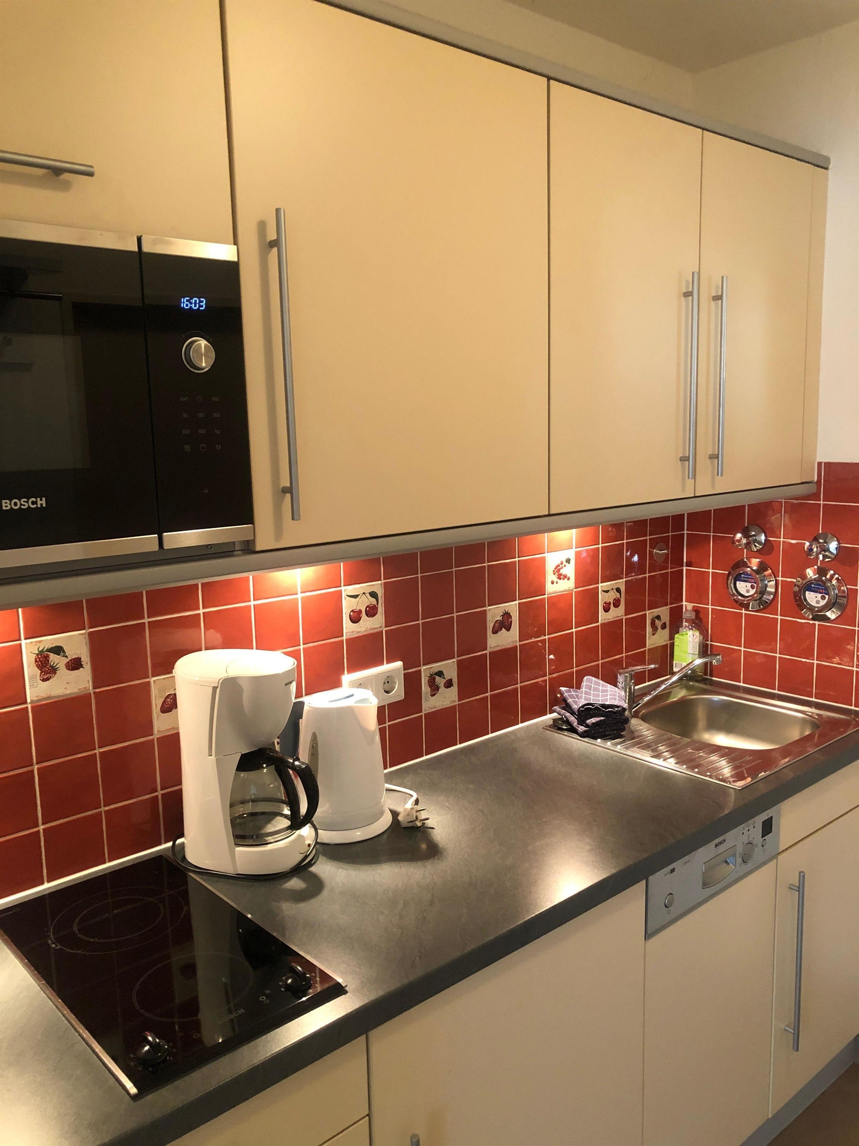 Die moderne Einbauküche verfügt über Herd, Kühlschrank, Geschirrspüler und eine Mikrowelle. Das Bad ist funktionell eingerichtet. Das Wohn-Schlafzimmer ist hell und geräumig und wurde erst kürzlich komplett neu ausgestattet. Das Bettsofa ist Anfang 2018 ausgetauscht worden. Selbstverständlich verfügt das Appartement über eine Stereoanlage, einen Flachbildschirm-Fernseher und über W-Lan.