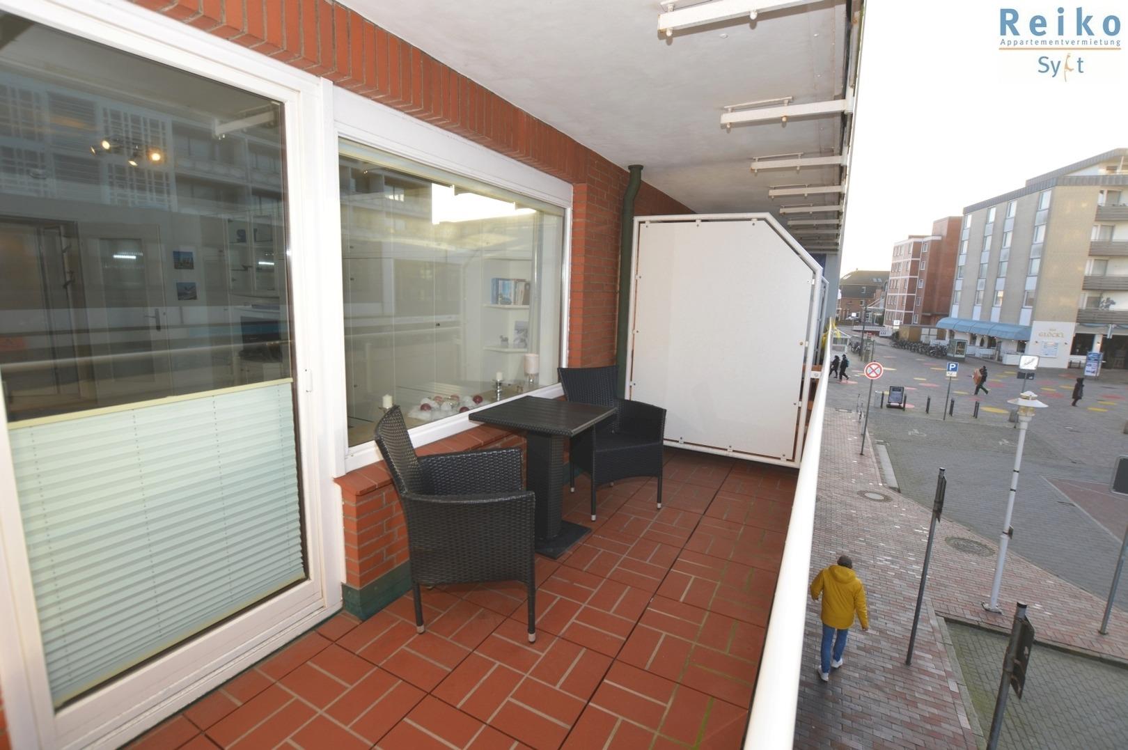 Auf dem Westbalkon stehen Sitzmöbel zur Entspannung und zum Verweilen bereit.