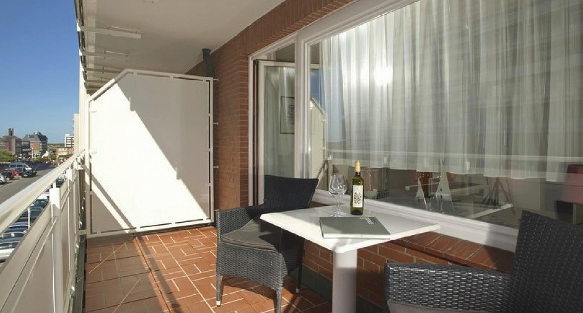 Auf dem Westbalkon stehen Sitzmöbel zur Entspannung und zum Verweilen bereit.