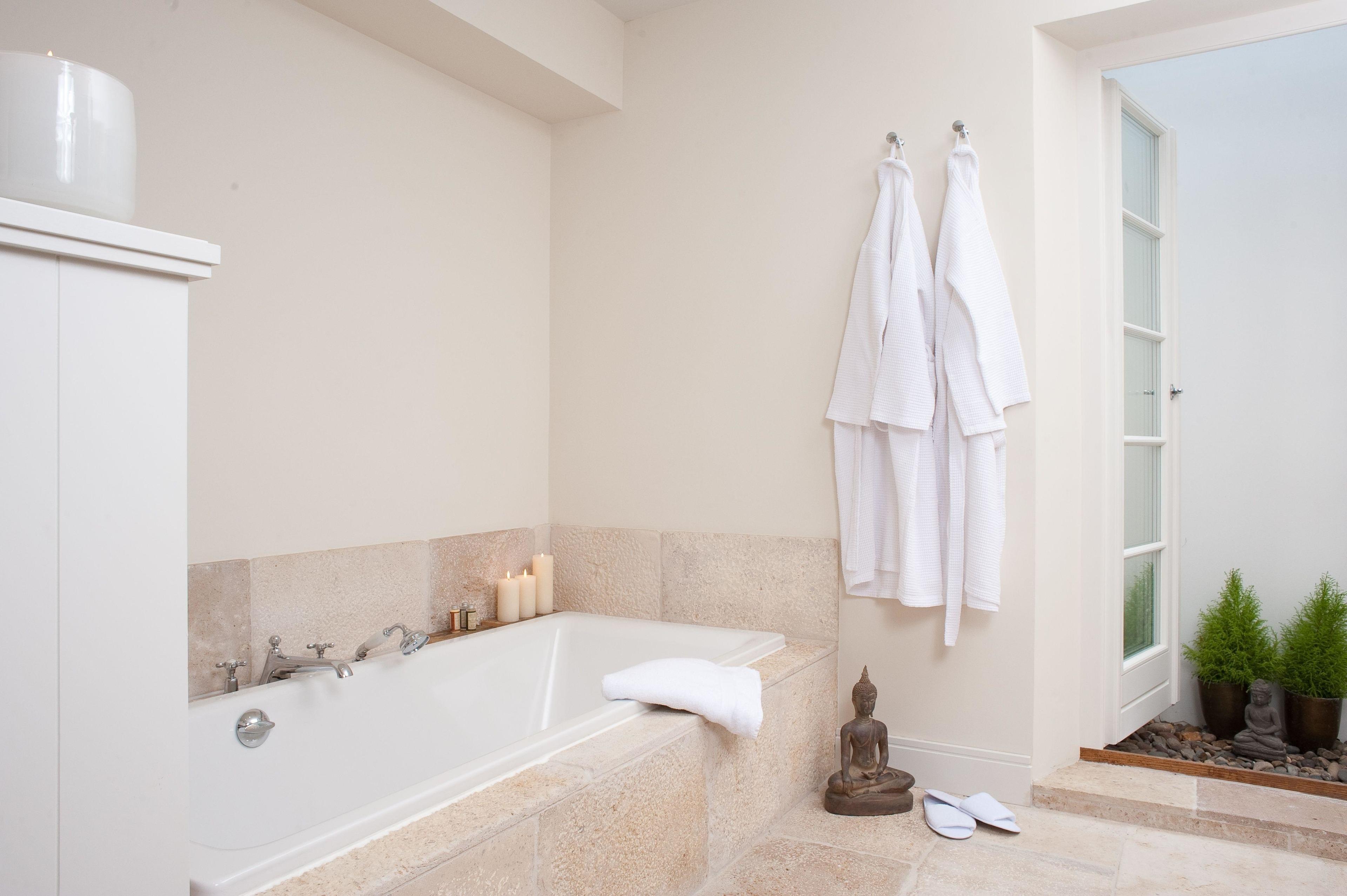Die Ferienwohnung, die sich im westlichen Hausteil befindet, bietet eine stilvolle Einrichtung im hellen Design von Mylin Interieurs. Erlesene, hochwertige Materialien wie beispielsweise antiker Holzfußboden, französischer Limestone, helle Raumfarben sowie geradlinige Tischlereinbauten erfüllen höchste Ansprüche.