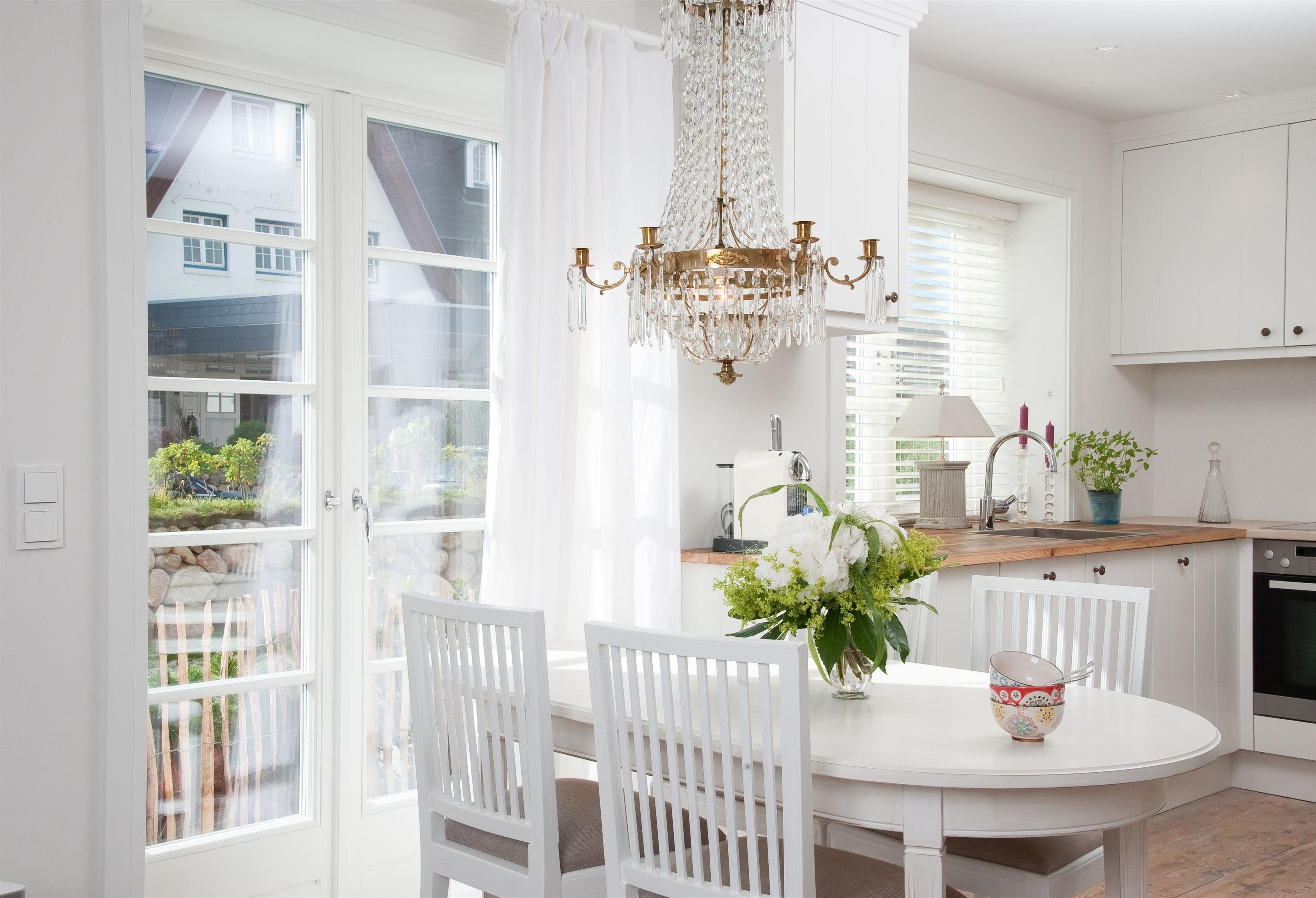 Das Erdgeschoss wird durch große Fenster und Terrassentüren vom Licht durchflutet. Das großzügige Wohn- und Esszimmer grenzt an eine offene komfortable Küche. Ausgestattet mit einem antiken Kachelofen, TV, Radio, Sonos-Anlage sowie W-LAN bleiben hier keine Wünsche offen. Das hochwertige Sofa bietet eine Schlafmöglichkeit für weitere zwei Personen.