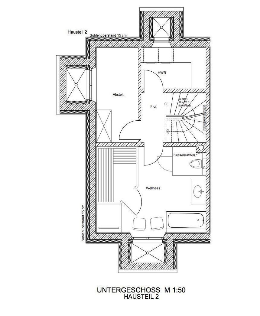 Im Untergeschoss finden Sie den Wellnessbereich mit Sauna, Regendusche, Badewanne, sowie einen separaten Ruheraum mit TV und einen Hauswirtschaftsraum. Der Hauswirtschaftsraum ist mit Waschmaschine, Trockner und Bügelbrett ausgestattet.