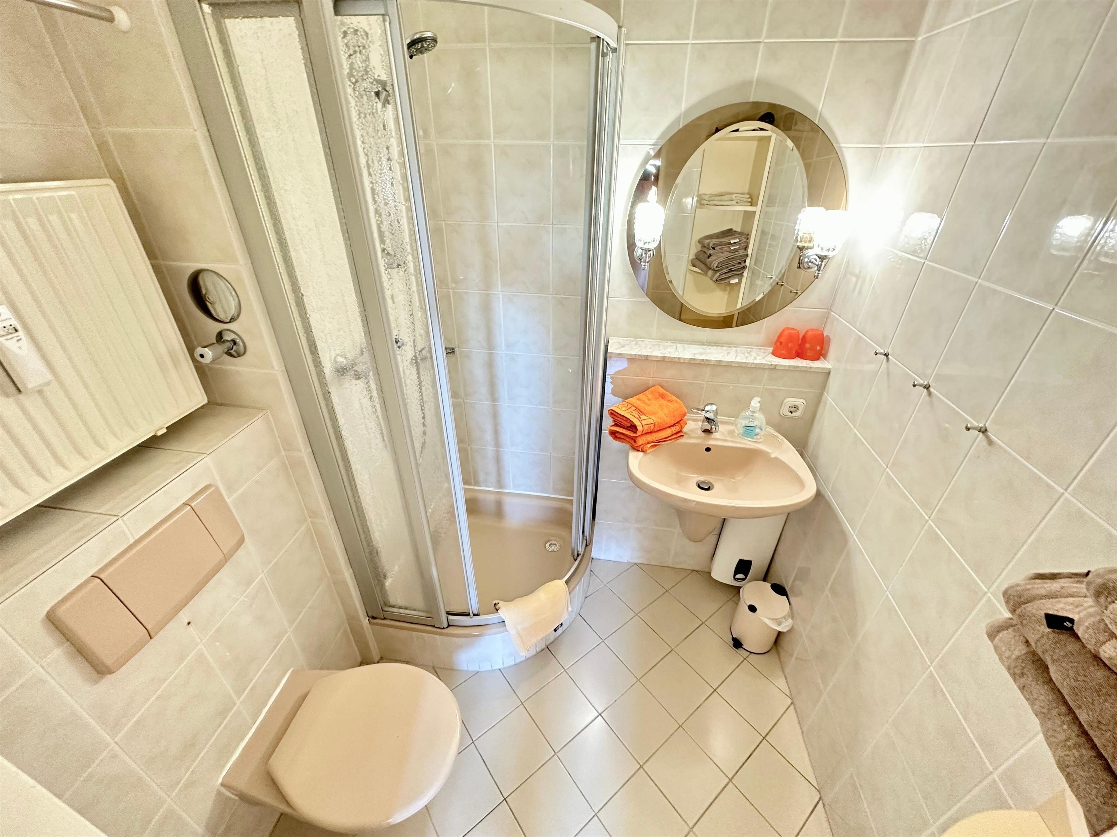 Das Schlafzimmer lädt mit einem komfortablen Doppelbett (160 x 200 cm) mit getrennten Matratzen zu erholsamen Nächten ein. Das moderne Duschbad mit WC sorgt für zusätzlichen Komfort.
