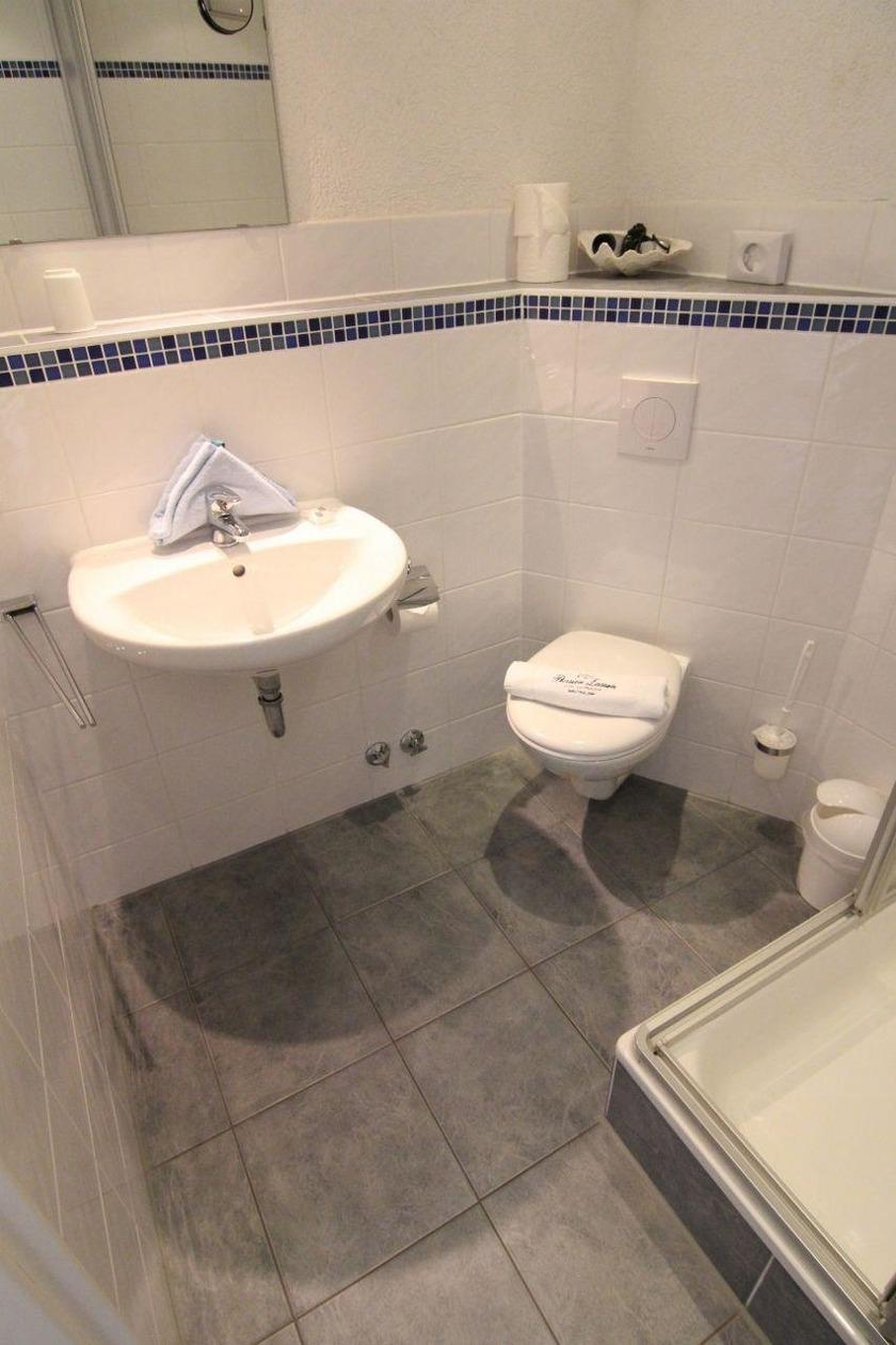 einen Kleiderschrank, Kommode, Stuhl, Garderobe, TV, freies Wlan. Das moderne Duschbad ist innenliegend.
