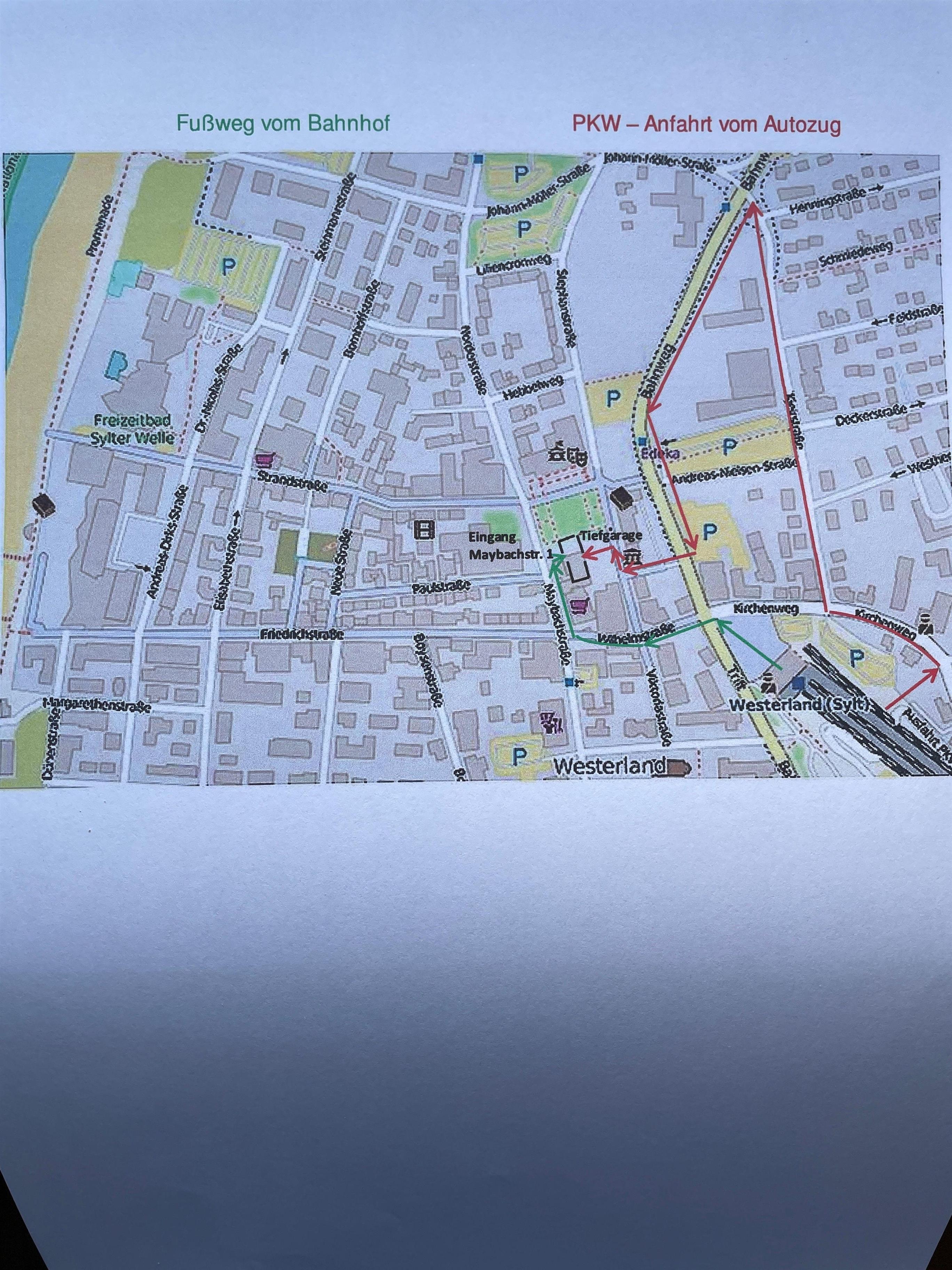 Auf der gegenüberliegenden Straßenseite Anbindung an Friedrichstr., Strandstr. (Fußgängerzonen) und Paulstr..
