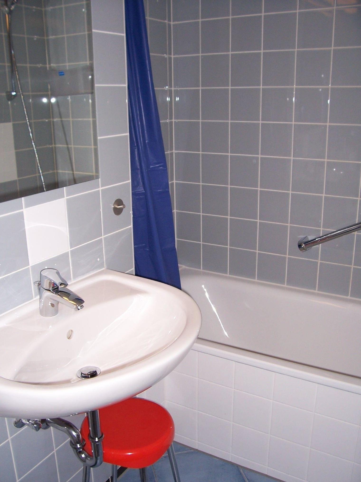 Die moderne Einbauküche verfügt über Herd, Kühlschrank, Geschirrspüler und eine Mikrowelle. Das Vollbad ist funktionell eingerichtet.