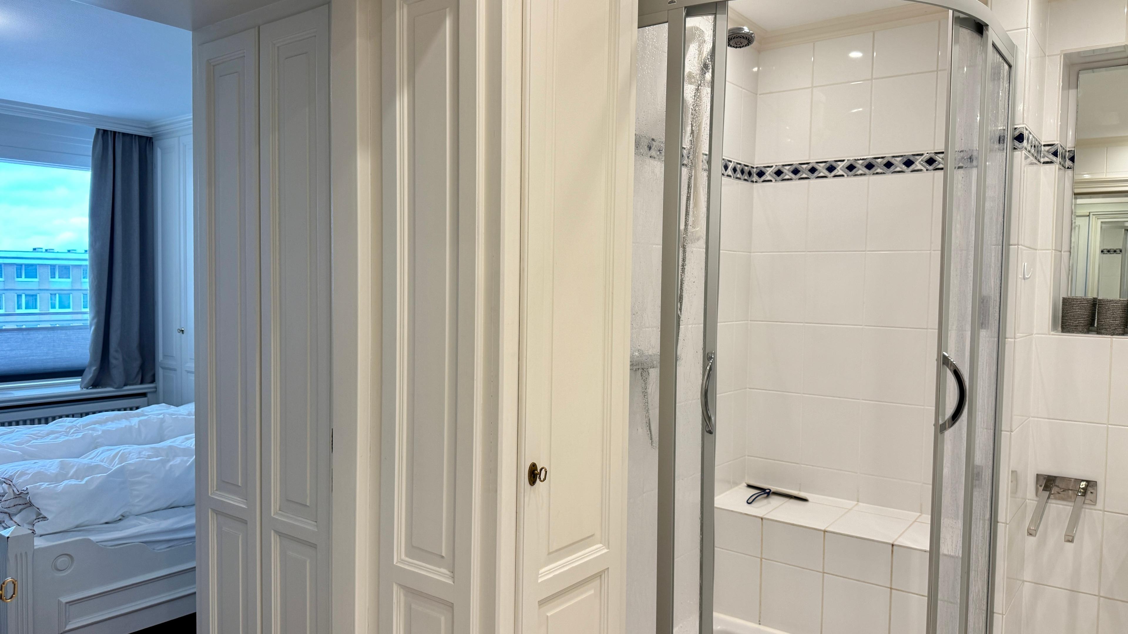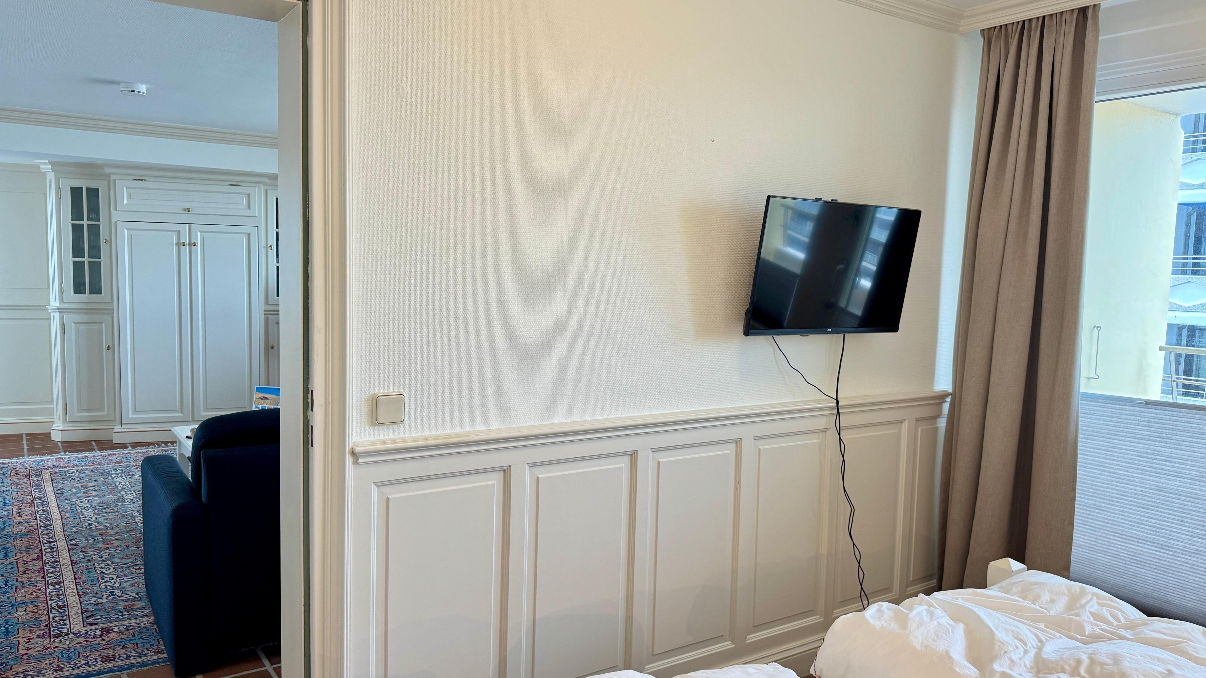 Im separaten Schlafzimmer befindet sich ein bequemes Doppelbett, ein Flachbild-TV an der Wand und ein Zugang zu einem weiteren Ostbalkon.