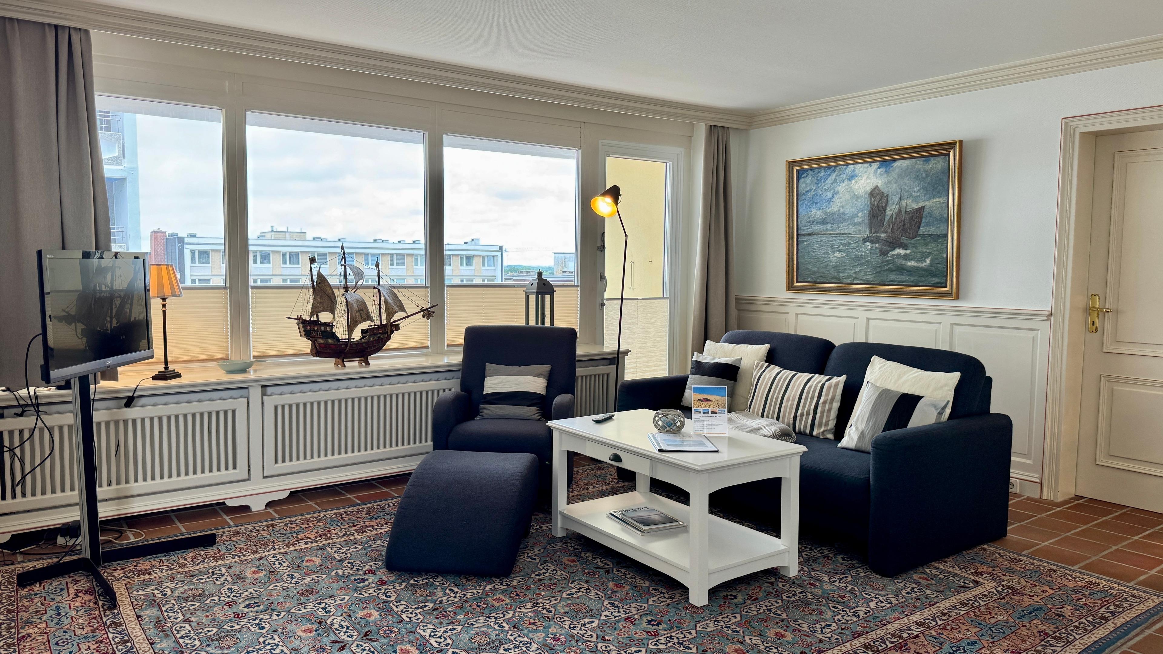 Komfortable 2-Zimmer-Ferienwohnung in Westerland mit Meerblick und zwei Balkonen, ideal für erholsamen Strandurlaub.