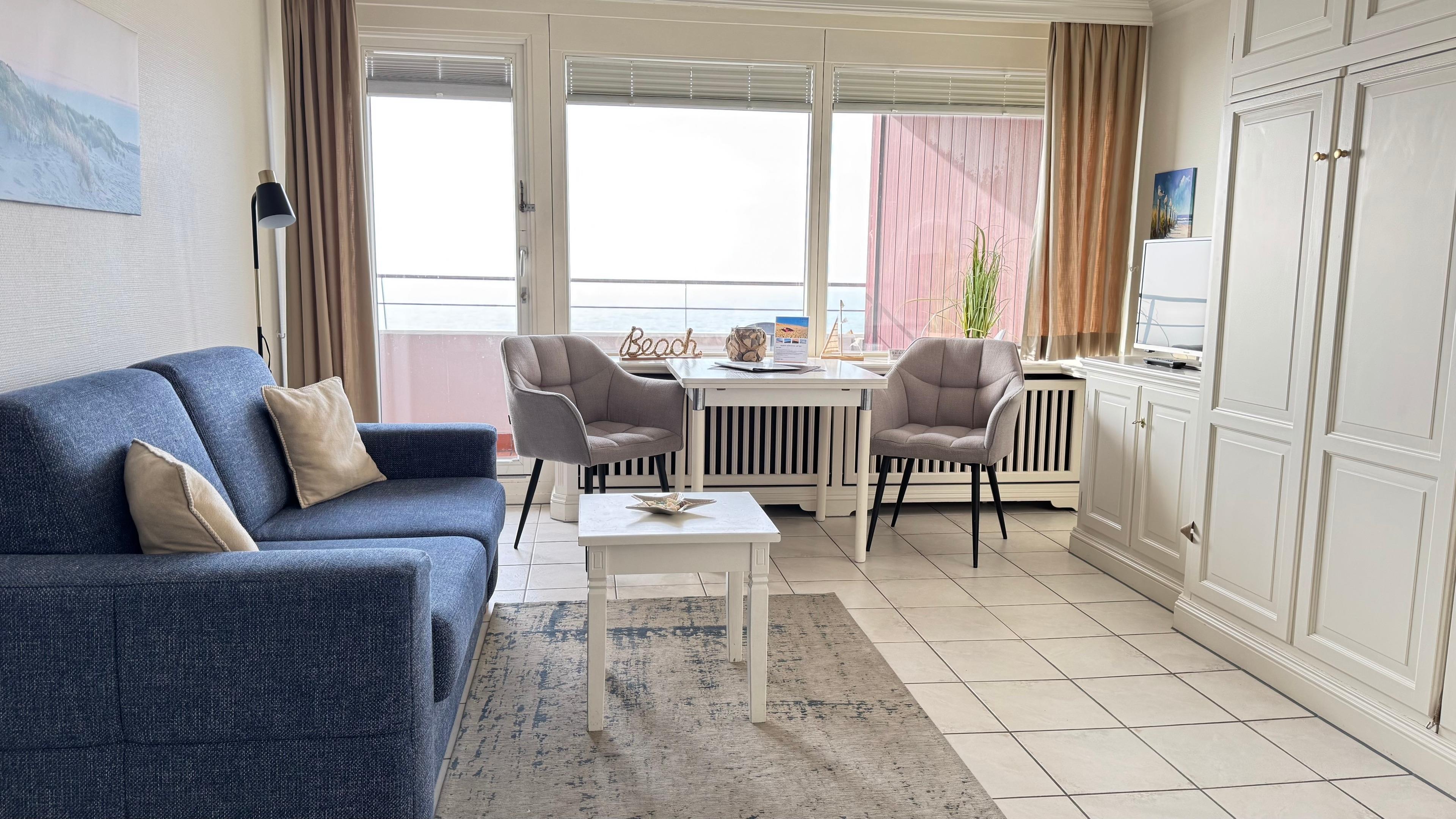 Modernes Nichtraucher-Appartement mit Meerblick, Balkon und Strandnähe in Westerland, ideal für einen entspannten Urlaub zu zweit.