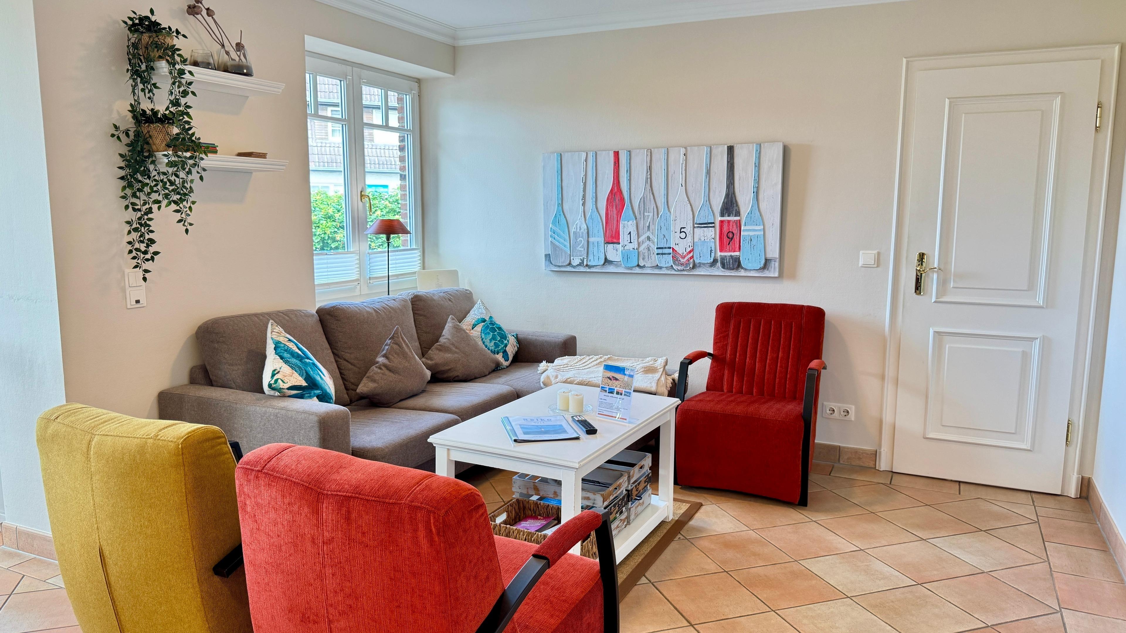 Diese exklusiv hell & gemütliche 4-Zimmer-Nichtraucher-Wohnung befindet sich im Haus 'Syltrose' in Westerland, ca. 500 Meter von der Friedrichstraße entfernt.