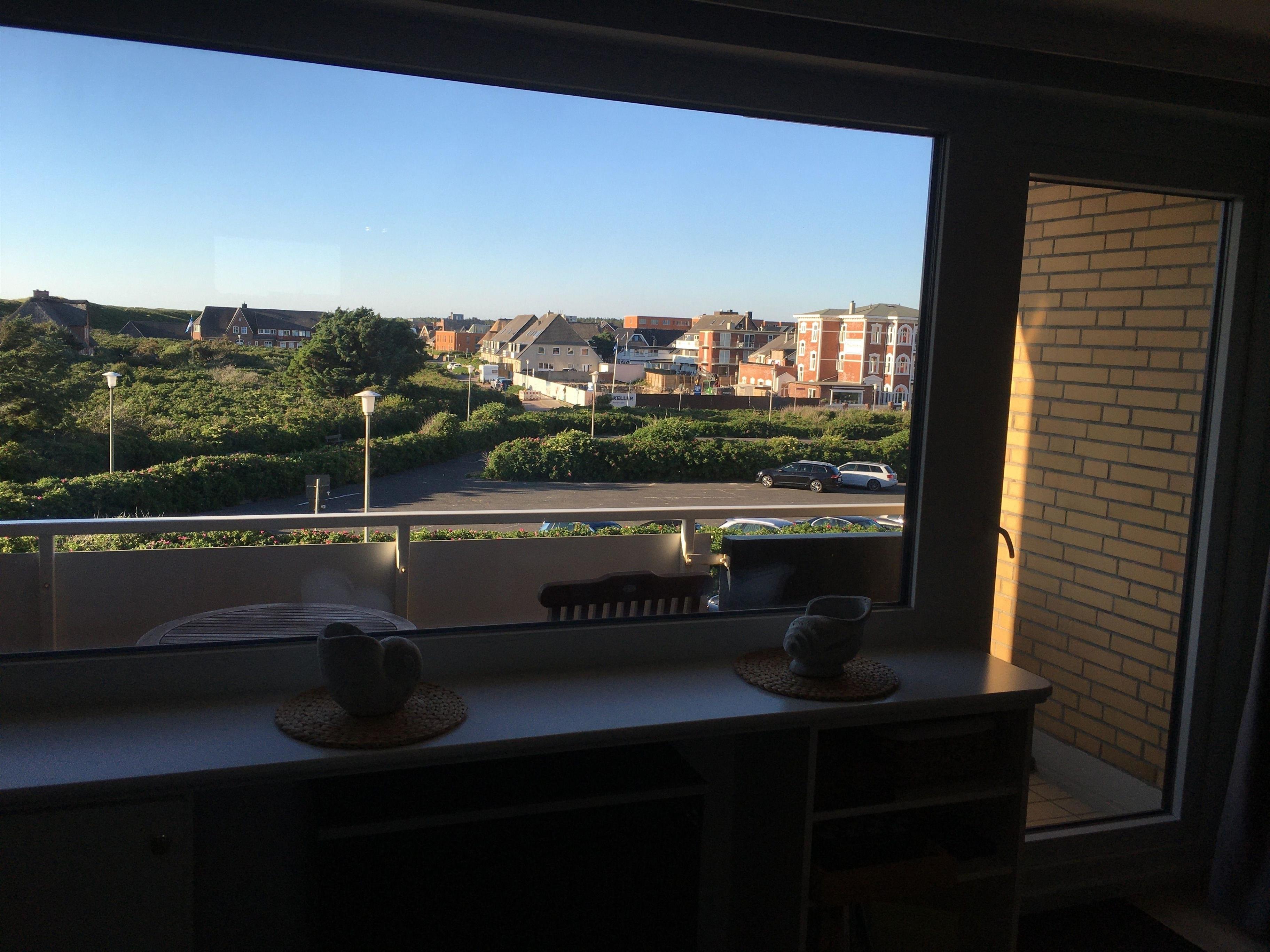 Vom großen Balkon hat man einen tollen Blick auf die Dünen und einen freien Blick über den Brandenburger Platz. Der Parkplatz ist kostenpflichtig.