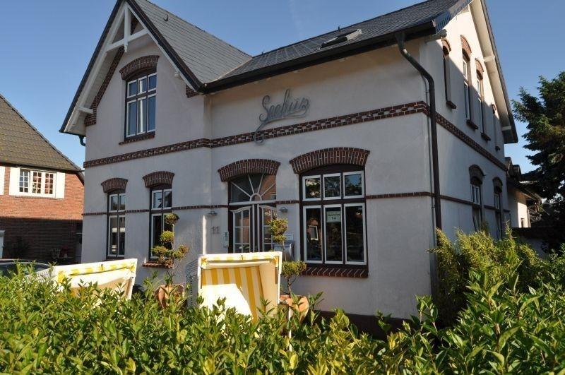 Das "Seehüs" ist eine charmante Bäderstilvilla von 1899, die von uns komplett saniert und neu gestaltet wurde. Ein kleiner Vorgarten mit Brunnen und Strandkörben lädt zum Verweilen ein. Pro Appartement steht ein eigener Parkplatz direkt am Haus zur Verfügung.