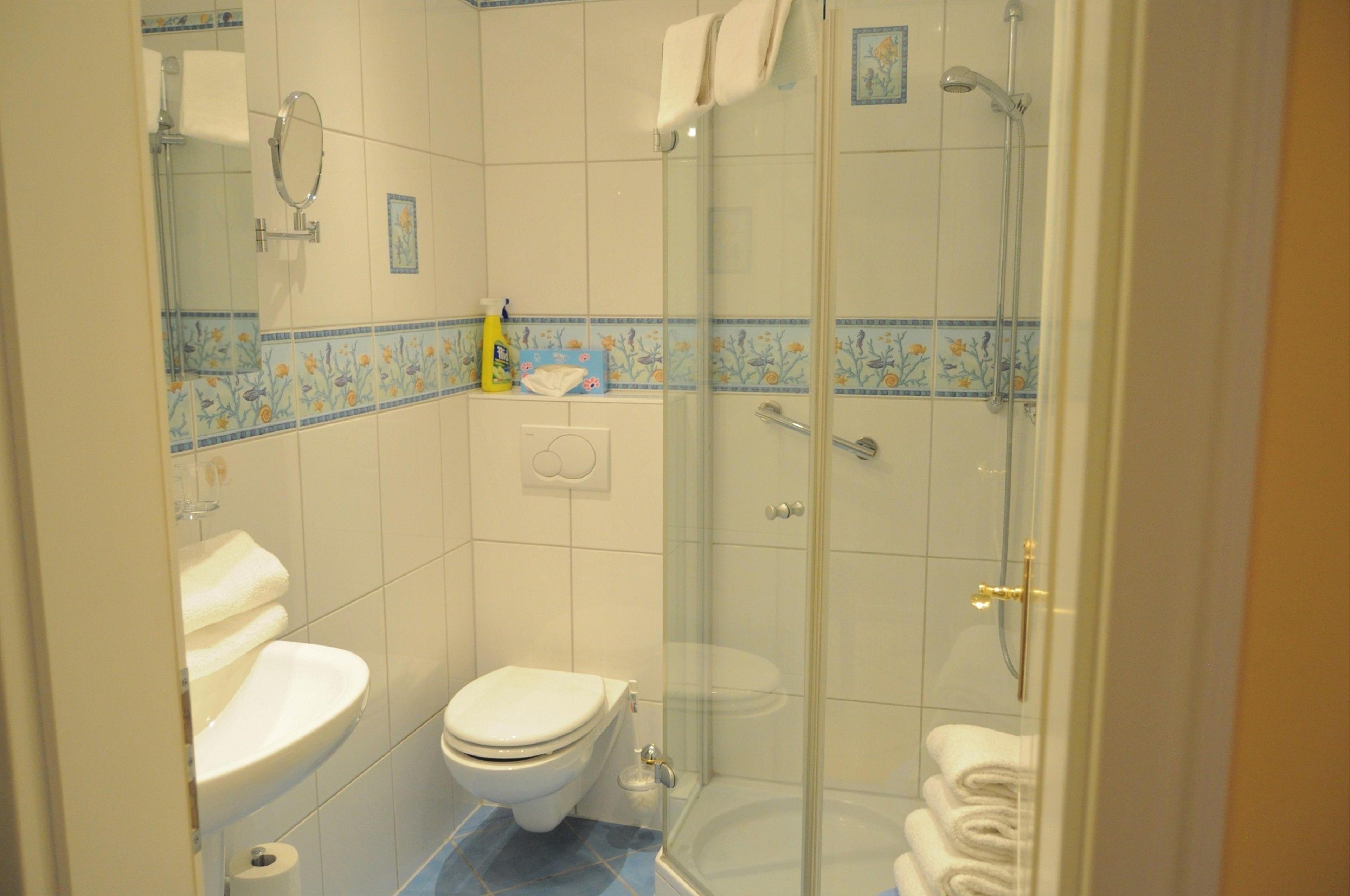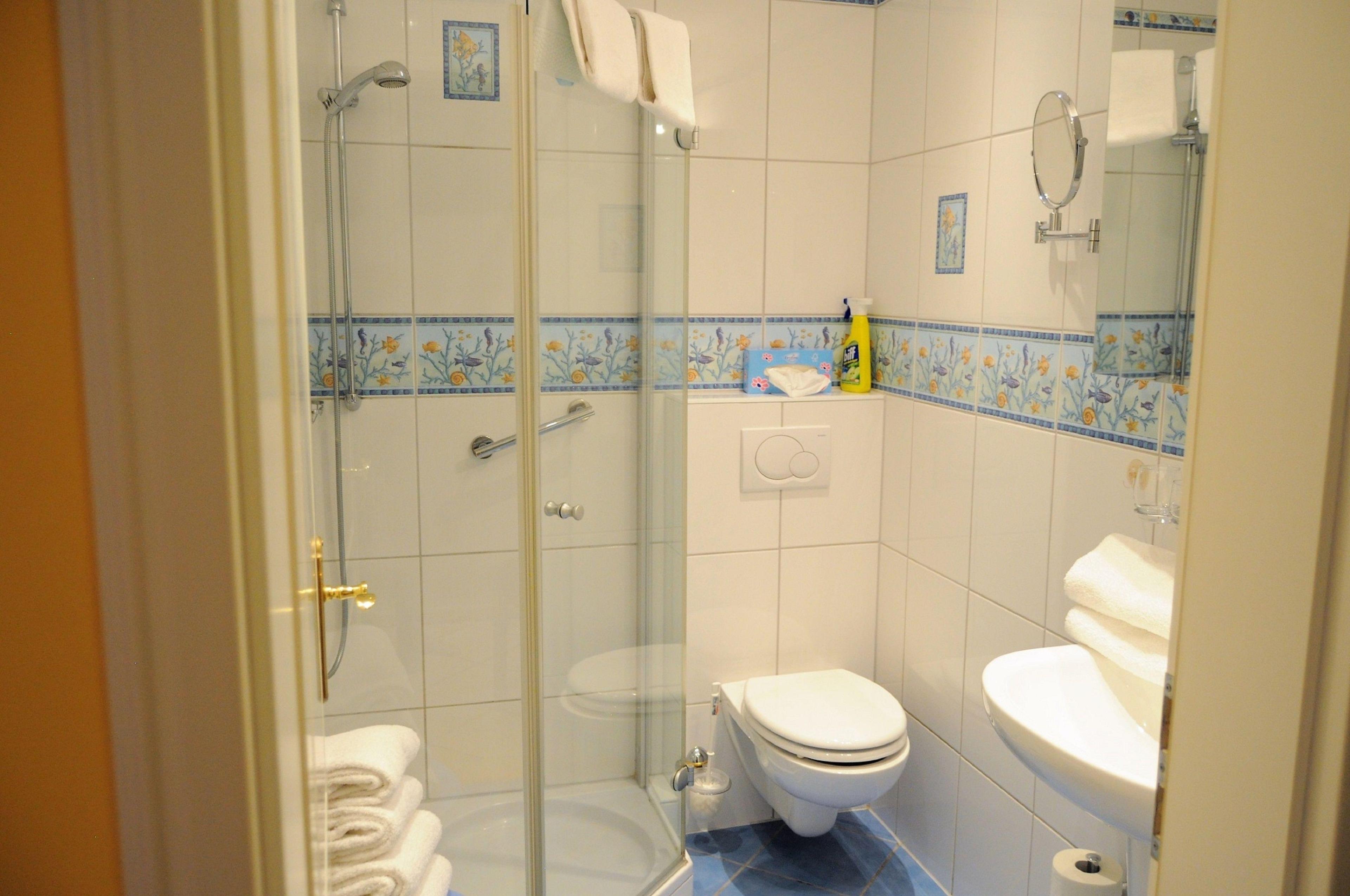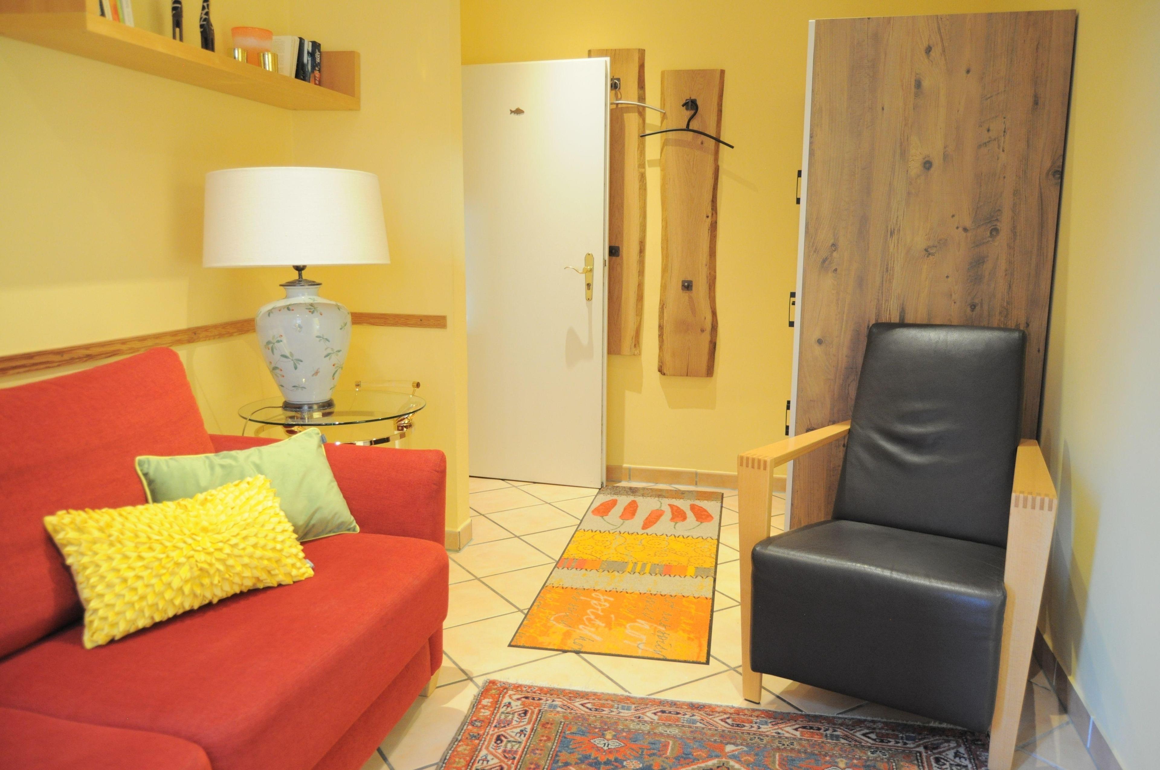 Parkplätze auf eigenem Grundstück kostenfrei und Fahrradständer ebenfalls. Im Vorgarten mit Brunnen und Strandkörben können Sie beim Glas Wein entspannen oder gemütlich eine Zigarette rauchen und die Abendsonne genießen.