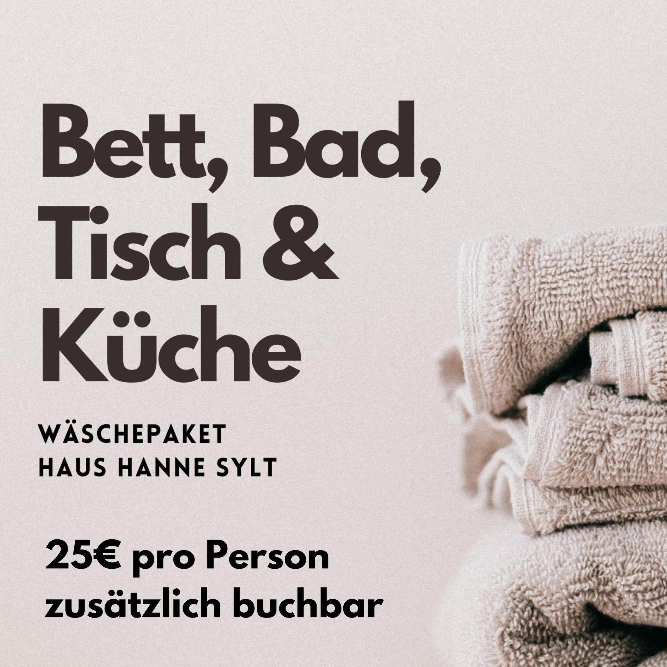 Wäschepakete (Bettwäsche, Handtücher, Küchenwäsche) können für 25€ pro Person hinzugebucht werden.