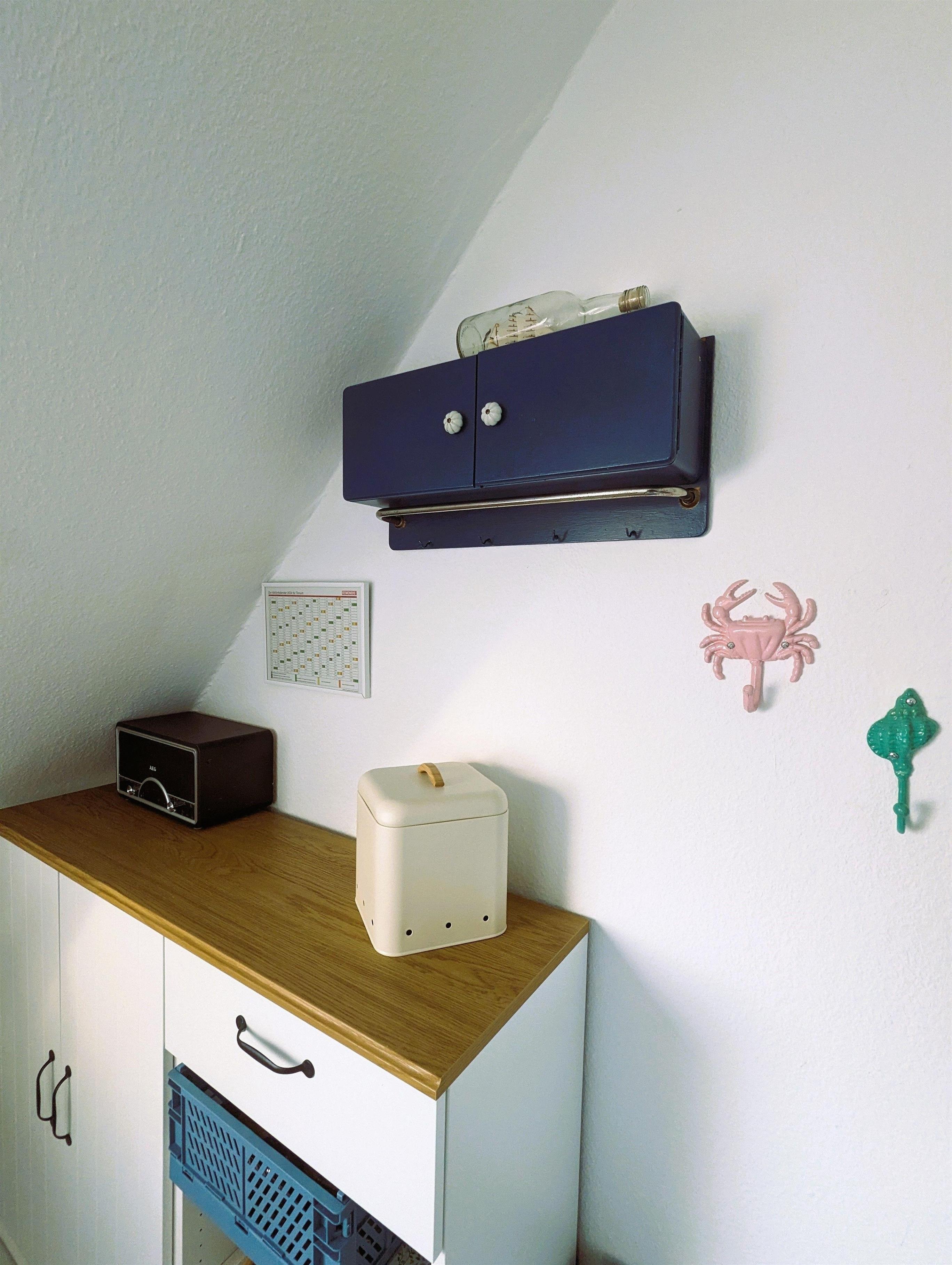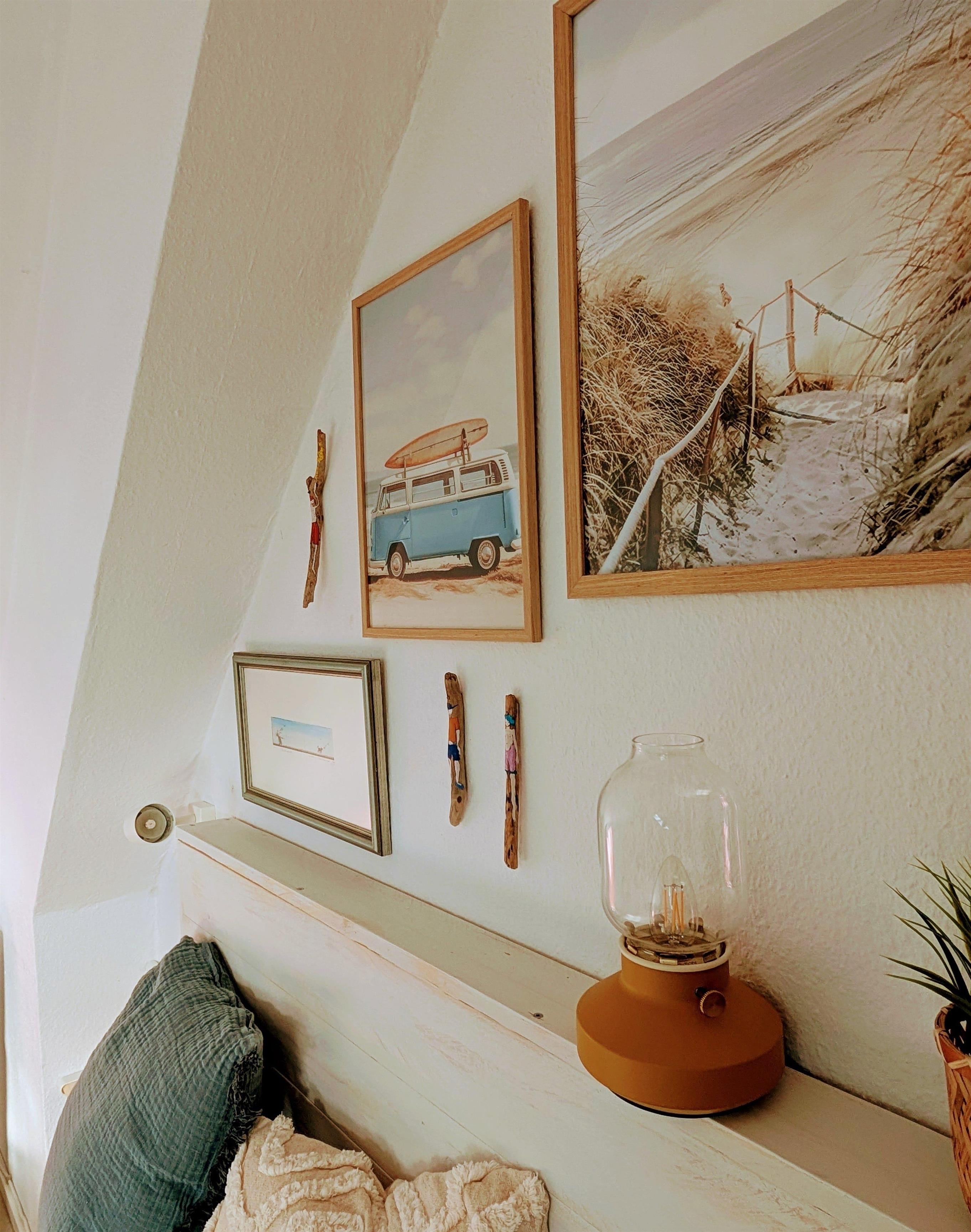 Seitlich des Hauses befindet sich ein kleiner separater Gartenbereich mit Strandkorb, Palettencouch, Tisch und Stühlen exklusiv für die Wohnung im Obergeschoss. Hier finden Sie auch Eimer, Schaufeln und Förmchen für Ihre Kinder.