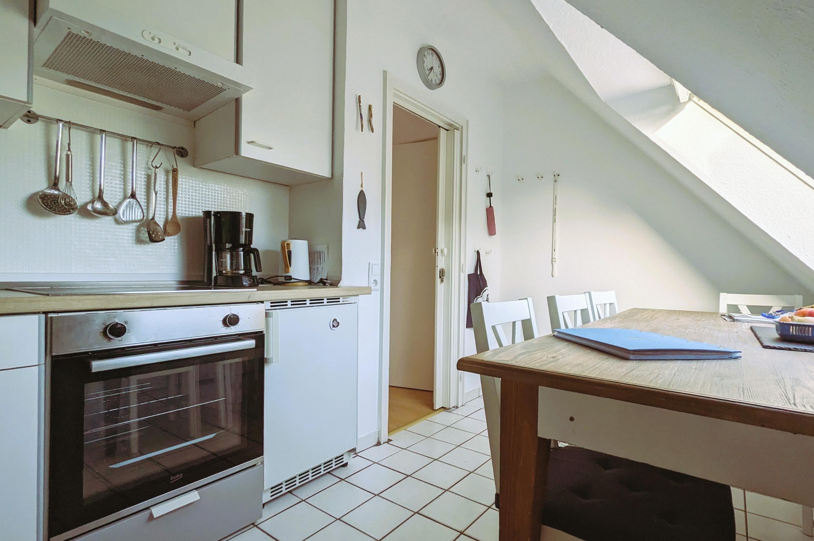 ?Die separate Küche mit Spülmaschine, Backofen und Esstisch ist komplett für Sie ausgestattet. Hier finden Sie eine Kaffee- Filtermaschine und benötigen keine Kapseln.