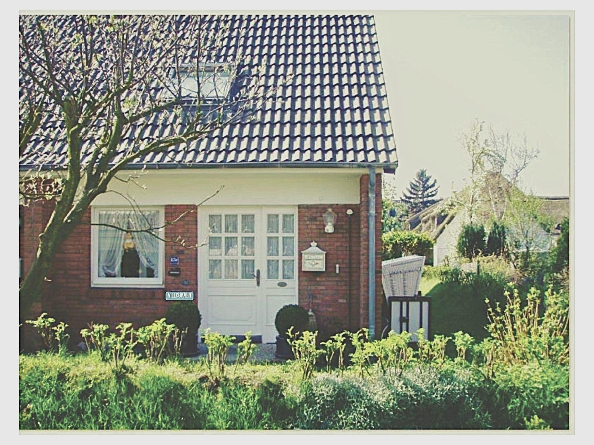 Der Garten ist sylttypisch durch einen begrünten Friesenwall begrenzt, nicht zusätzlich durch einen Zaun.