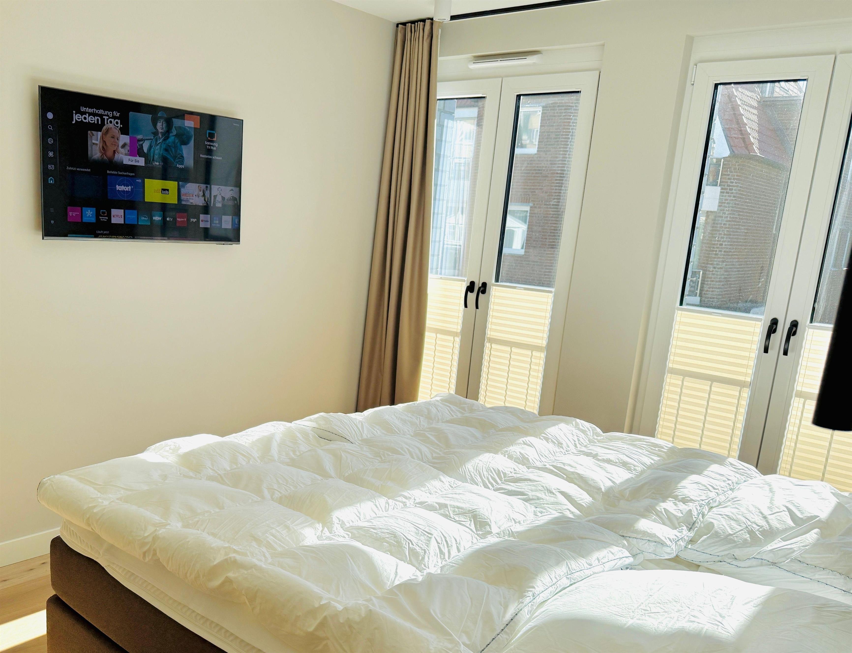 Moderne Ferienwohnung mit Balkon, Tiefgaragenstellplatz und Top-Lage in Westerland, nur wenige Schritte zum Strand und Bahnhof.