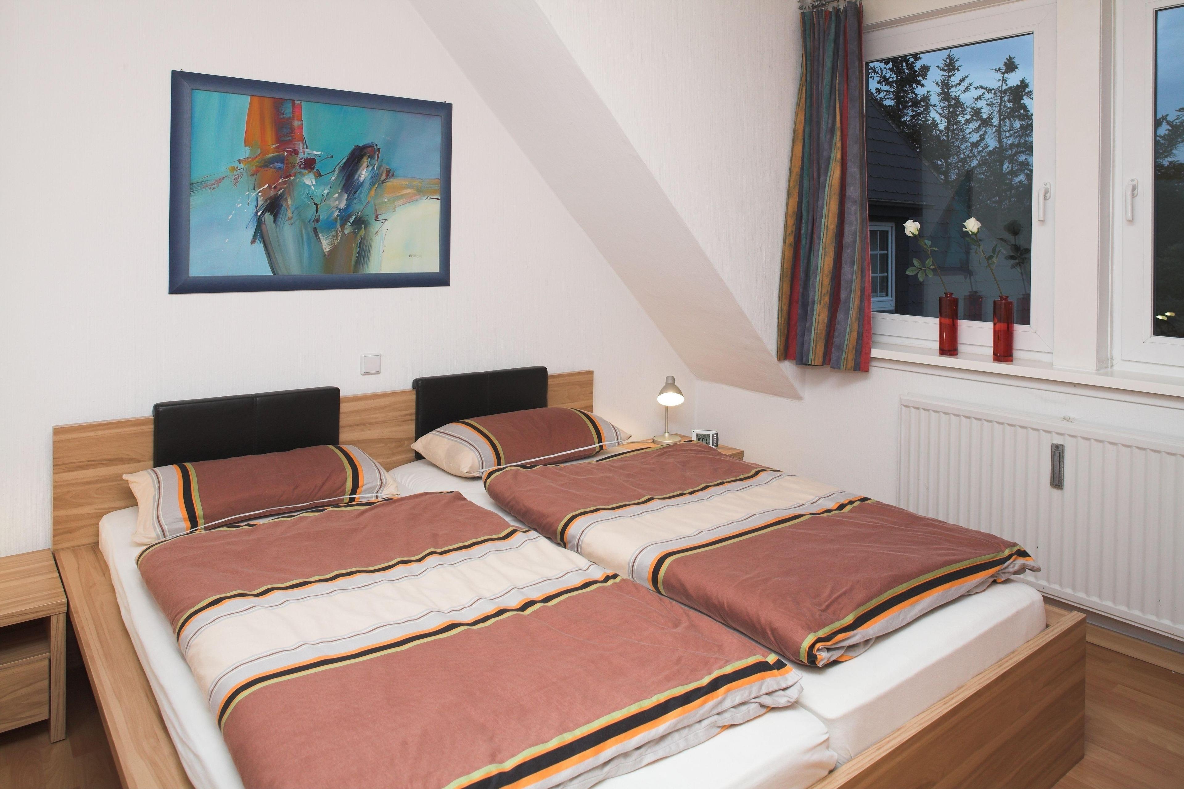 Die Wohnung verfügt über 2 getrennte Schlafzimmer (Doppelbett 180 x 200, zwei Einzelbetten 100 x 200) .