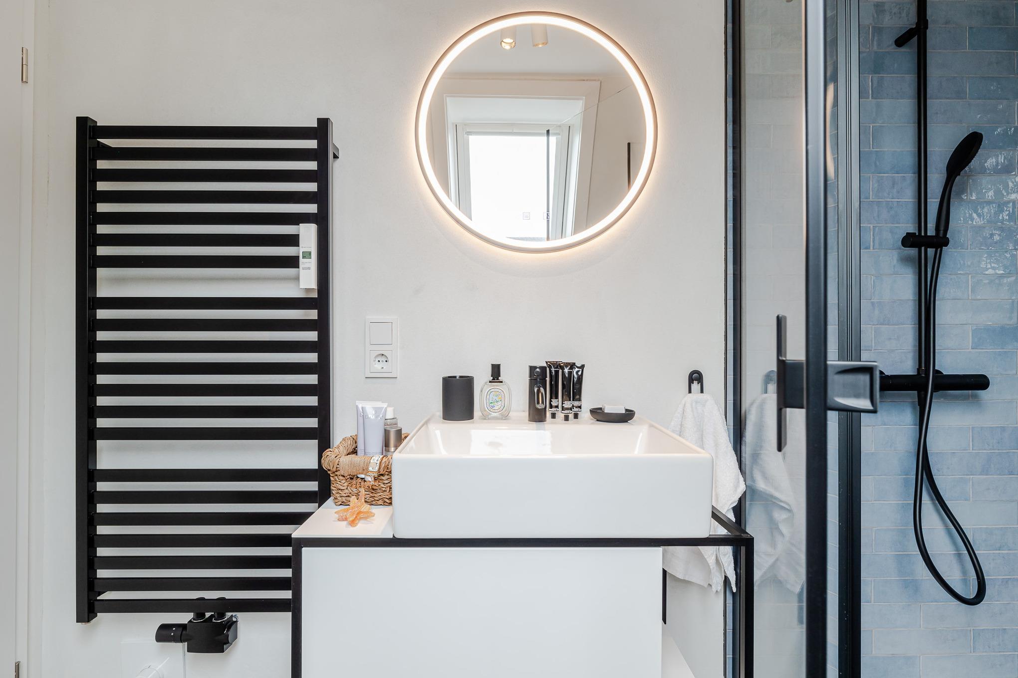 Ebenfalls auf dem Mitteldeck befindet sich das moderne Bad im stilvollen Insel-Look. Starten Sie entspannt in den Tag unter der großzügigen Regendusche. Fußbodenheizung und Handtuchwärmer sorgen auch an kühleren Tagen für zusätzlichen Komfort.
