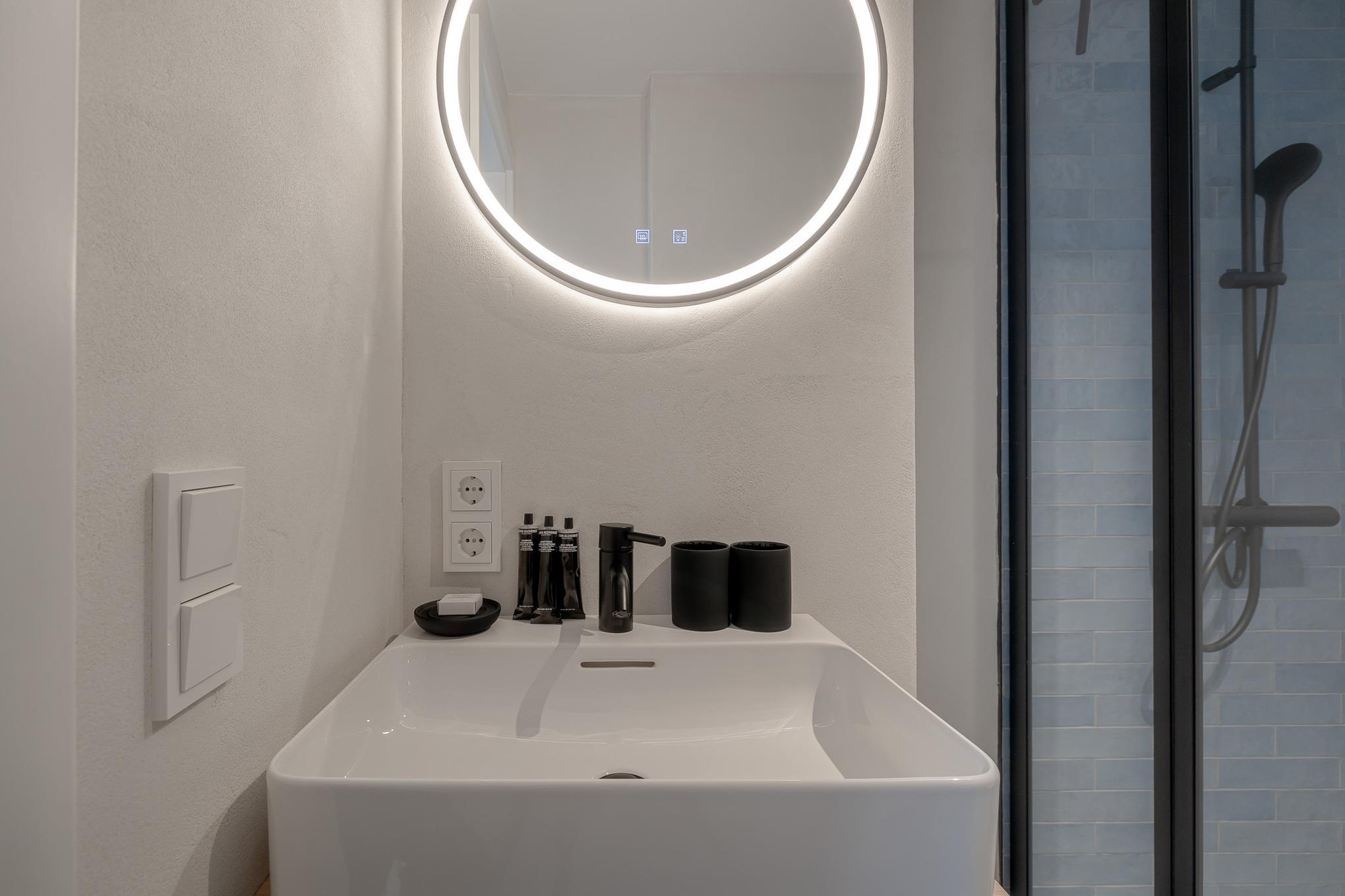 Ihr stilvolles Badezimmer ist Ihre kleine Wellnessoase mit großer Regendusche, Fußbodenheizung und Handtuchwärmer – perfekt für einen frischen Start in den Tag oder wohltuende Momente nach einem Strandspaziergang.