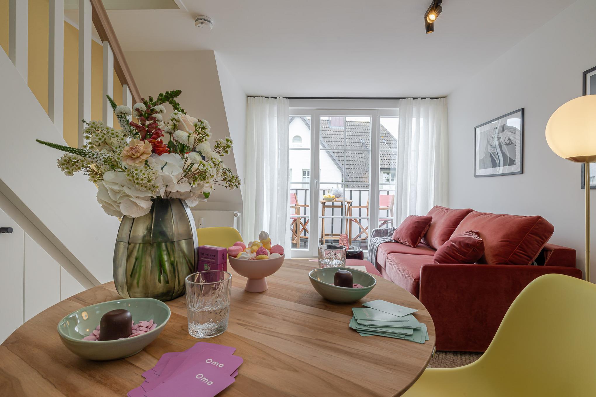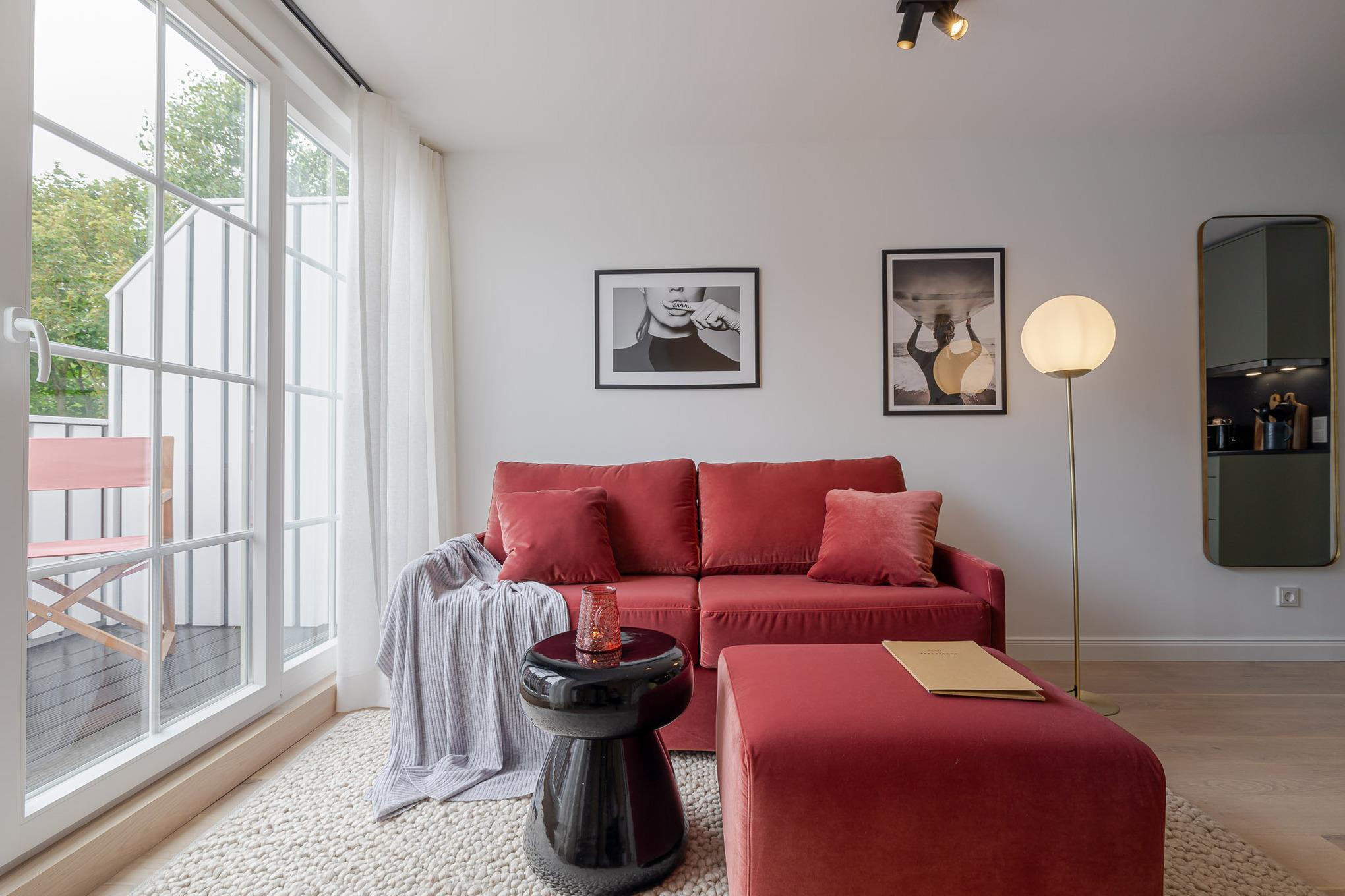 Die 36 m² große 2-Zimmer-Ferienwohnung liegt im Obergeschoss in Dock 6a und ist ideal für bis zu zwei Personen.