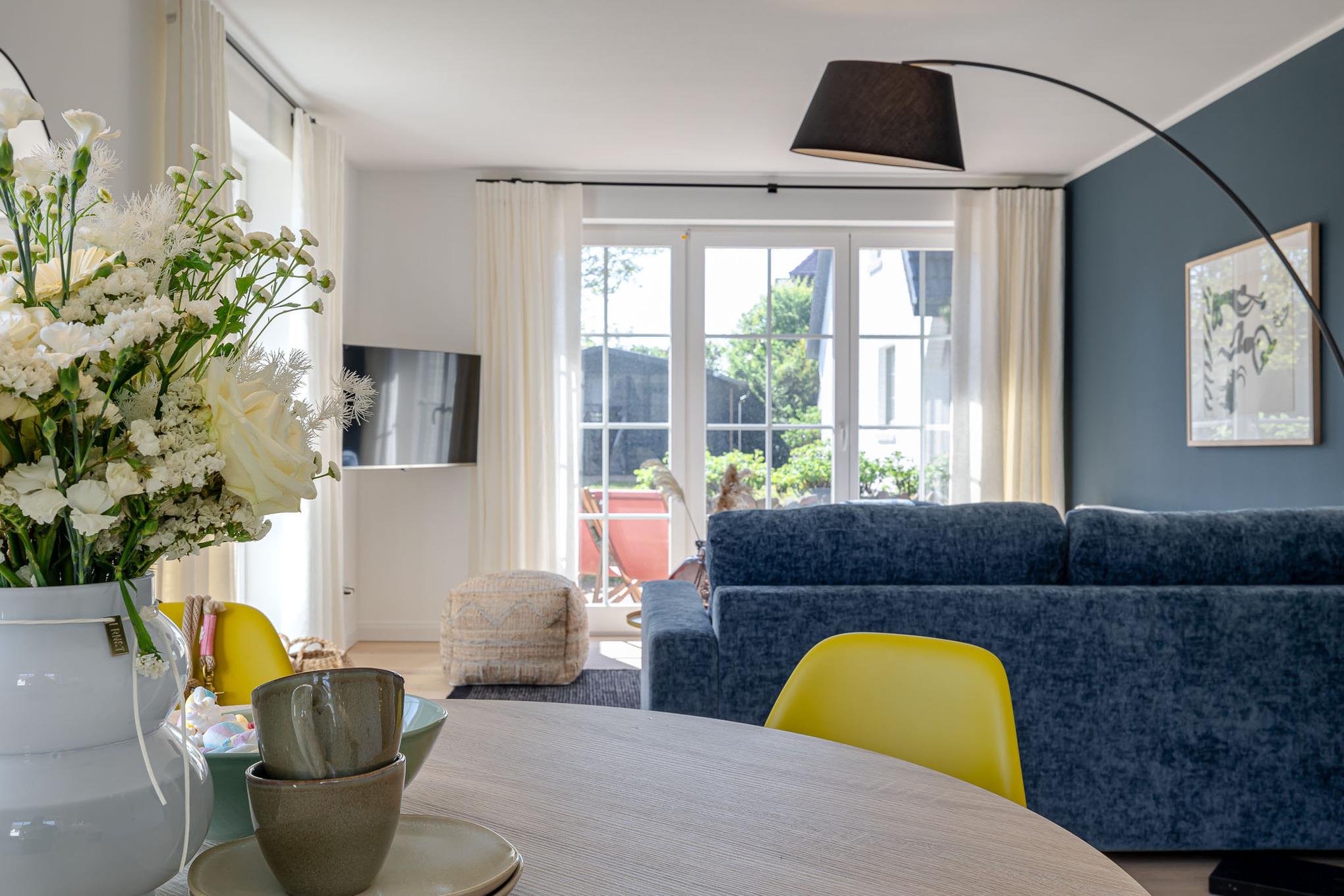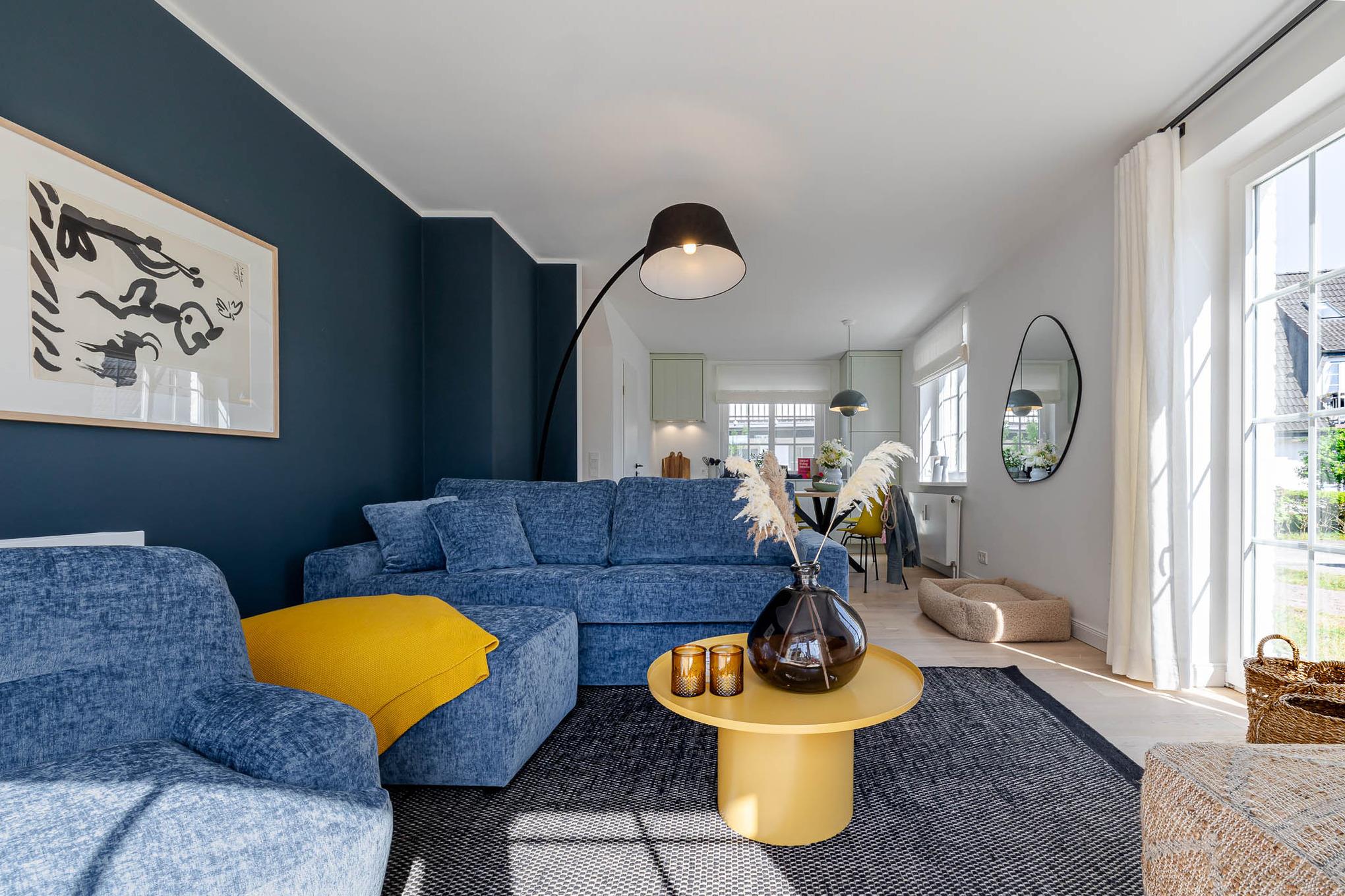 Der großzügige Wohn- und Essbereich bietet ein vollwertiges Schlafsofa als zusätzliche Schlafgelegenheit. Die voll ausgestattete Küche mit hochwertigen Markengeräten (u. a. Siemens) verfügt über alles, was Sie für die Zubereitung Ihrer Mahlzeiten benötigen.