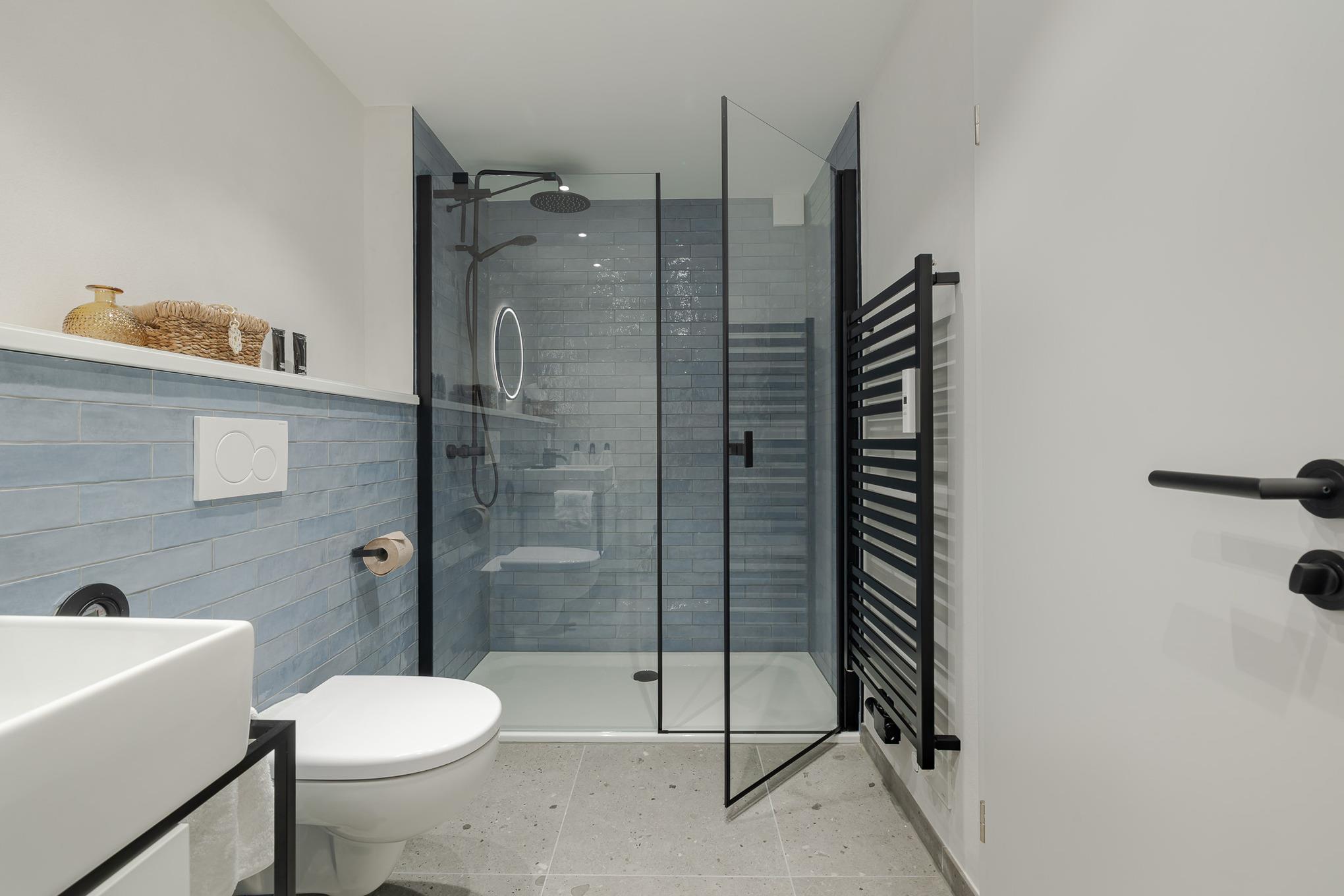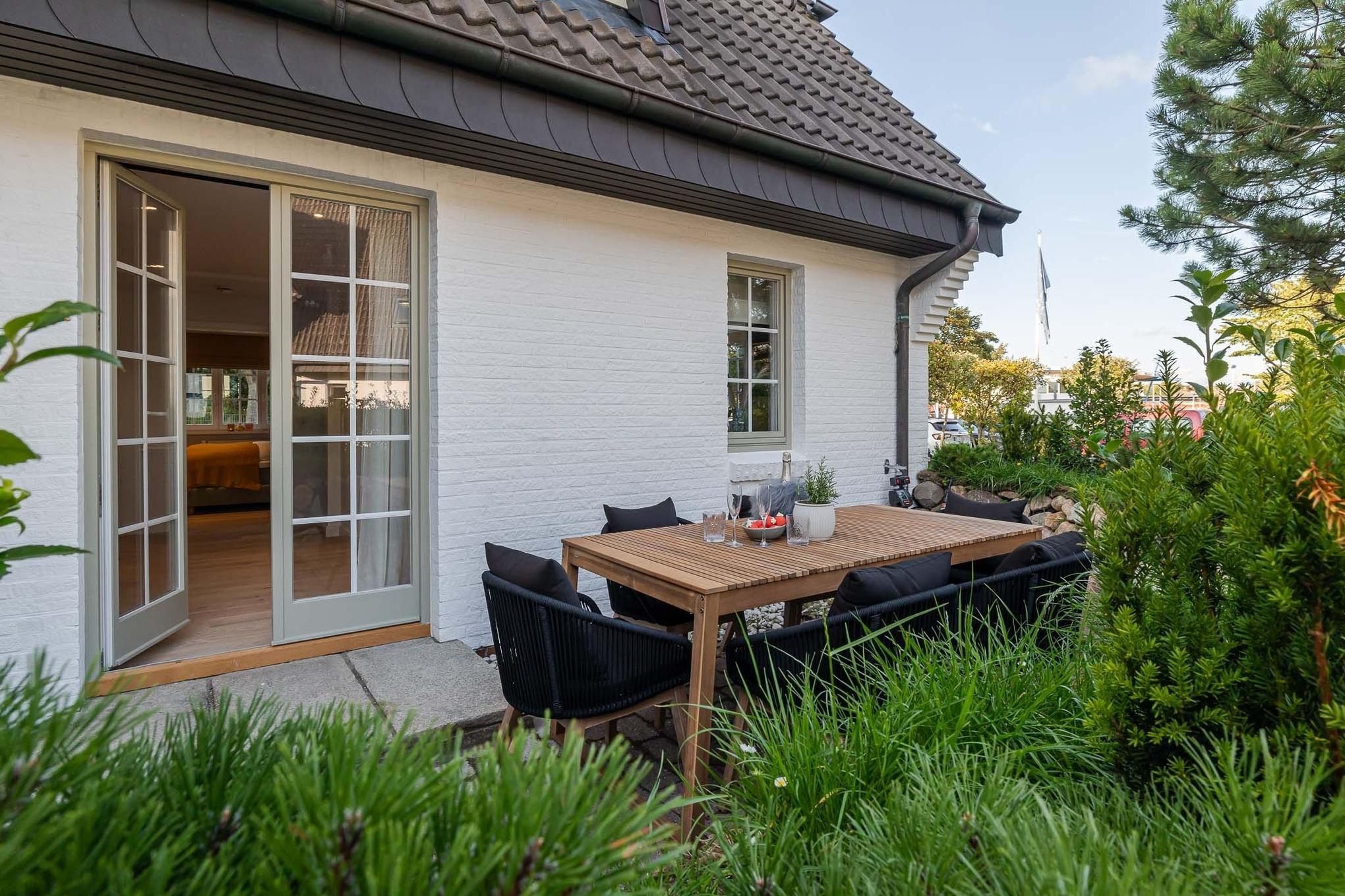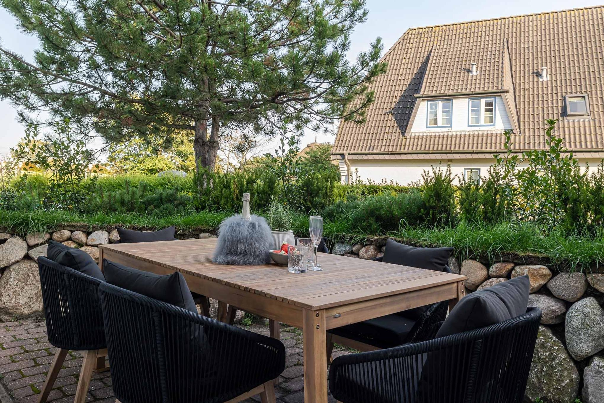Das Badezimmer überzeugt mit maritimem Farbkonzept, Regendusche und Fußbodenheizung – Ihre private kleine Wellness-Oase, auch an kühleren Tagen. Zur Wohnung gehört eine eigene Terrasse mit modernen Loungemöbeln (Mai–Oktober). Ob Frühstück in der Sonne oder ein Glas Wein am Abend – hier lässt es sich wunderbar entspannen, je nach Wind sogar mit leisem Meeresrauschen.