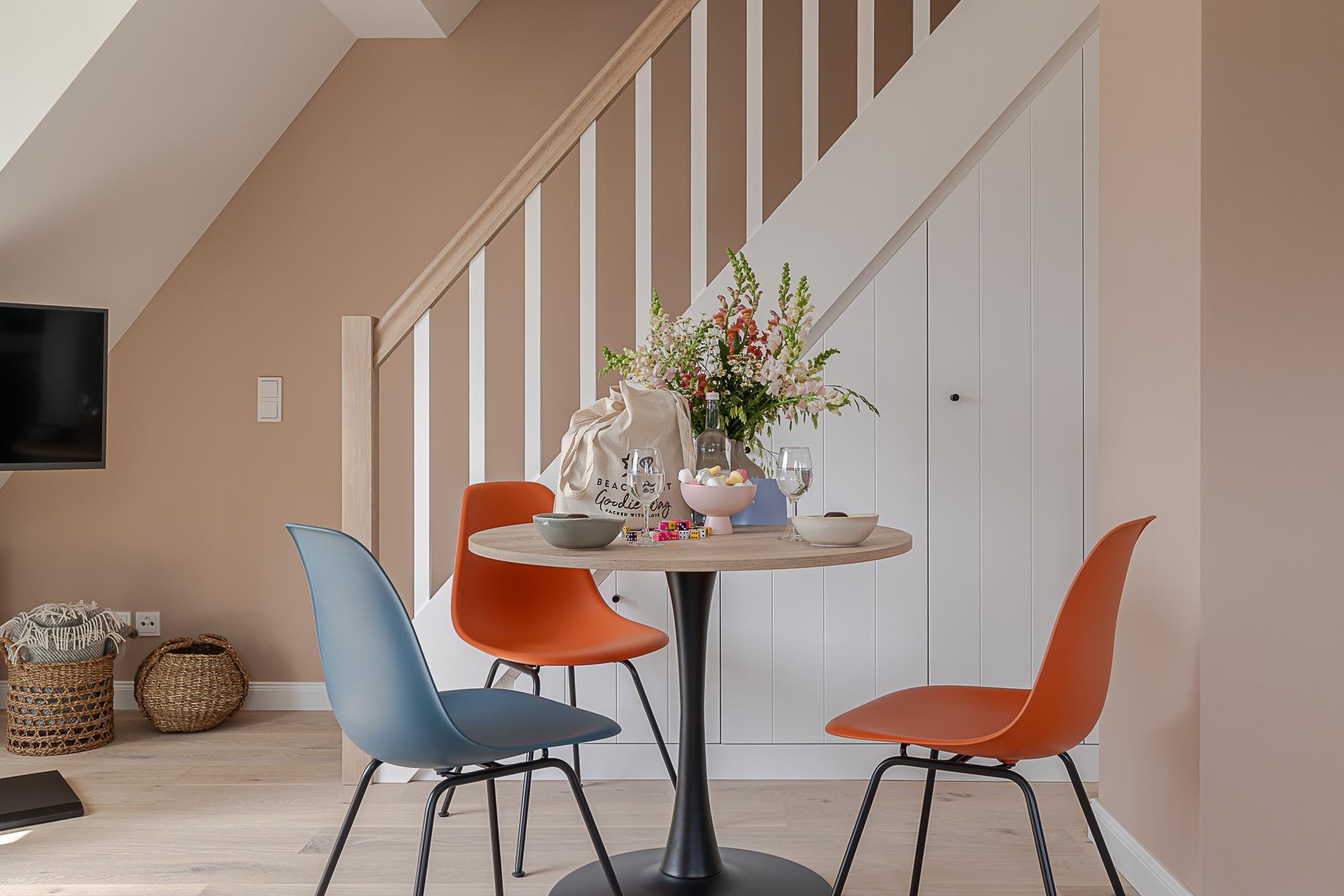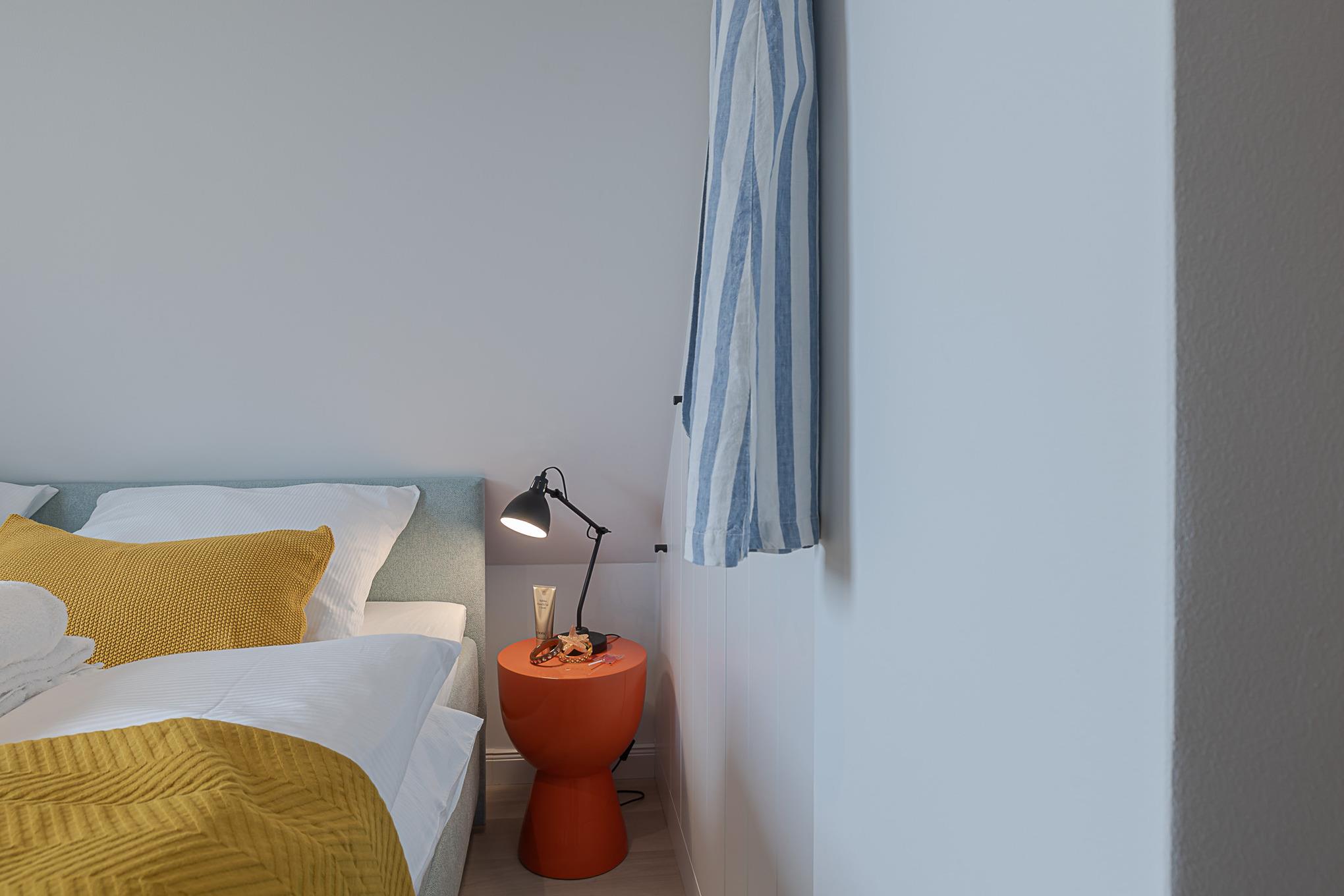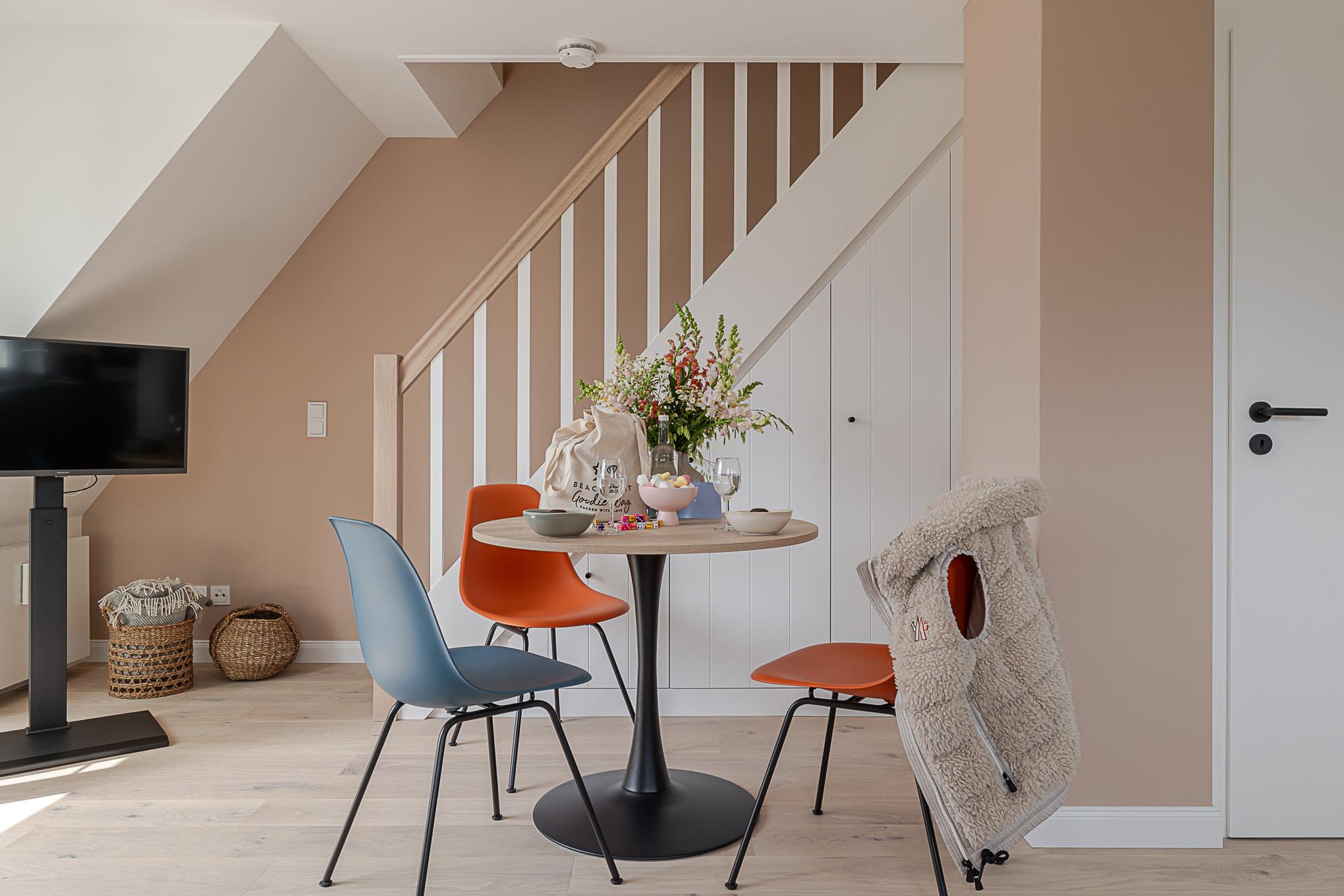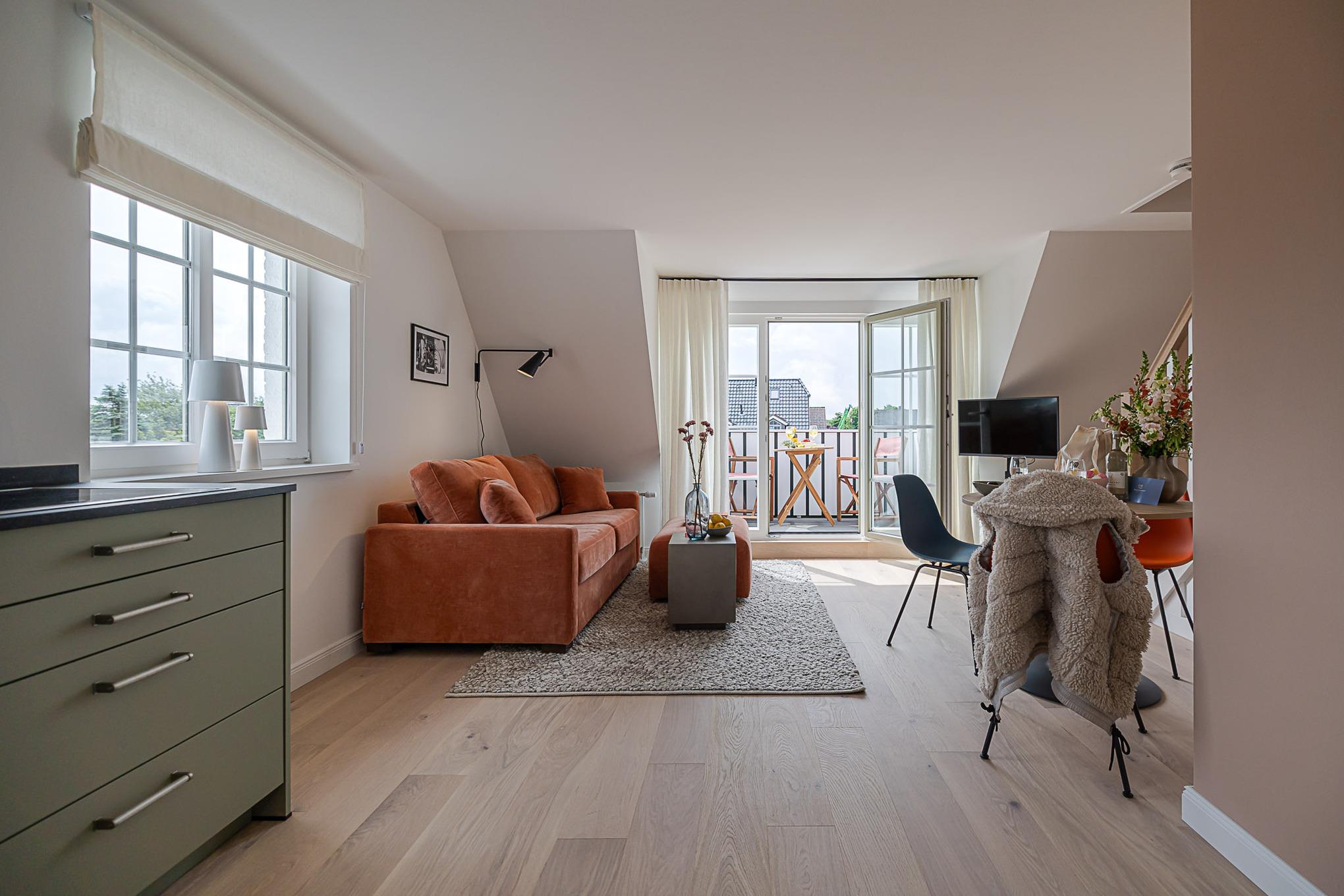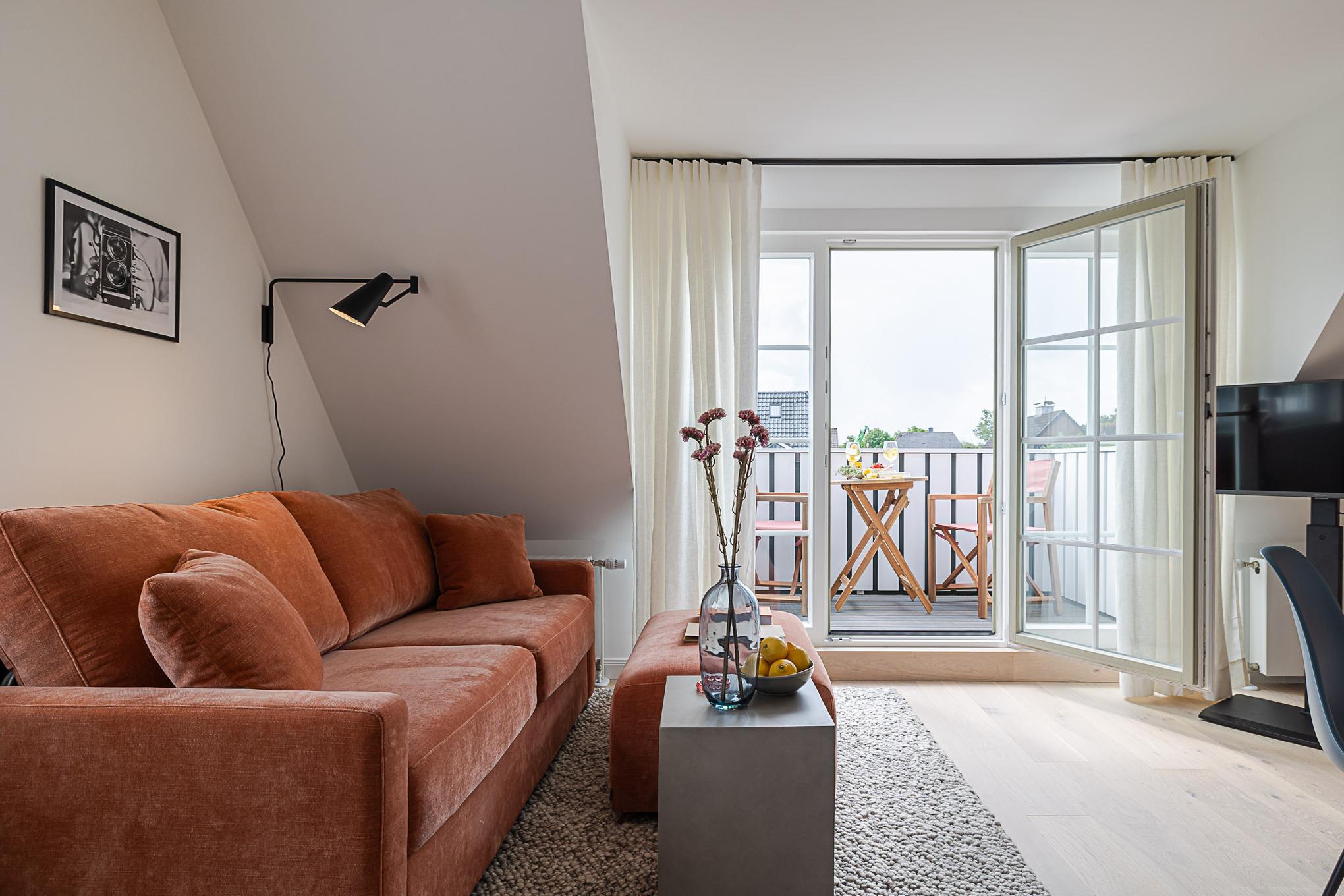 Mitten in Westerland, nur wenige Schritte vom Strand und dem lebendigen Zentrum entfernt, erwartet Sie unsere frisch renovierte Kajüte #28 im neuen CPTN Nicolai Resort. Die stilvolle Zwei Zimmer Wohnung liegt im Obergeschoss von Dock 6d und bietet auf 49 Quadratmetern den perfekten Rahmen für entspannte Urlaubstage auf Sylt. Bis zu drei Personen finden hier ein hochwertiges Zuhause auf Zeit. Schon beim Eintreten empfängt Sie ein heller, freundlicher Wohn und Essbereich mit warmem Eichenparkett und einem Interieur, das typisch für Sylt Ruhe und Klarheit ausstrahlt. Das komfortable Schlafsofa im Wohnbereich lässt sich bei Bedarf in eine zusätzliche Schlafmöglichkeit verwandeln. Die moderne Küche ist funktional und hochwertig ausgestattet, unter anderem mit Geräten von Siemens, und bietet alles, was Sie für ein entspanntes Frühstück oder ein gemeinsames Abendessen benötigen. Das Bad ist in sanften Farben von Meer und Sand gehalten und wird mit Regendusche, Fußbodenheizung und Handtuchwärmer schnell zu Ihrer kleinen Wellnessoase. Über eine Treppe gelangen Sie auf das Oberdeck, wo ein komfortables Schramm Boxspringbett für erholsame Nächte nach langen Tagen an der frischen Nordseeluft sorgt. Ein weiteres Highlight ist der Balkon, der von Mai bis Oktober mit bequemen Möbeln zum Durchatmen, Sonnen und Verweilen einlädt.Als Gast nutzen Sie den 200 Quadratmeter großen Pool und Saunabereich in Dock 6d kostenfrei. Ein 12 mal 4 Meter Pool, Sauna, Ruhebereich sowie Fitnessgeräte stehen Ihnen zur Verfügung. Hunde sind herzlich willkommen. Ein kostenfreier Parkplatz gehört ebenfalls zu Ihrer Kajüte. Ankommen, abschalten und Sylt genießen. Genau dafür ist diese Kajüte gemacht.