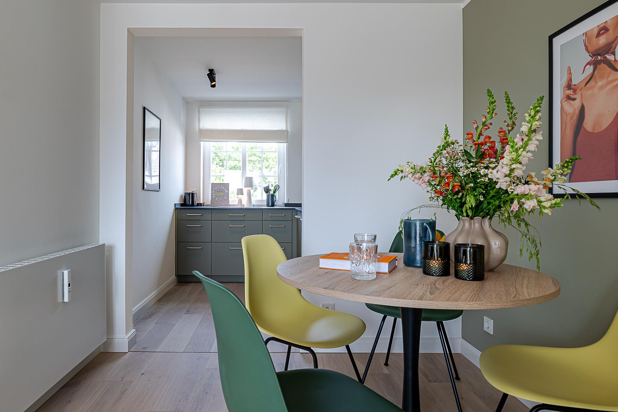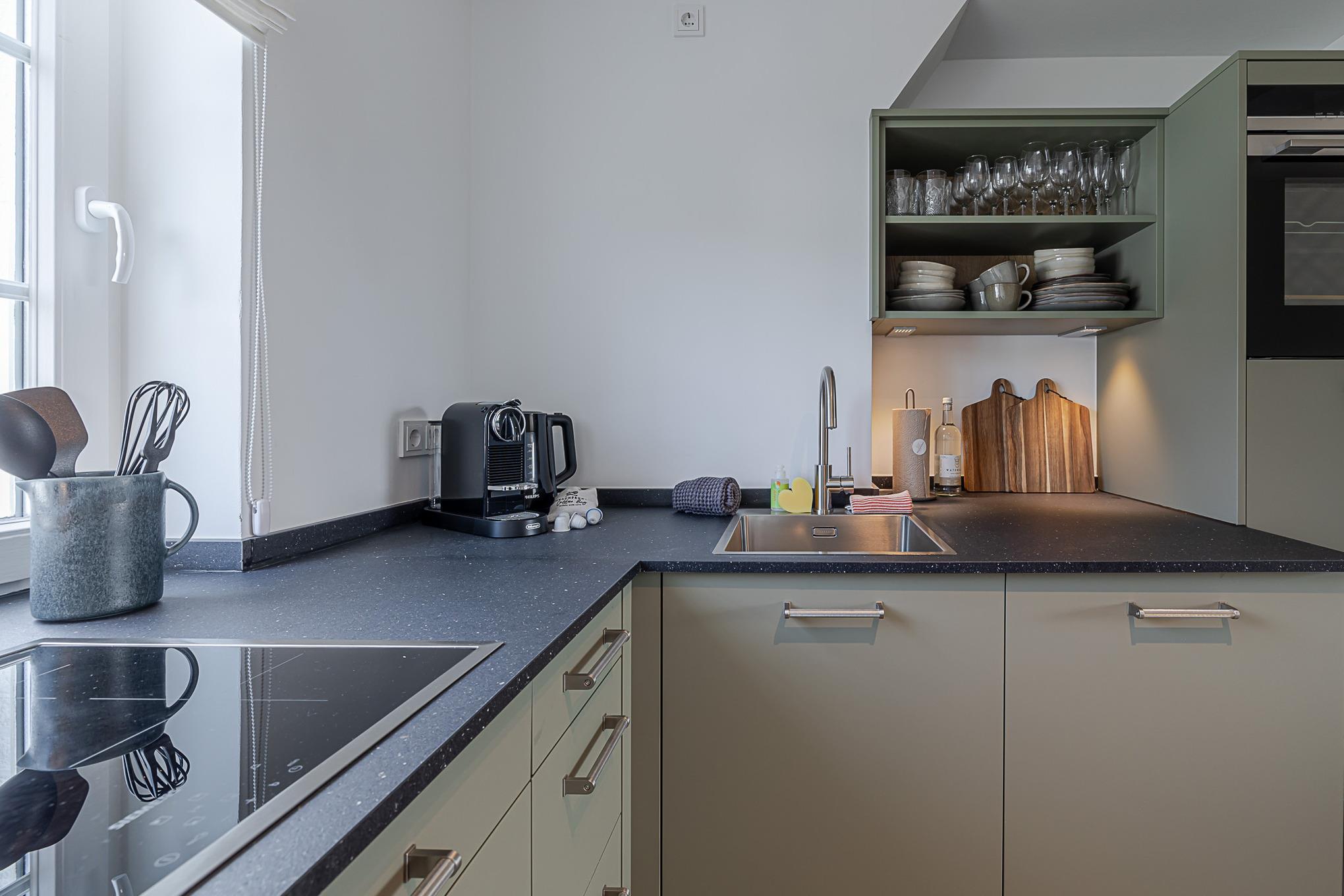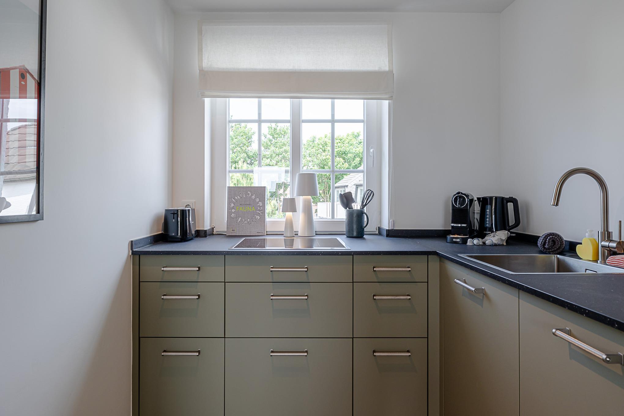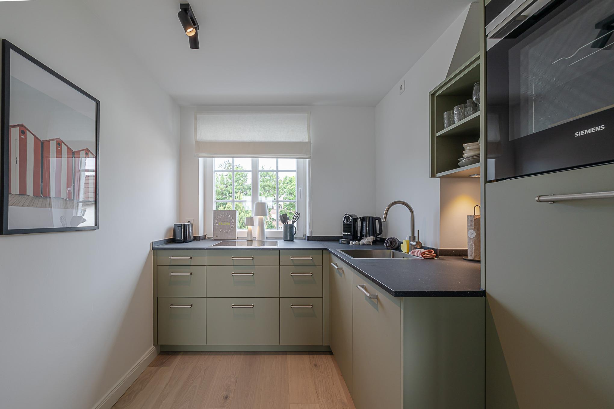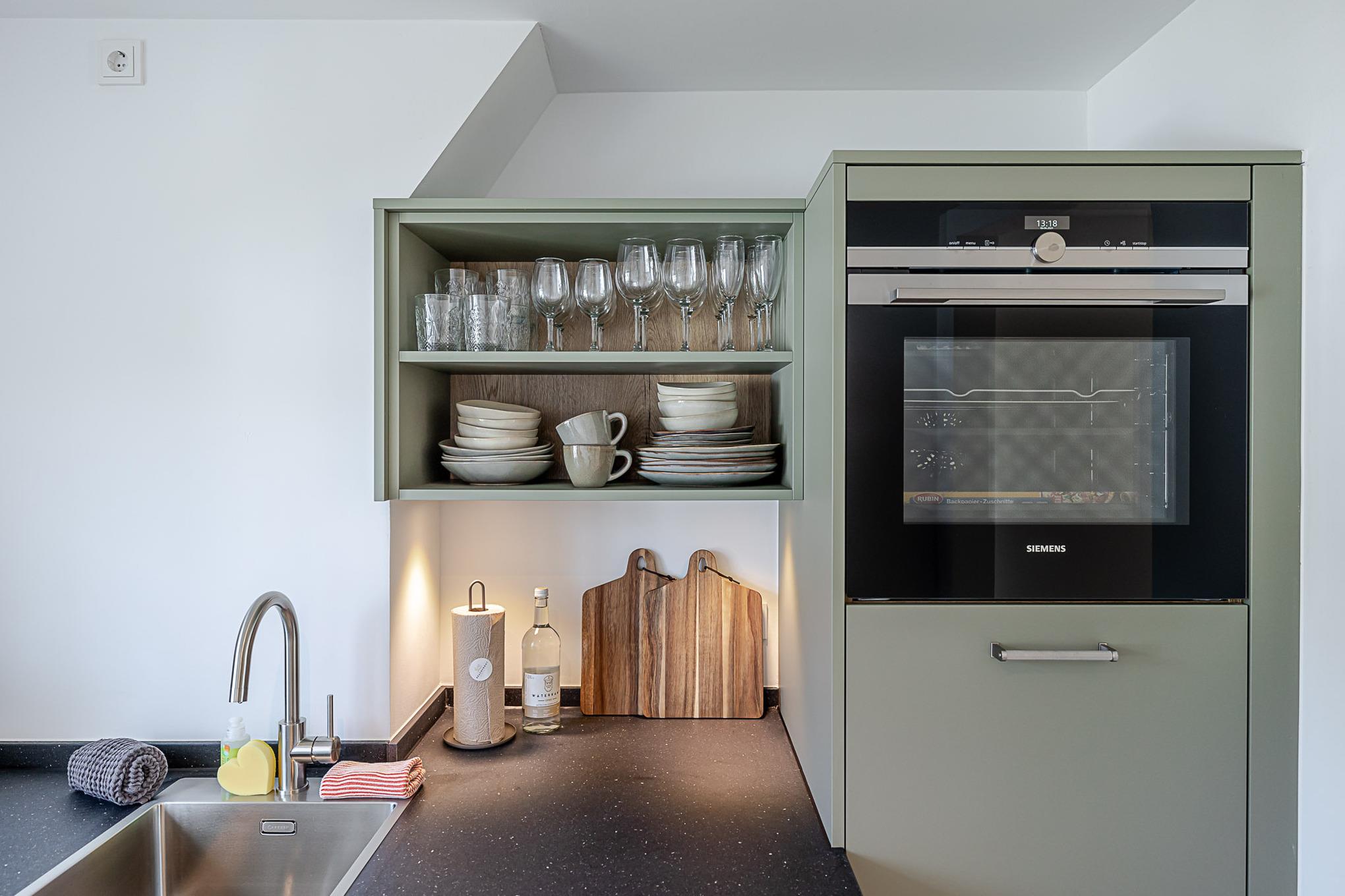 Die großzügige Küche ist vollständig ausgestattet und verfügt über hochwertige Markengeräte (u. a. Siemens) sowie alles, was Sie für die Zubereitung Ihrer Mahlzeiten benötigen – vom Frühstück bis zum gemütlichen Abendessen.