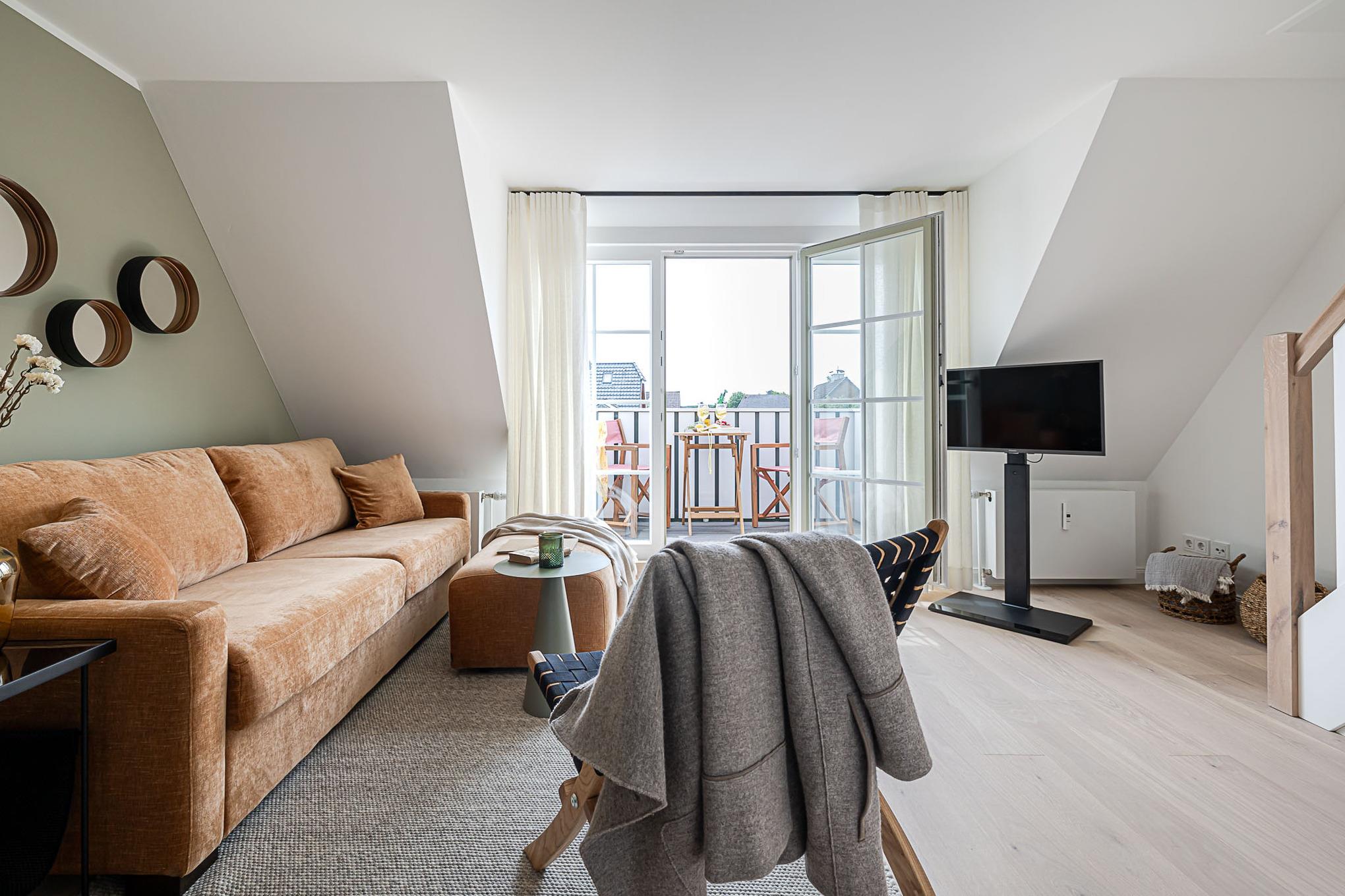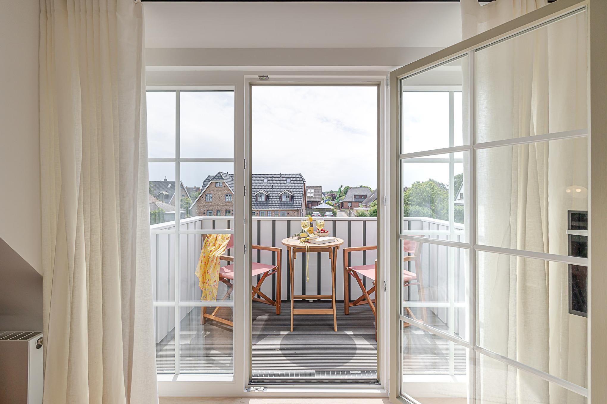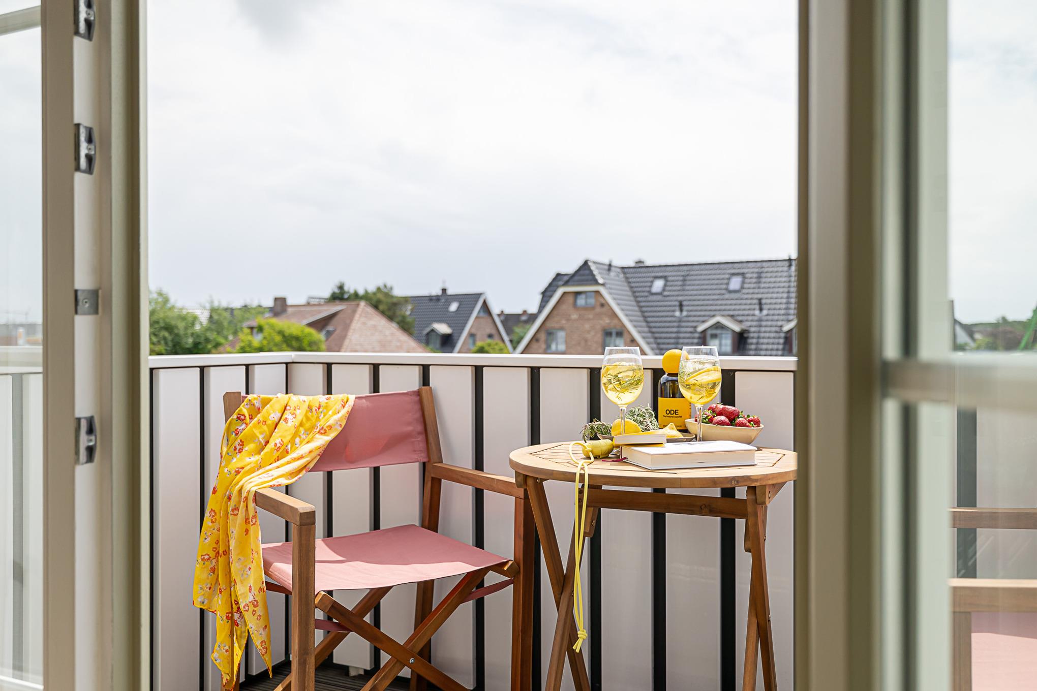 Ein weiteres Highlight ist der Balkon, auf dem von Mai bis Oktober bequeme Möbel bereitstehen – perfekt, um die frische Nordseeluft zu genießen oder den Tag entspannt ausklingen zu lassen.