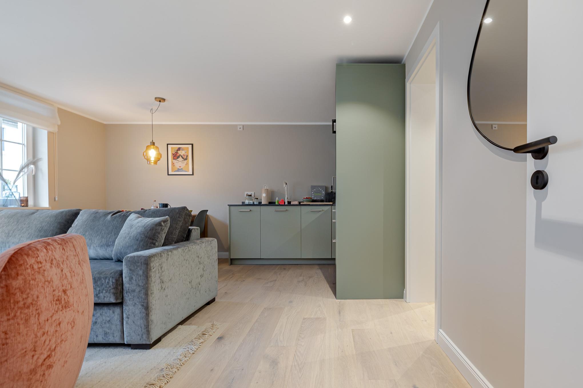 In unmittelbarer Nähe zum Weststrand und zum Zentrum von Westerland erwartet Sie unsere gemütliche Kajüte #3 im neuen CPTN Nicolai Areal. Die stilvoll designte 66 m² große 3-Zimmer-Ferienwohnung befindet sich ebenerdig im Dock 6a und bietet beste Voraussetzungen für eine erholsame Auszeit auf Sylt. Die Kajüte #3 bietet Platz für bis zu 6 Personen und überzeugt mit hohen, lichtdurchfluteten Räumen im klassisch-edlen Sylter Look – ideal für Familien oder Freunde.