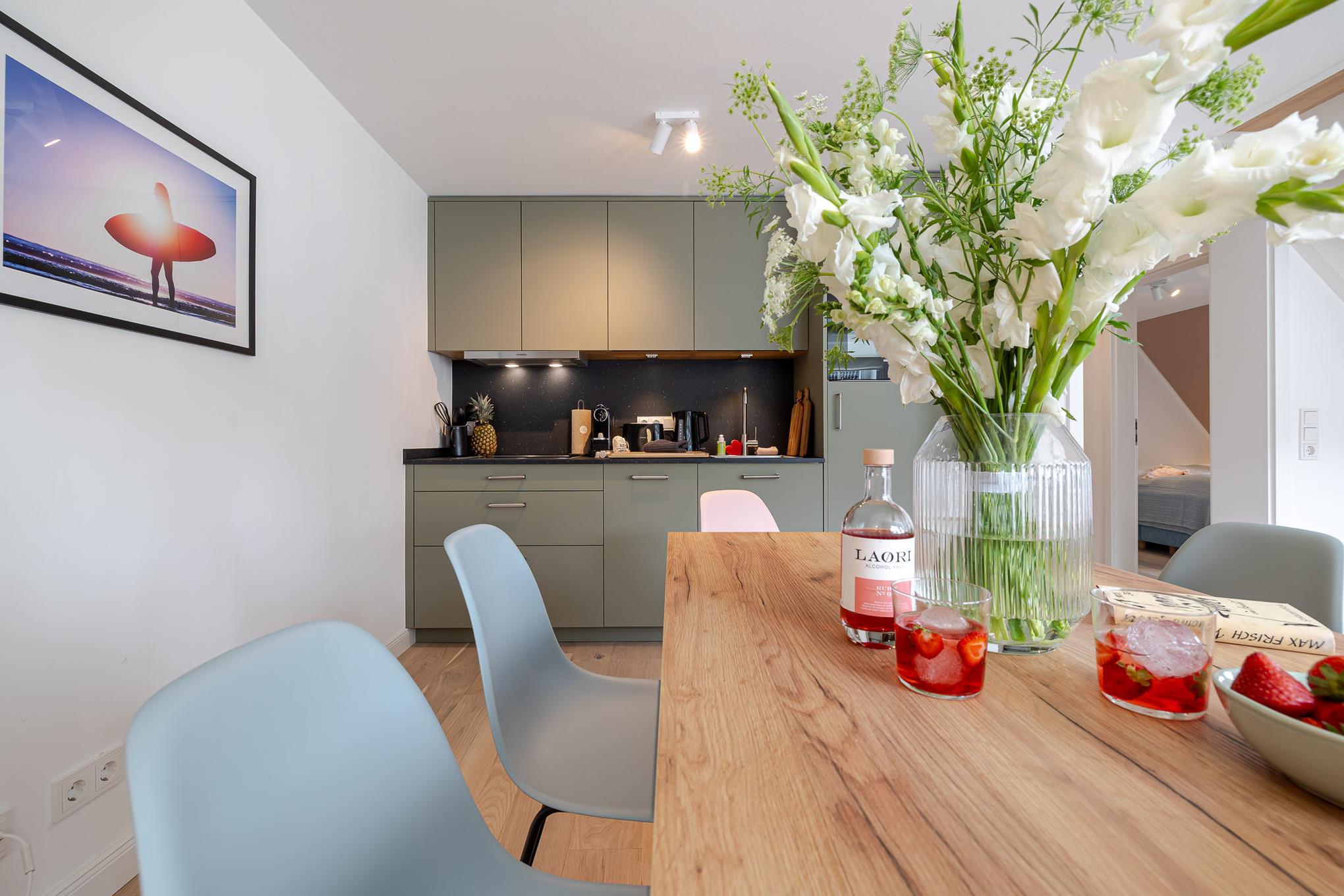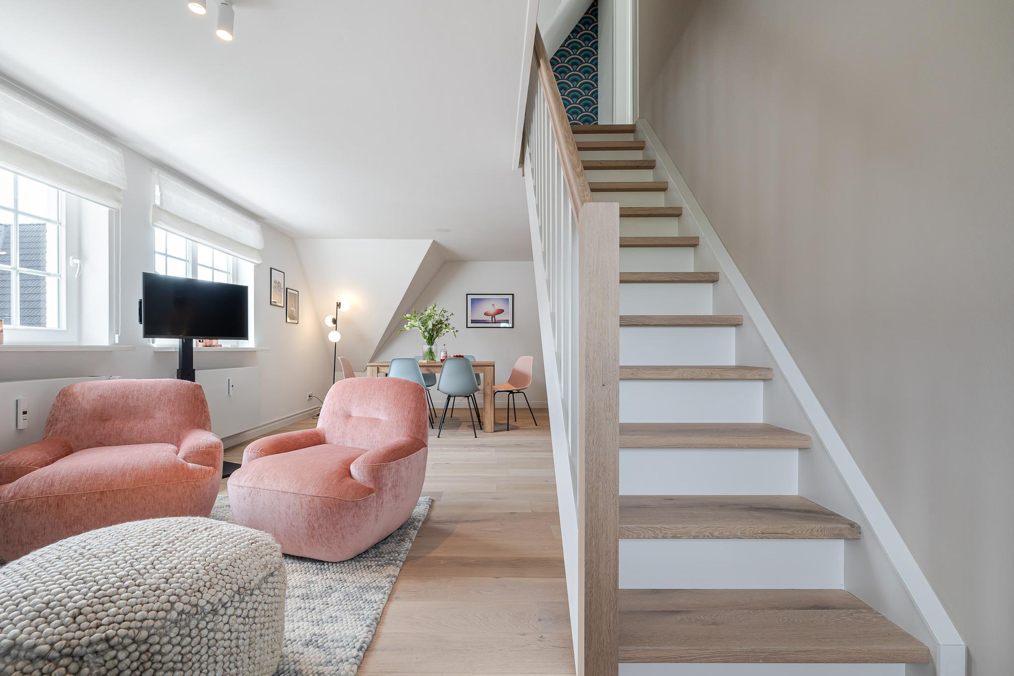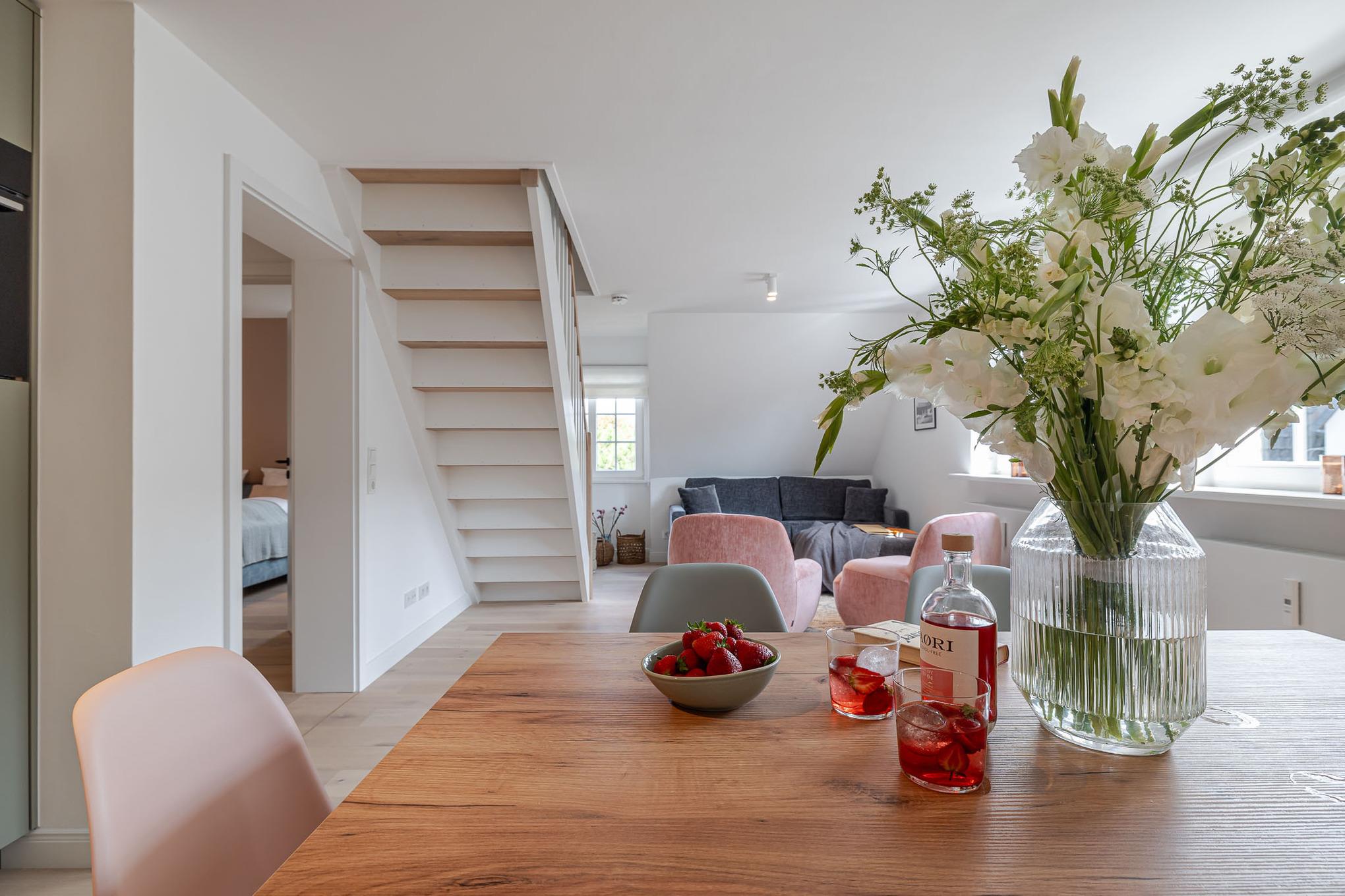 Und danach kehren Sie in unsere frisch renovierte Kajüte #9 im neuen CPTN Nicolai Resort ein. Mitten in Westerland erwartet Sie auf großzügigen 85 Quadratmetern ein hochwertiges Urlaubsdomizil mit vier liebevoll gestalteten Räumen. Die Wohnung bietet Platz für bis zu sechs Personen und empfängt Sie mit hohen lichtdurchfluteten Räumen, warmem Eichenparkett, einer durchdachten Raumaufteilung und einem Interieur, das Ruhe Eleganz und Inselgefühl perfekt verbindet.