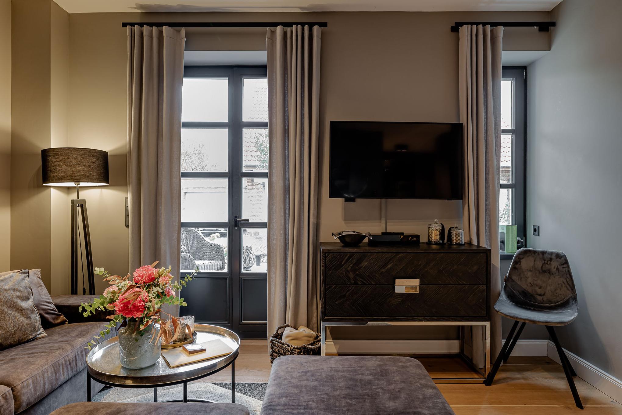 Schon beim Betreten spüren Sie die besondere Atmosphäre: hohe Decken und eine moderne, durchdacht abgestimmte Einrichtung schaffen ein echtes Zuhause-auf-Zeit. Der großzügige Wohn- und Essbereich ist der Mittelpunkt der Wohnung. Hier lädt ein bequemes Schlafsofa zu entspannten Stunden ein und bietet bei Bedarf eine zusätzliche Schlafmöglichkeit.