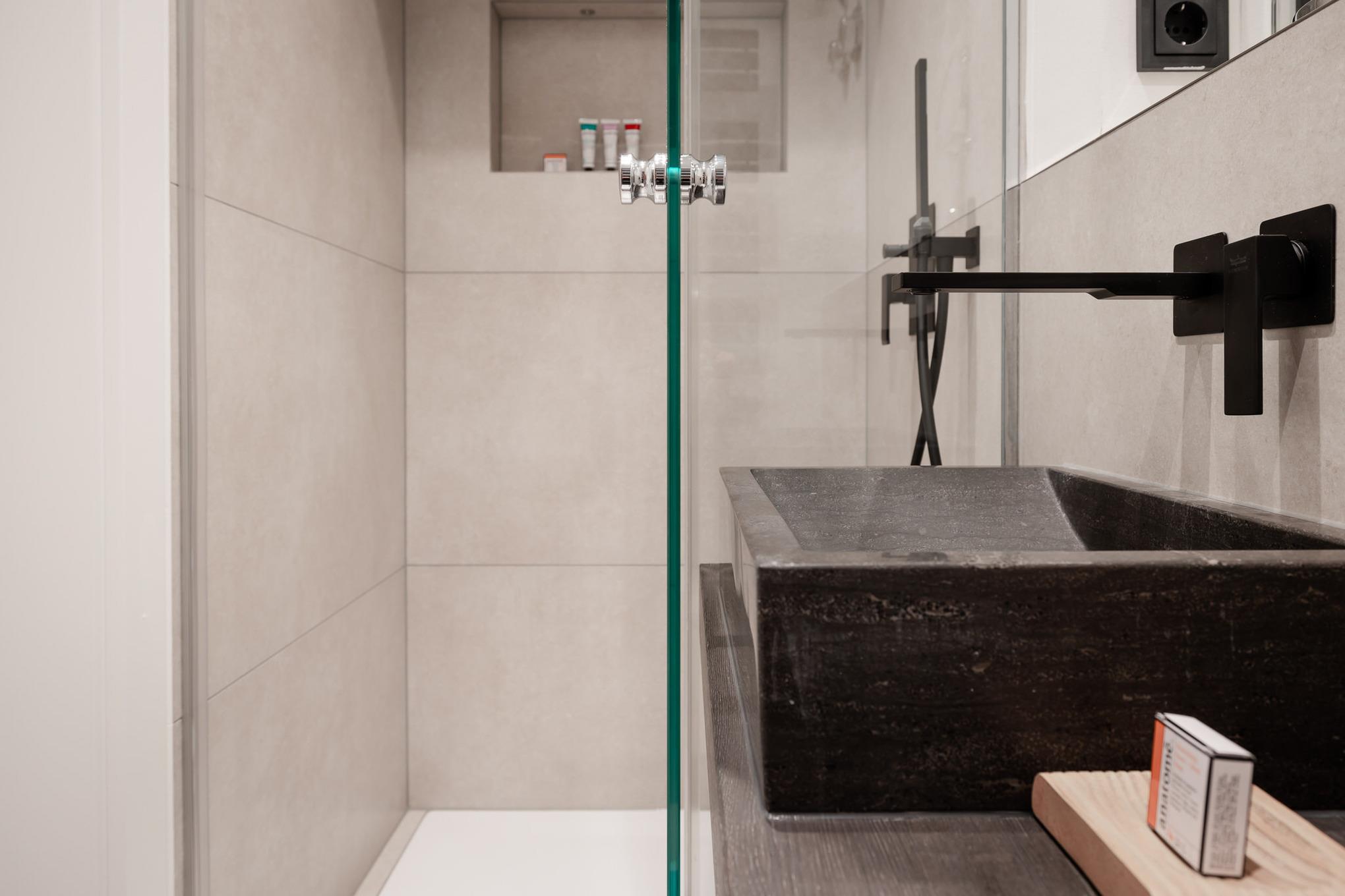Das Apartment überzeugt mit hohen Decken, lichtdurchfluteten Räumen und moderner Einrichtung. Beim Betreten gelangen Sie in den offenen Wohn- und Essbereich inklusive Schlafsofa. Im Schlafzimmer erwartet Sie ein exklusives COCO-MAT Boxspringbett für besten Schlafkomfort. Die Küche ist mit Gaggenau- und Miele-Geräten ausgestattet – so macht Kochen im Urlaub gleich doppelt Freude. Bei Ankunft erhalten Sie ein Starterpaket für Bad und Küche.
