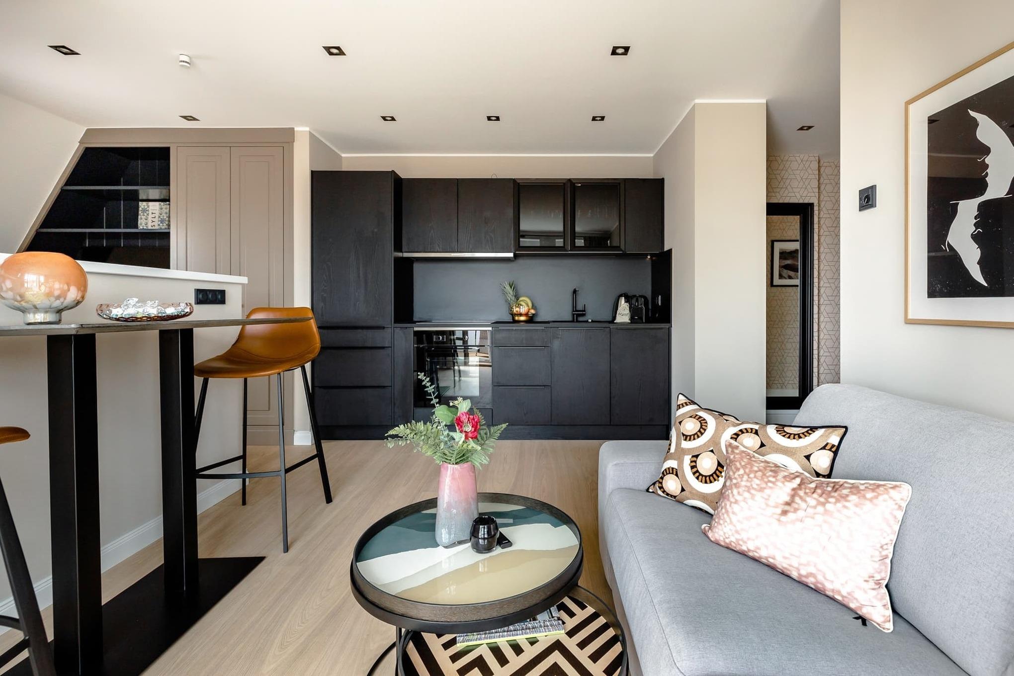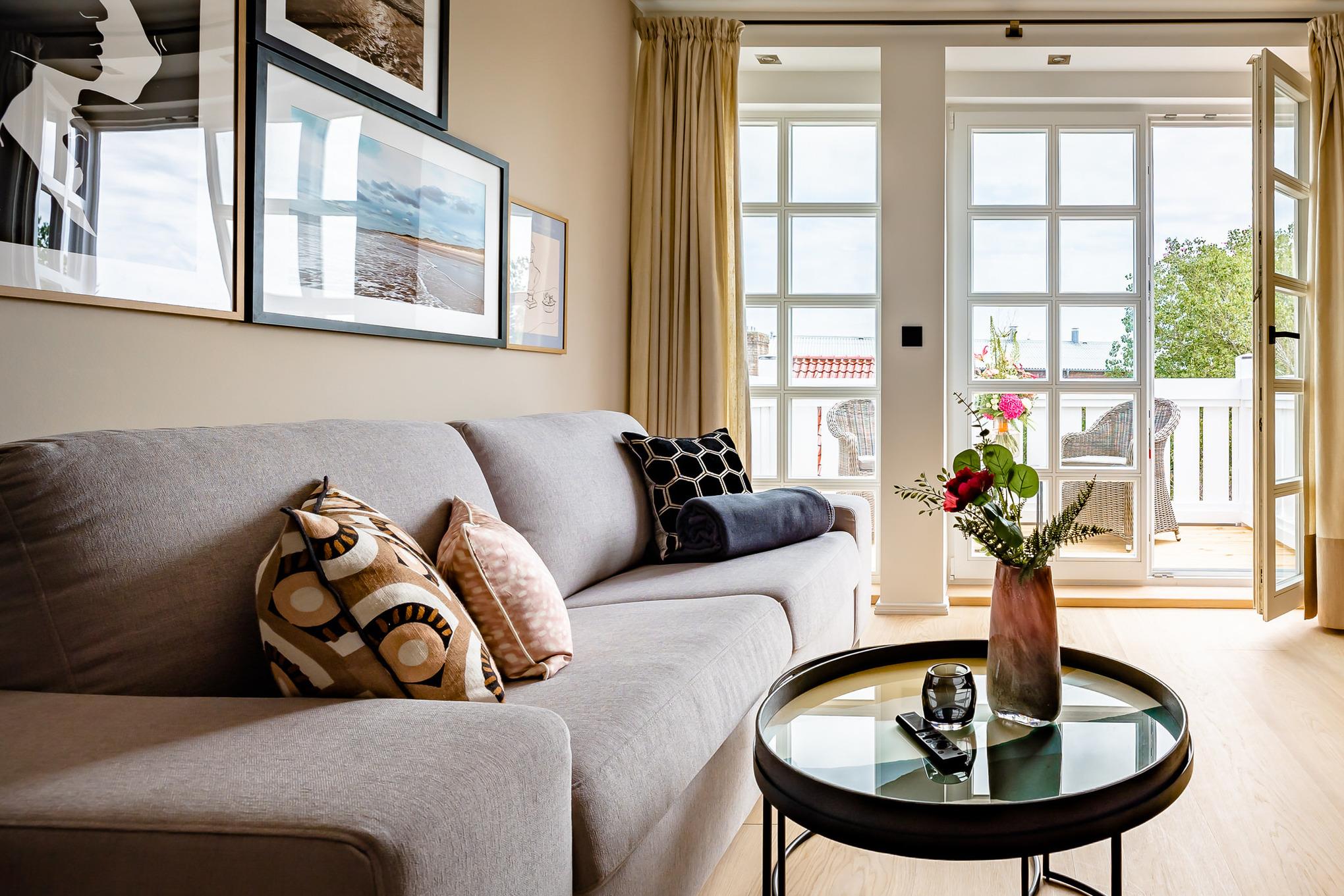 Living Lorens No. 11 ist dafür gemacht. Das stilvolle 1 Zimmer Apartment liegt im Dachgeschoss des historischen Backsteinhauses Living Lorens No. 19 mitten in Westerland. Auf 38 Quadratmetern erwartet Sie ein renoviertes Zuhause auf Zeit für bis zu zwei Personen, mit hohen Decken, viel Tageslicht und einer modernen Einrichtung, die Klarheit und Gemütlichkeit verbindet.