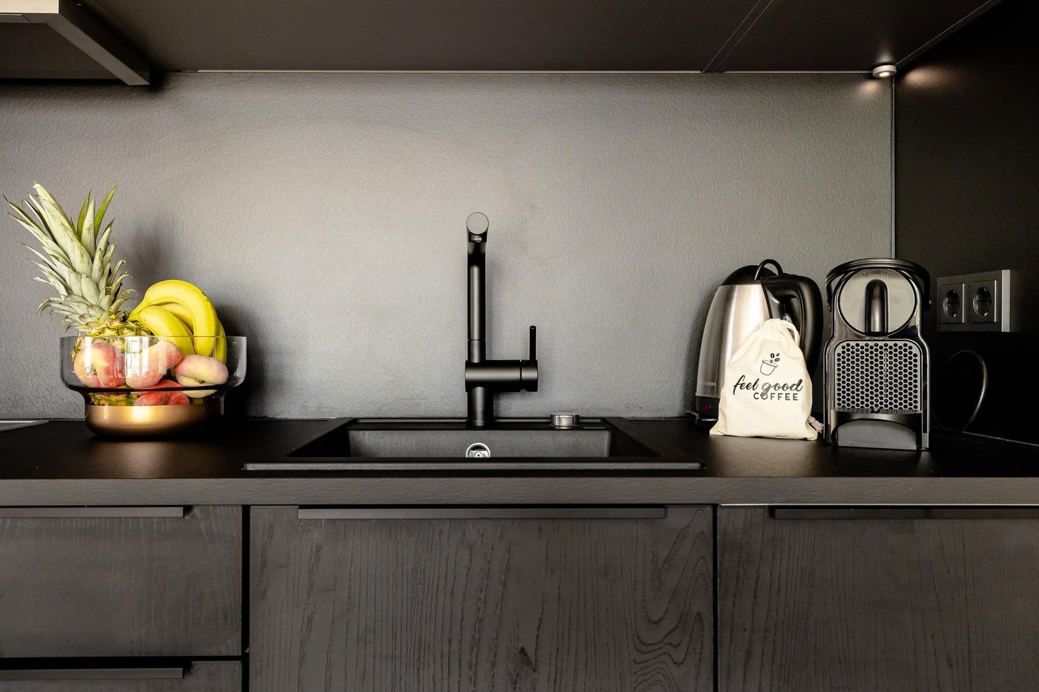 Die edle Küche ist mit Geräten von Miele ausgestattet und bietet alles, was Sie für ein entspanntes Frühstück oder ein leichtes Abendessen brauchen. Das moderne Badezimmer verwöhnt mit einer großzügigen Regendusche. Fußbodenheizung im gesamten Apartment sorgt auch im Winter für ein wohliges Wohngefühl.