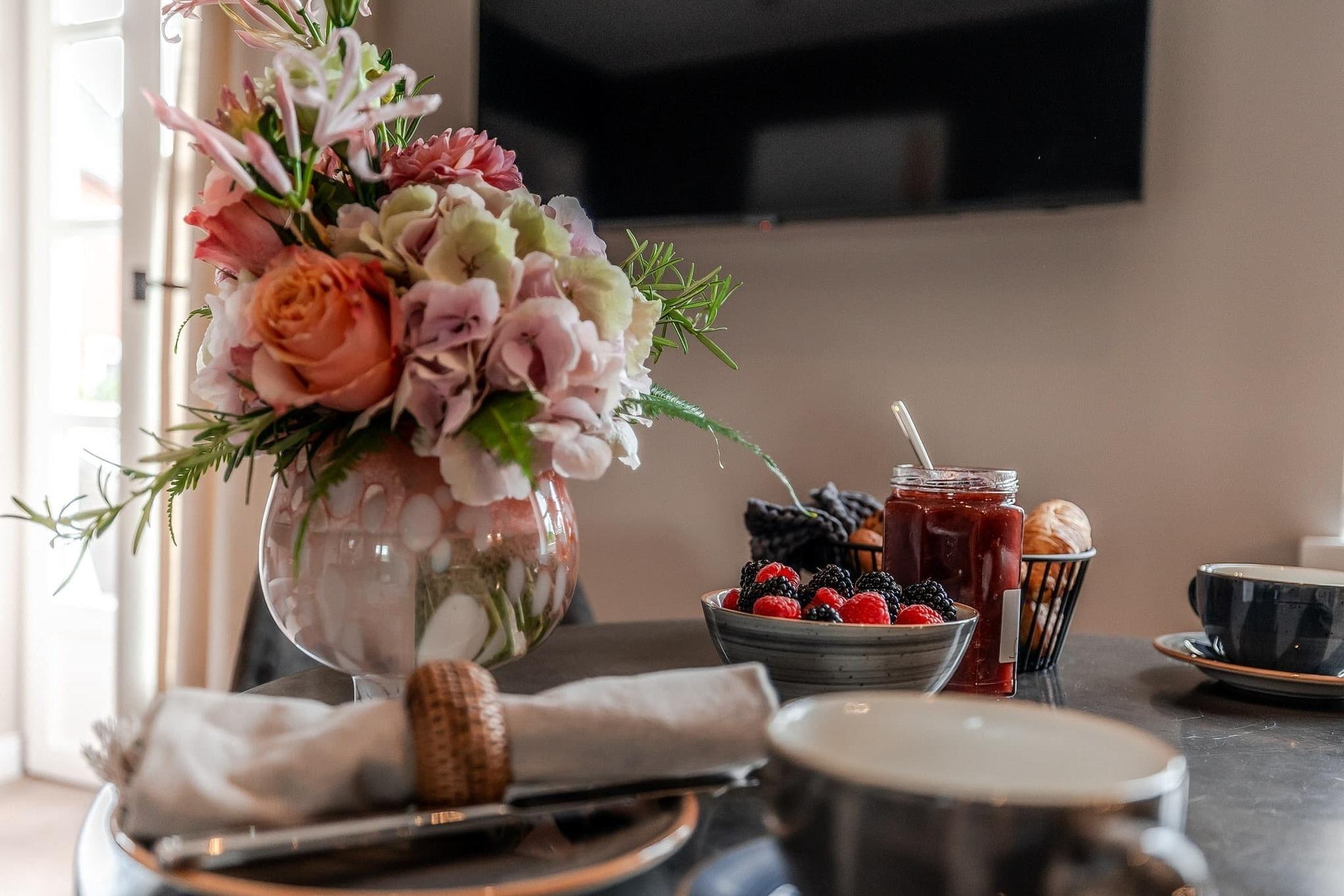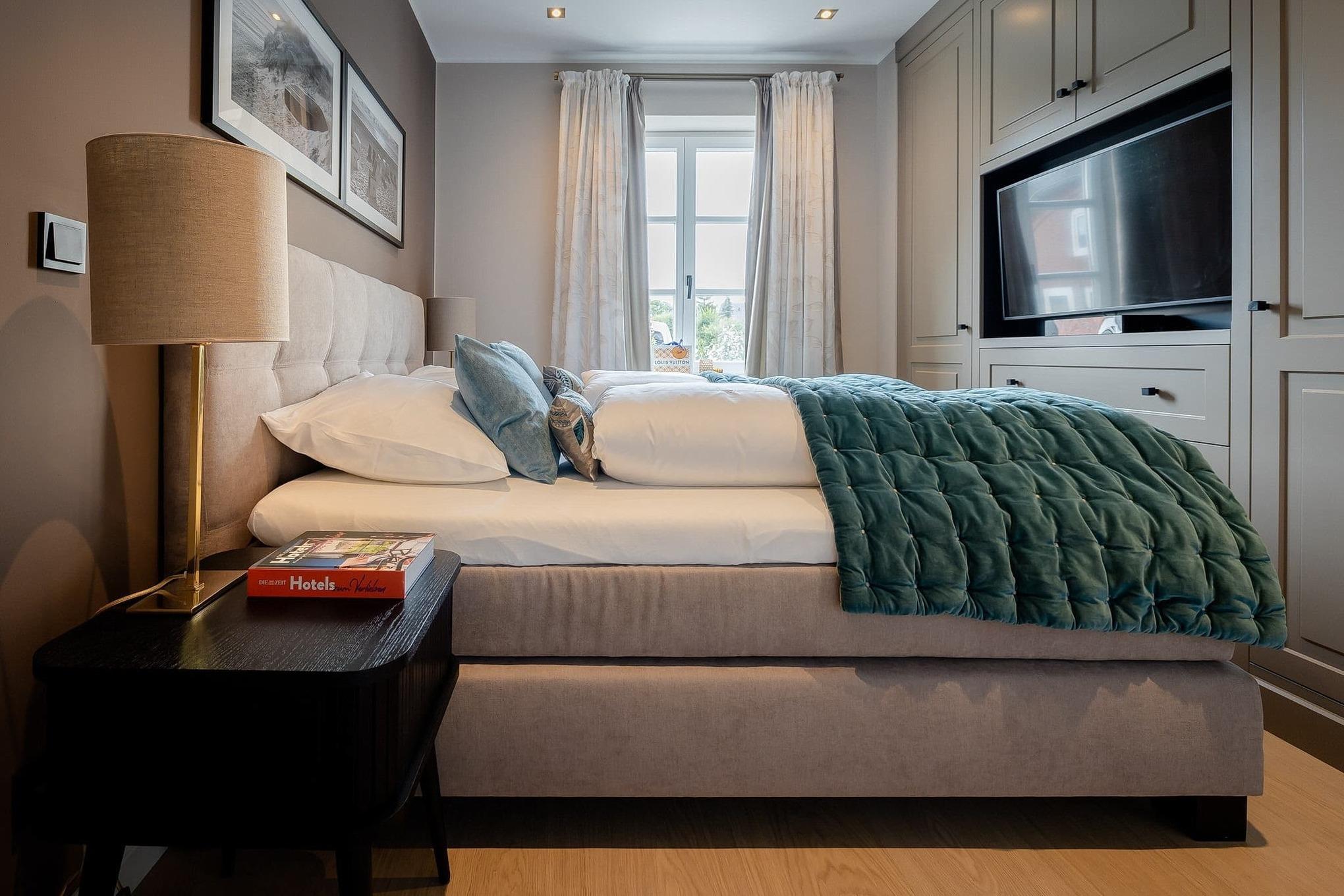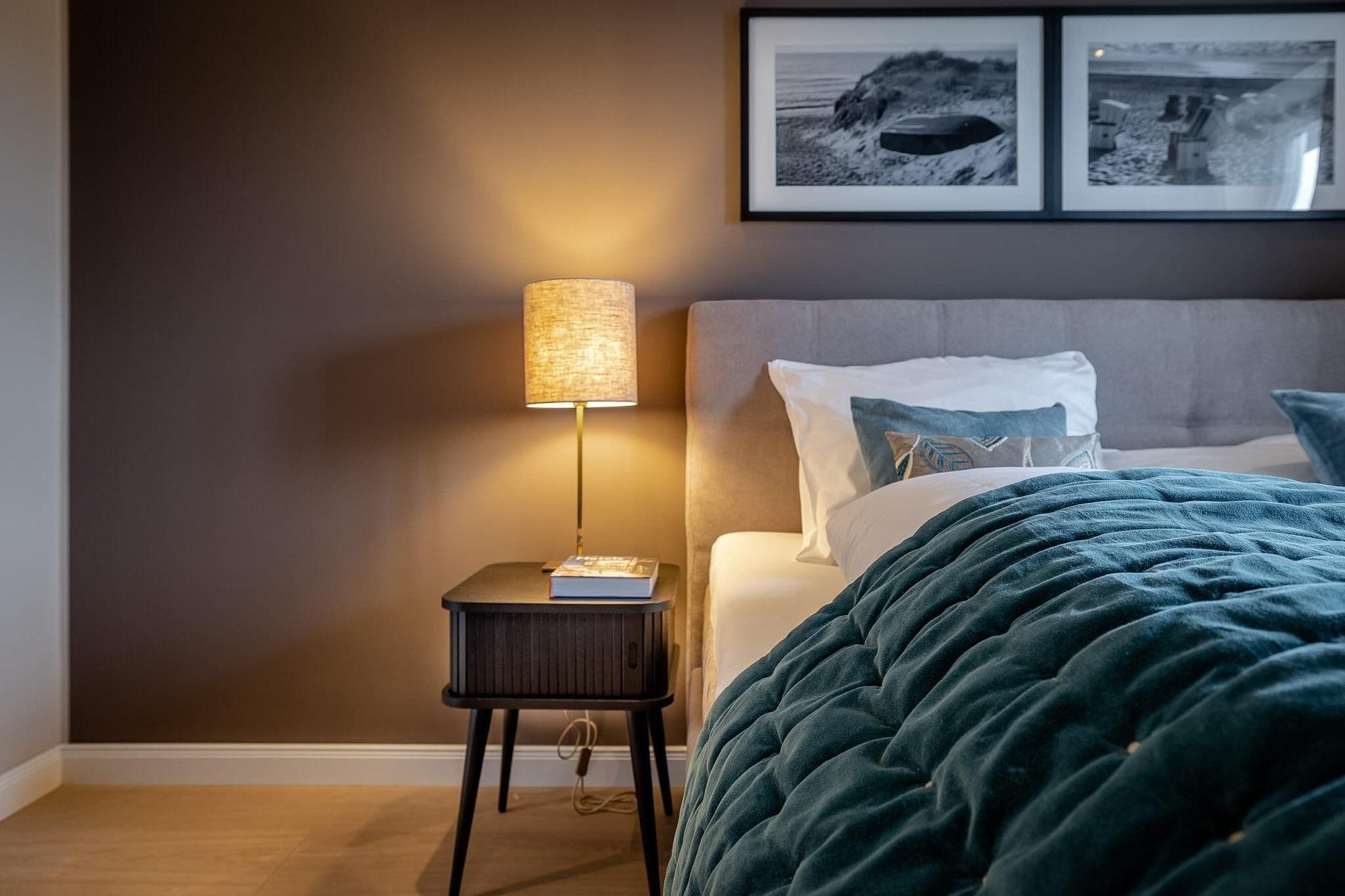 Im separaten Schlafzimmer sorgt ein großes, komfortables Boxspringbett für erholsame Nächte. Die gesamte Wohnung ist mit Fußbodenheizung ausgestattet und bietet auch an kühleren Tagen ein angenehmes Raumklima. Bei Ihrer Ankunft erwartet Sie ein kleines Starterpaket für Küche und Bad.