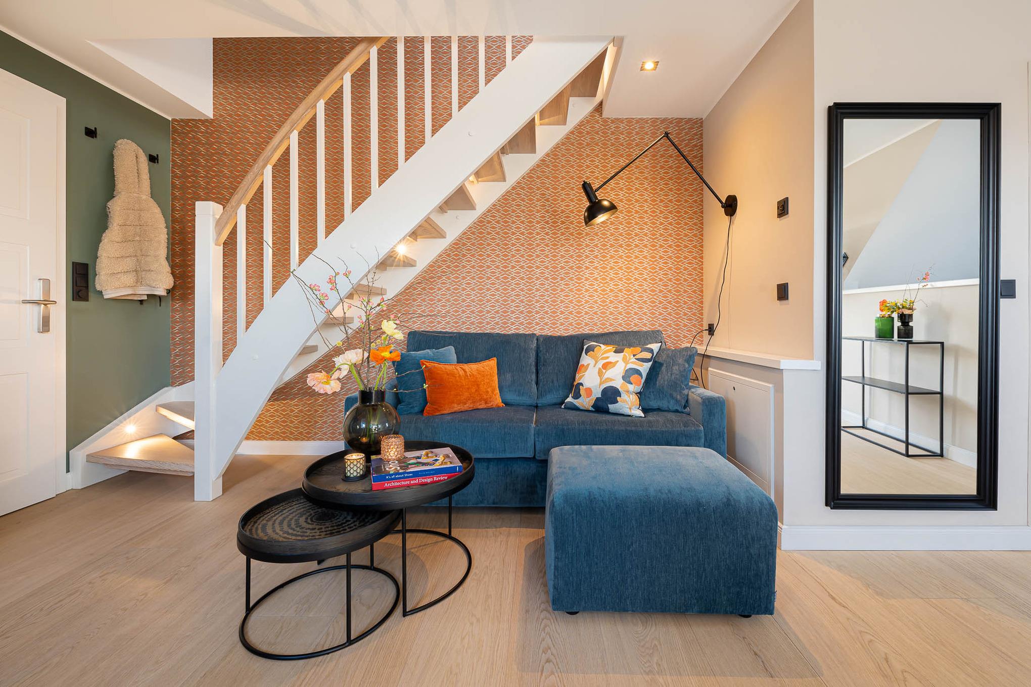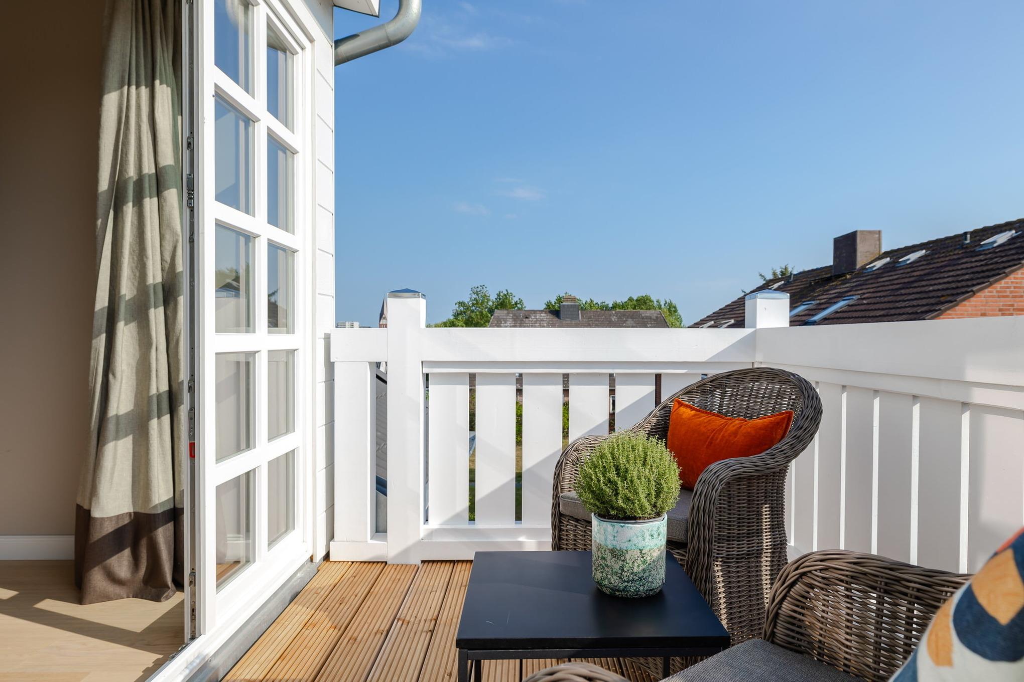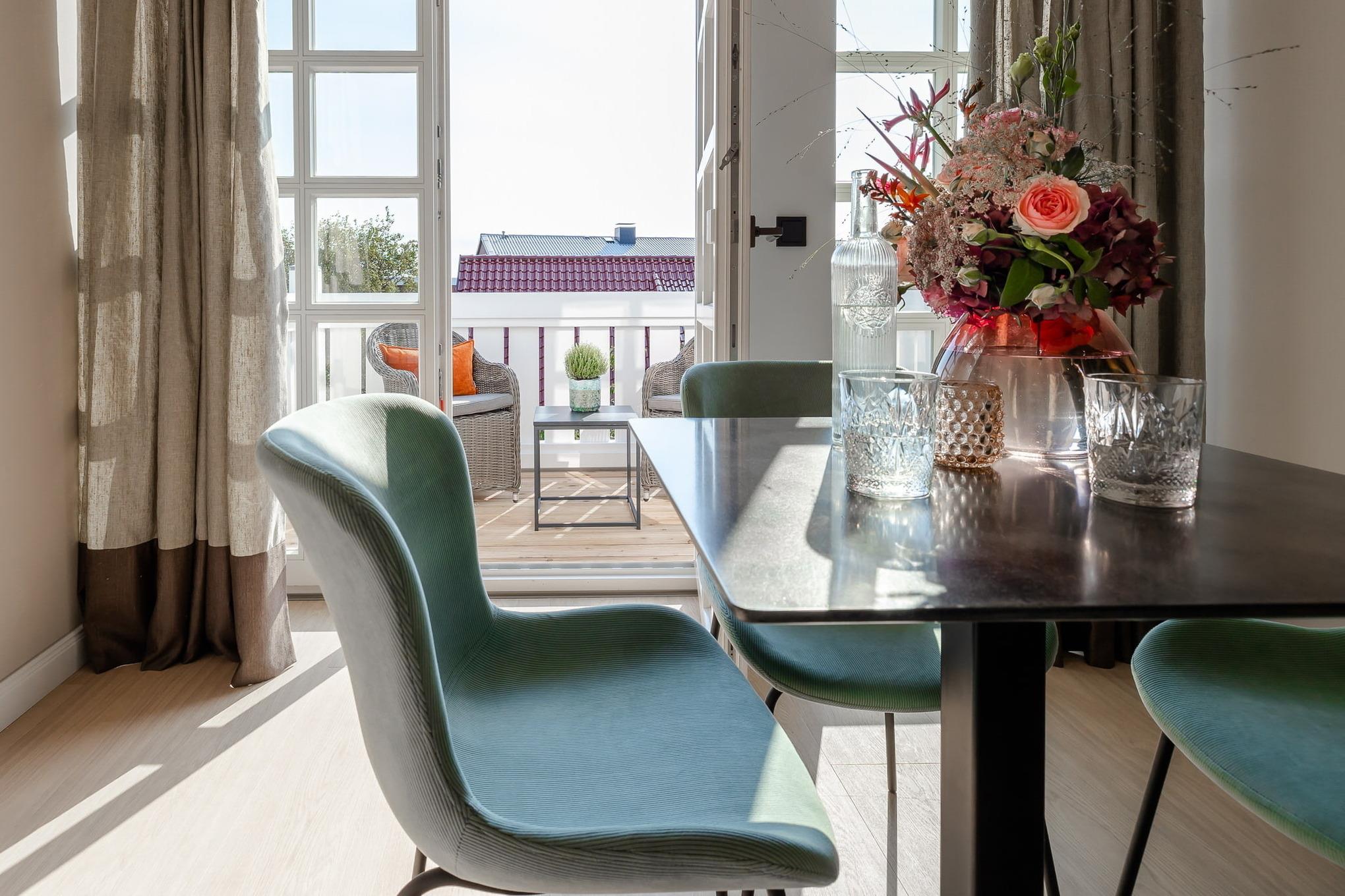Die 3-Zimmer-Maisonette ist eine kleine Wohlfühl-Oase: hohe Decken, lichtdurchflutete Räume und eine stylische, moderne Ausstattung machen Ihren Aufenthalt besonders angenehm. Der großzügige Wohn- und Essbereich ist mit einem Schlafsofa ausgestattet und bietet Zugang zum Balkon in Richtung Osten – ideal für einen Kaffee im Licht des Sonnenaufgangs.