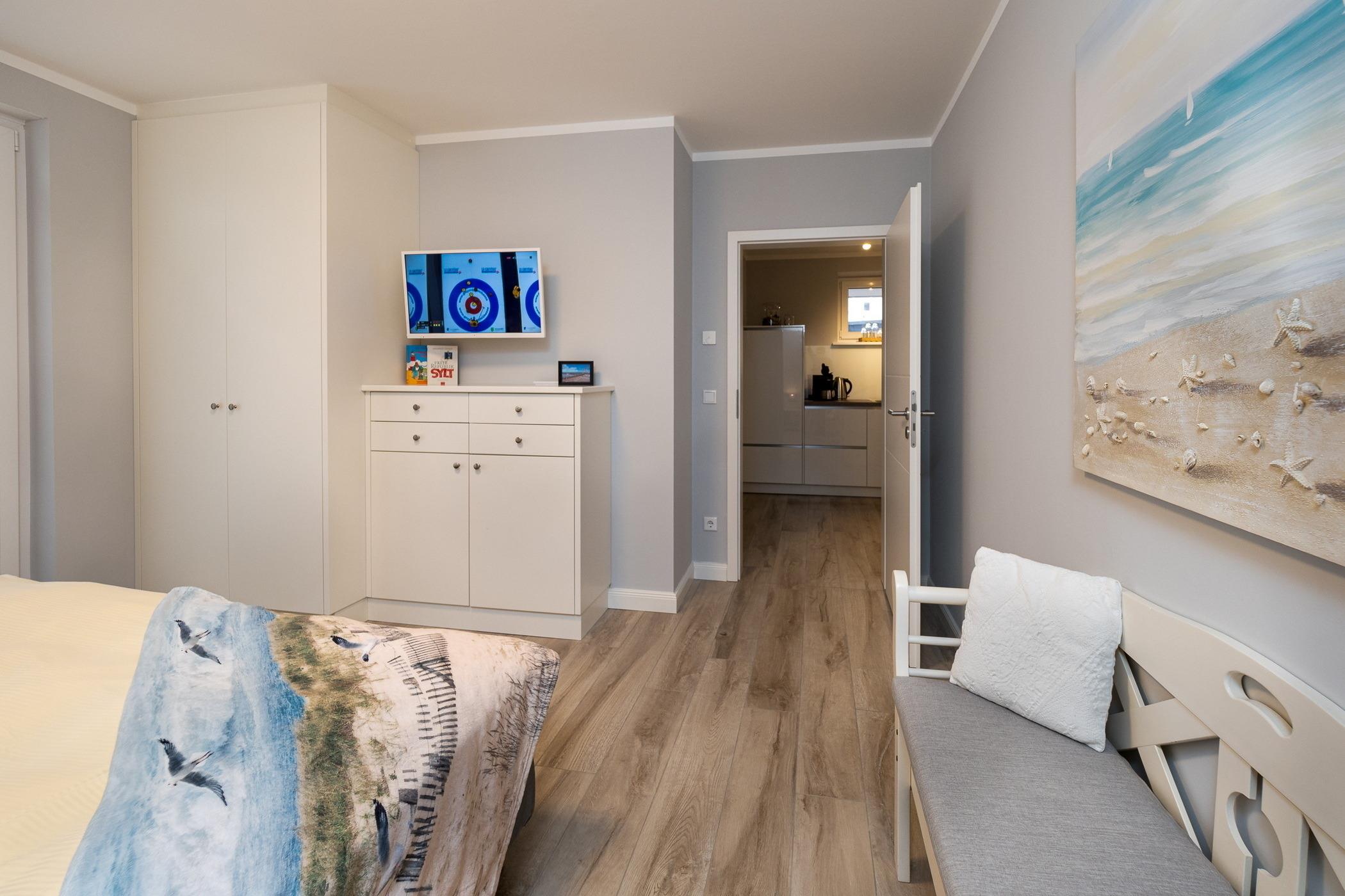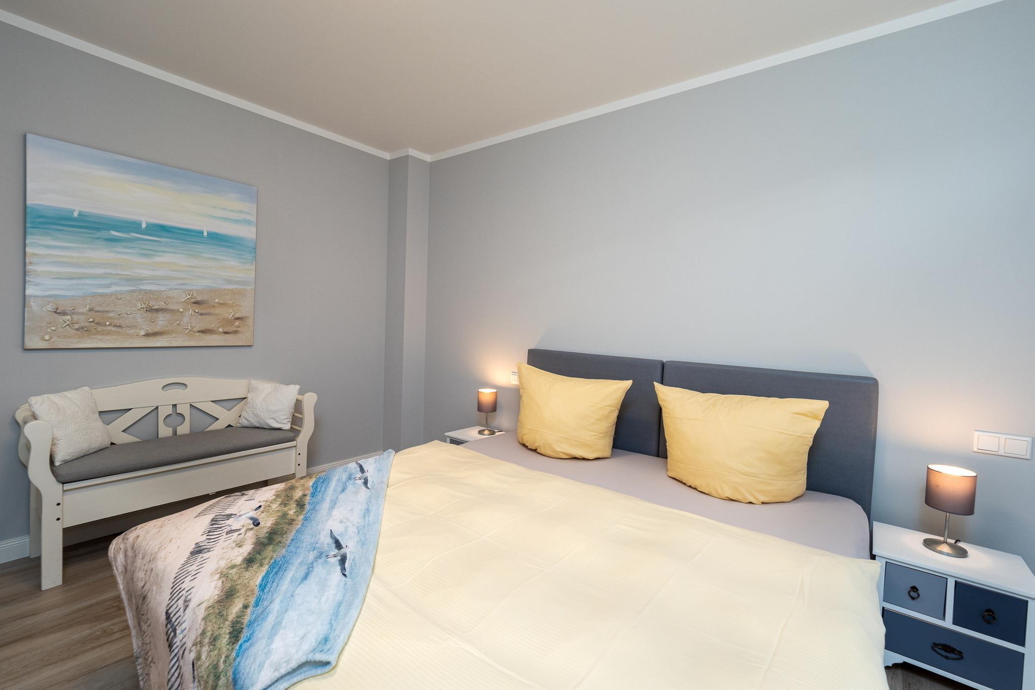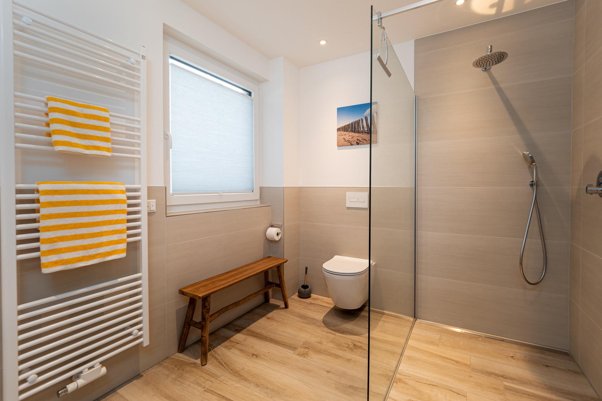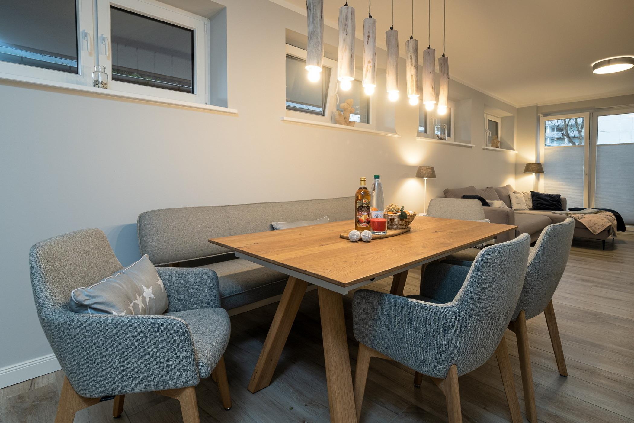 Die Wohnung 1 befindet sich im EG! Auf einer Ebene bieten wir Ihnen: 2 großzügige Schlafzimmer mit Boxspringdoppelbetten, Einbauschränken und TV, 2 Duschbäder mit Fenster, 1 Abstellraum und den Wohnbereich mit großem Essplatz und der Küche (Mikrowelle, Backofen, Spülmaschine, Kühlschrank mit Frostfach , Bora-Induktionskochfeld, Wasserkocher, Toaster und eine Kaffeemaschine für Pads und Filterkaffee)
